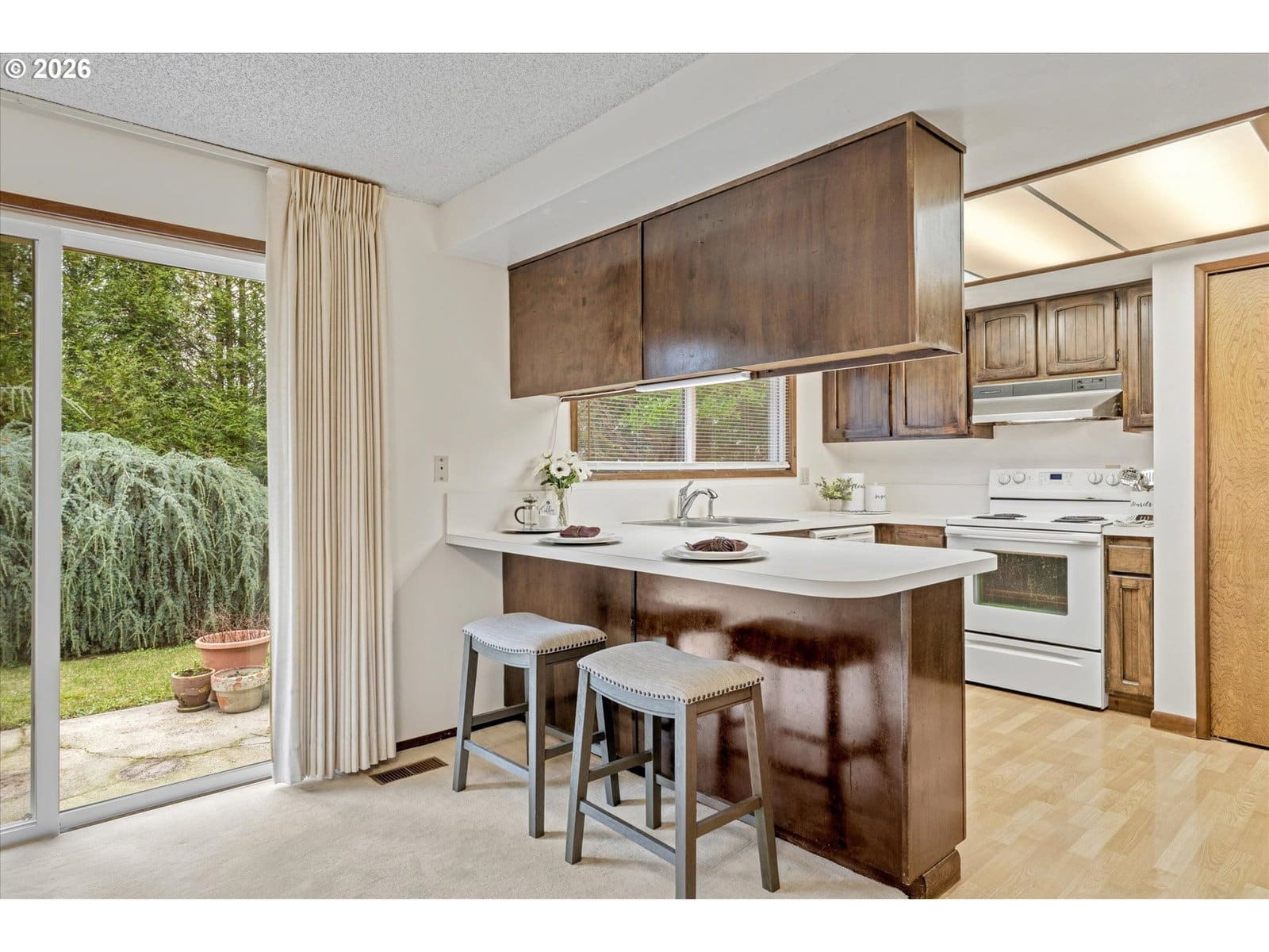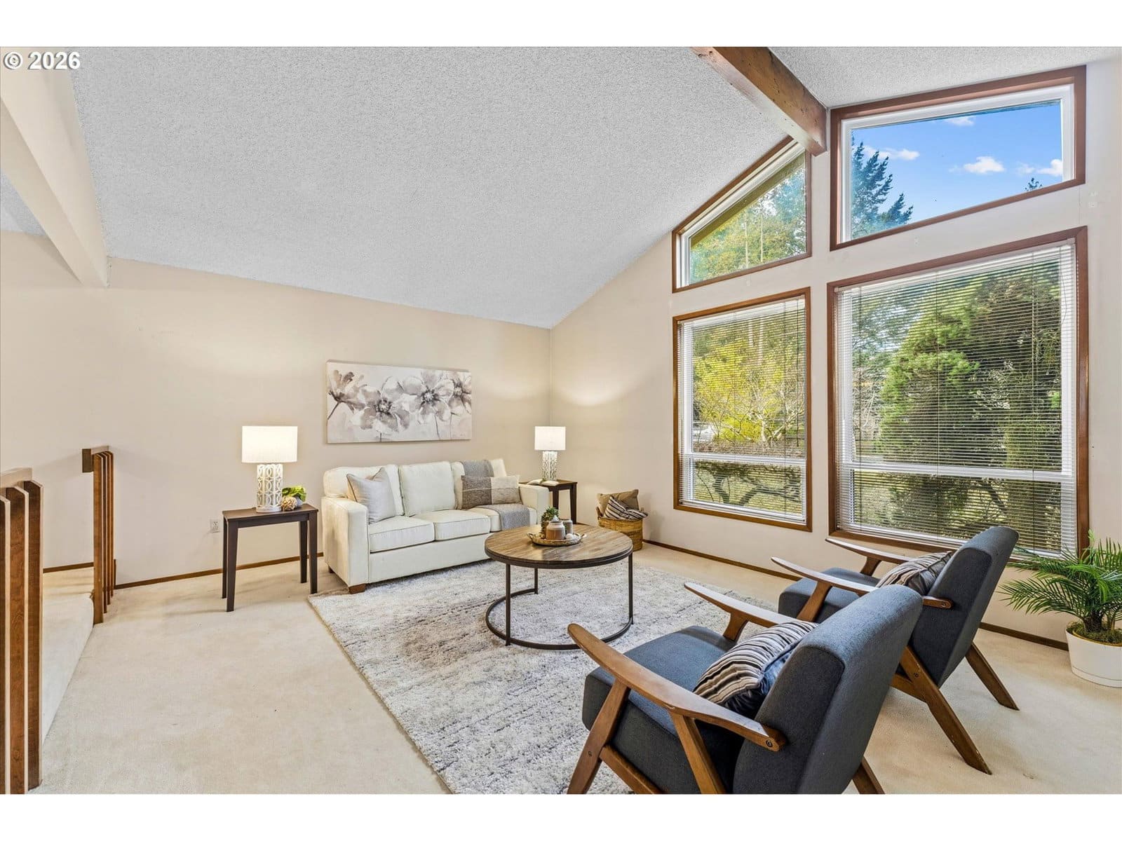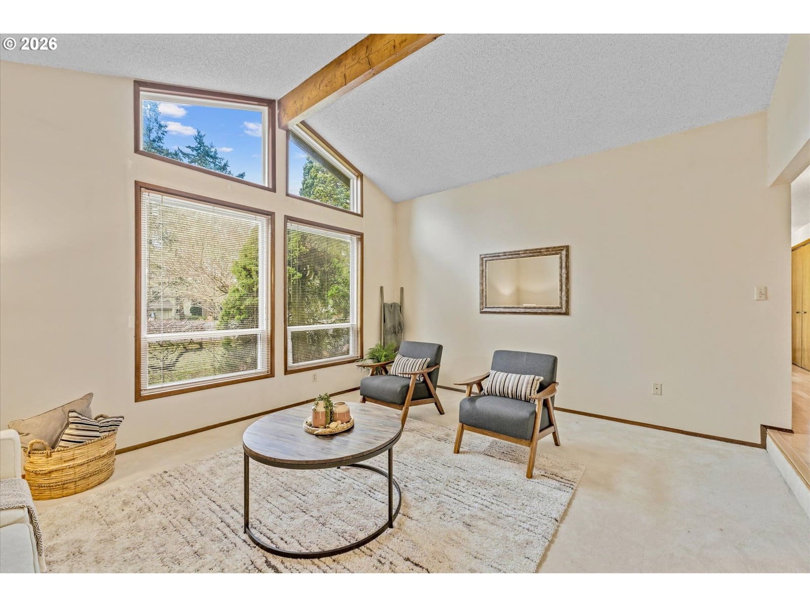 Coveted Single Level Home in Hyland Hills! Built in 1977 this spacious, 3 Bedroom/2 Bathroom, home has been lovingly cared for by the same Family for over 45 years! After entering through the front courtyard w/Japanese inspired garden, you are greeted with the Vaulted Living Room w/beamed ceiling & floor to ceiling windows. From there the Living Room opens to the Formal Dining Room which opens to the Kitchen, complete w/all appliances, plenty of cabinets, pantry & large eat-at bar, perfect for informal dining. Off the Kitchen is the Family Room w/cozy gas fireplace & slider to backyard patio. Large Primary Suite w/room for a King Size Bed features 2 Closets & attached Bath. 2 additional Spare Bedrooms & Full Hall Bath. Hallway glows w/light from the floor to ceiling windows overlooking the front courtyard. Interior Laundry closet includes Washer & Dryer. 2 Car Oversized Garage w/built-in Storage. Private, level 6970SF fenced lot, w/mature plantings, patio & grassy area, perfect for play, entertaining or gardening. Updates include AC 2025, Furnace 2024, Roof 2023 & Windows 2014. In the heart of it all, close to parks, schools, shopping, Downtown Beaverton, Washington Square, Progress Ridge, Murray Hill & much more…