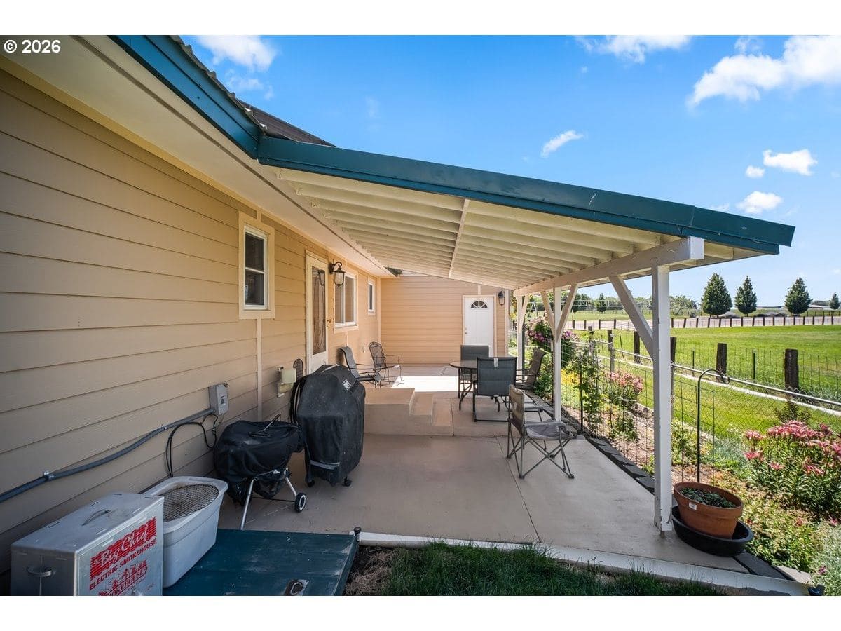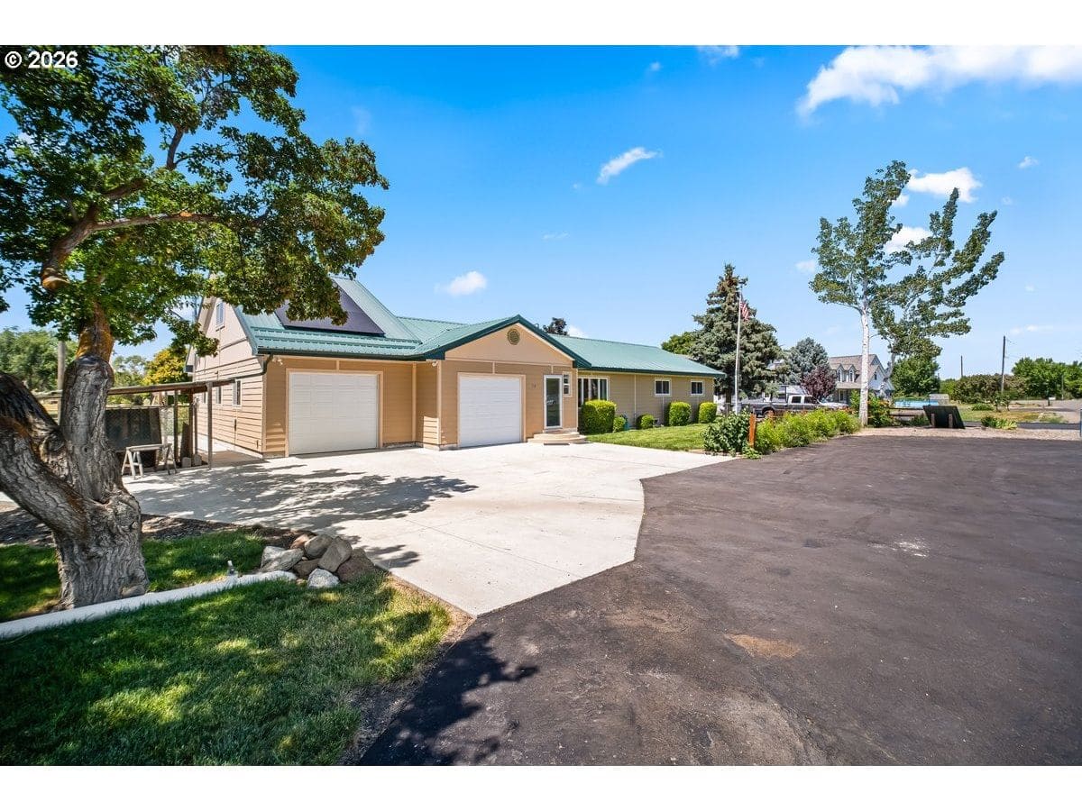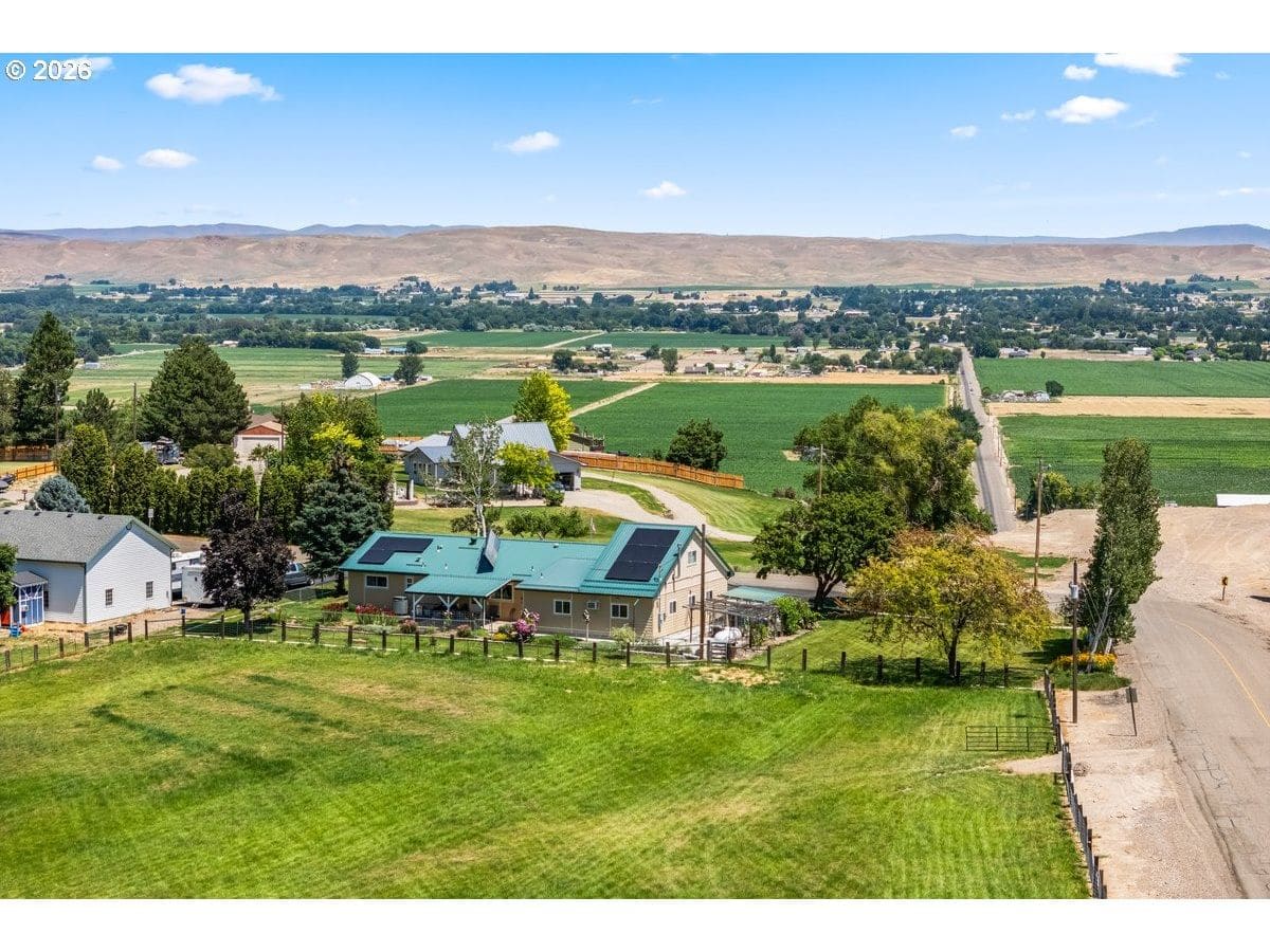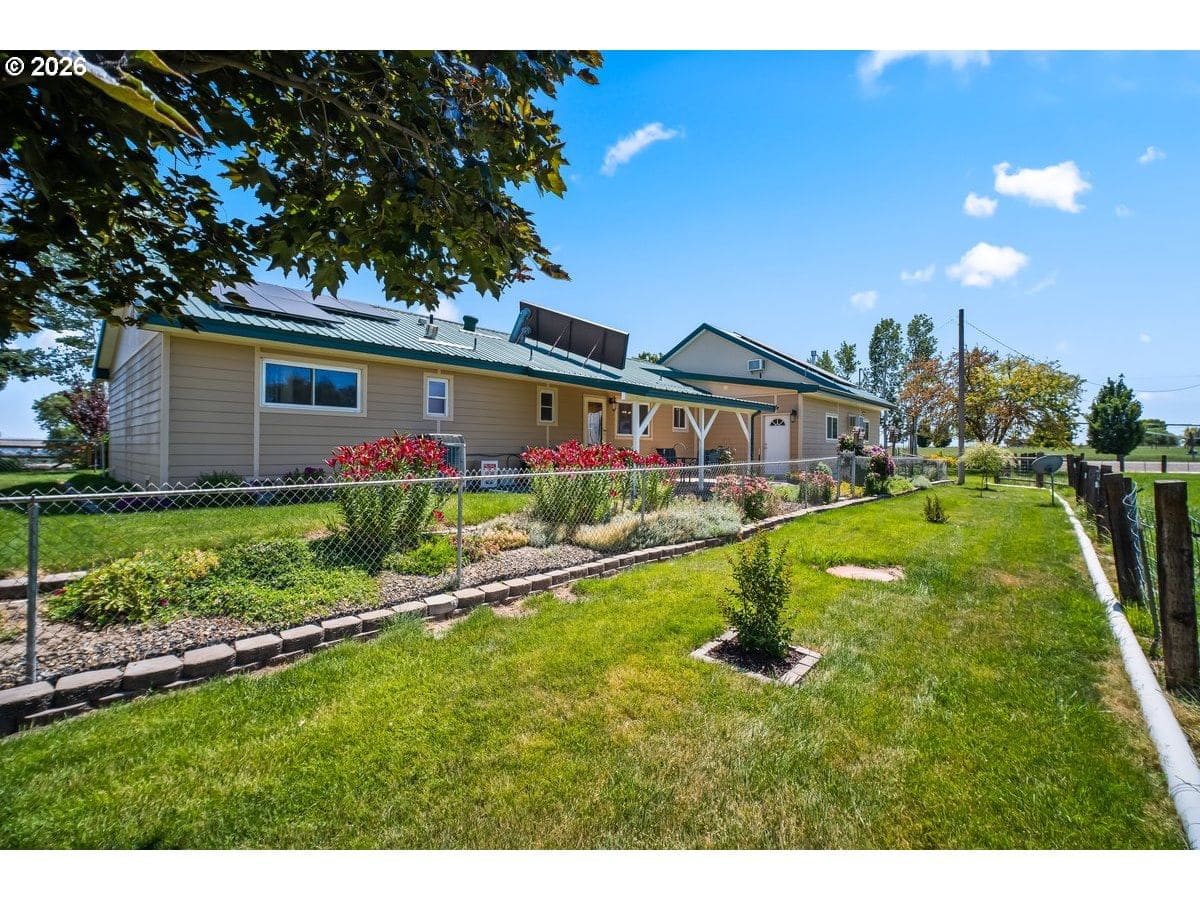 Discover this rare gem serene small farm oasis, offered for the first time on the market. This meticulously maintained ranch-style home is nestled on 1.92 acres of beautiful farm property, situated on a desirable corner lot in the friendly town of Ontario on the Oregon-Idaho border. Enjoy unparalleled peace and tranquility with stunning views of rolling pastures, distant hills, and the majestic Payette, Snake River, and Bogus Basin. This is more than just a home; it’s a thoughtfully curated lifestyle, ready for its next owners to enjoy all it has to offer. The interior offers comfort and space for modern living, where every detail has been intelligently put together for comfort and functionality. The spacious layout includes three bedrooms, two and a half bathrooms, an additional family/craft room, and a versatile bonus room located above the garage. The floor plan provides ample space for both relaxation and recreation, making it ideal for a growing family or those who love to entertain. Imagine cozy evenings in the family room or a productive workspace in the bonus room—the possibilities are endless. The exterior of this property is a true testament to its thoughtful design and sustainable features. The durable metal roof and net-metering solar panels from Idaho Power ensure very low electric bills, a significant benefit for any homeowner. The backyard and pasture are fully fenced, offering security and peace of mind. A fenced pasture provides plenty of room for cattle and horses, making it a perfect setup for hobby farmers or equestrian enthusiasts. The property also boasts Owyhee water rights for irrigation, a valuable asset for maintaining the lush landscape and pasture. Take in the quiet neighborhood from your own piece of paradise, where every sunrise brings breathtaking views. Don't miss your chance to own this one-of-a-kind farm property.
