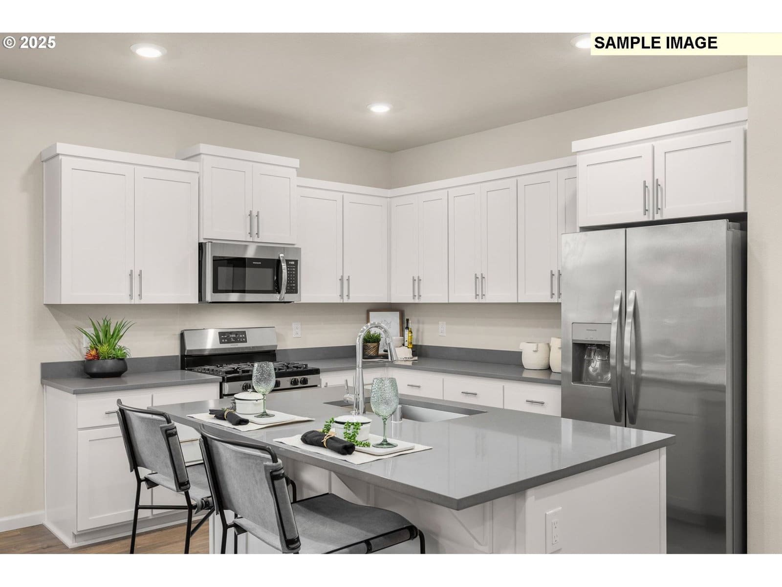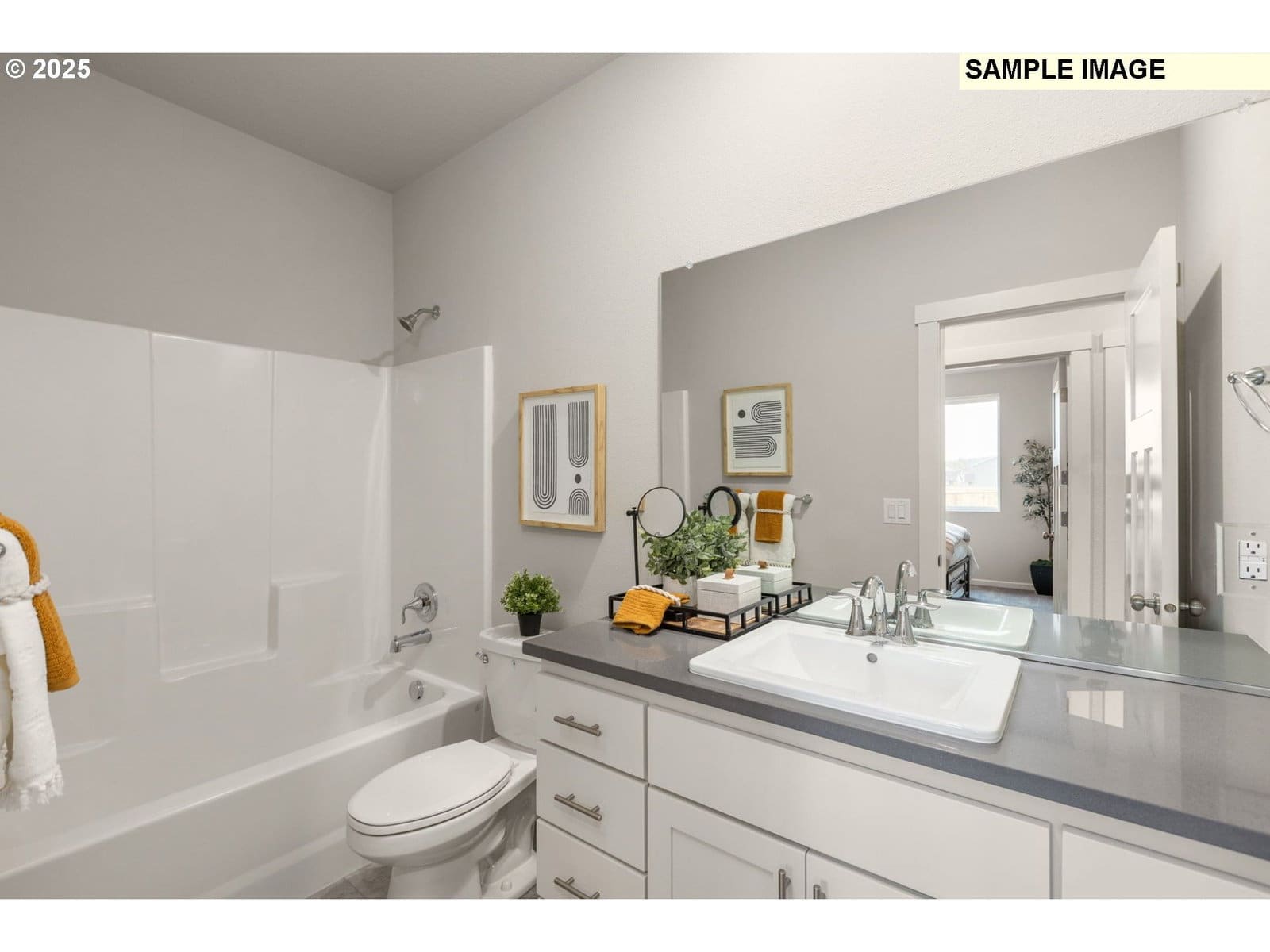 This new construction home is located in Henshaw Farm, with convenient access to Simpson Park, Linn-Benton Community College, downtown historic Albany, and the Golf Club of Oregon, all within a short drive. The Trenton plan is a single-story design with a split layout that places the open kitchen, dining room, and great room together, extending to a back patio for outdoor living. The spacious primary suite offers a private retreat with a primary bath featuring a double vanity and walk-in shower, while two additional bedrooms are positioned nearby. A study near the foyer adds flexibility for an office or hobby room. Interior highlights include quartz countertops, shaker-style cabinets, LVP flooring in the kitchen and entry, LVT in baths, two-tone paint with painted trim, a fireplace with floating mantle, landscaping, and fencing. This home also includes central air conditioning, a refrigerator, washer and dryer, and blinds—all at no extra cost! Located on homesite 145, this home is move in ready. Rendering is artist conception only. Photos are of a similar home, features and finishes will vary. Flex credit/closing cost incentive available when financing with preferred lender! Use towards rate buydown and closing costs.
