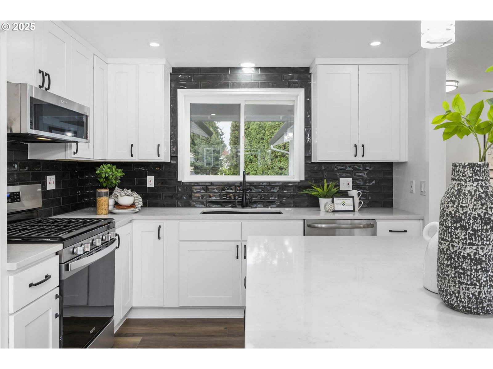 Offer deadline of 2/28/2026 @ 5:00 p.m.!!! Step inside this beautifully renewed 3-bedroom, 2-bathroom home where modern design is paired with warm, comfortable living and a BRAND NEW ROOF. Abundant windows brighten every room, highlighting the fresh finishes and creating an inviting, airy feel throughout. The main level features wide-plank luxury vinyl flooring, adding both durability and style as it connects the living, dining, and kitchen spaces seamlessly. At the center of the home is a kitchen designed to bring people together. The oversized island with sleek 3mm quartz countertops offers plenty of space for meals, conversations, and everyday routines. Clean white cabinetry, matte black hardware, and a textured black tile backsplash give the space a polished, contemporary character that feels both fresh and timeless. The primary suite is a standout, featuring a custom accent wall and an elegant ensuite with warm gold fixtures, a marble-inspired shower, and a thoughtfully designed vanity. Two additional bedrooms offer flexibility for guests, work, or play, each updated with soft carpeting, modern lighting, and large windows. The second full bath boasts a dual-sink vanity and striking deep-blue tile that adds depth and personality. Out back, the spacious yard is ready for relaxation or gathering, complete with an inviting outdoor fire-pit that creates a comfortable spot for evenings under the open sky. Every space in this home has been refreshed with intention, offering a move-in-ready blend of function, style, and comfort. This isn’t just an updated home—it’s a welcoming place to settle in and make your own.