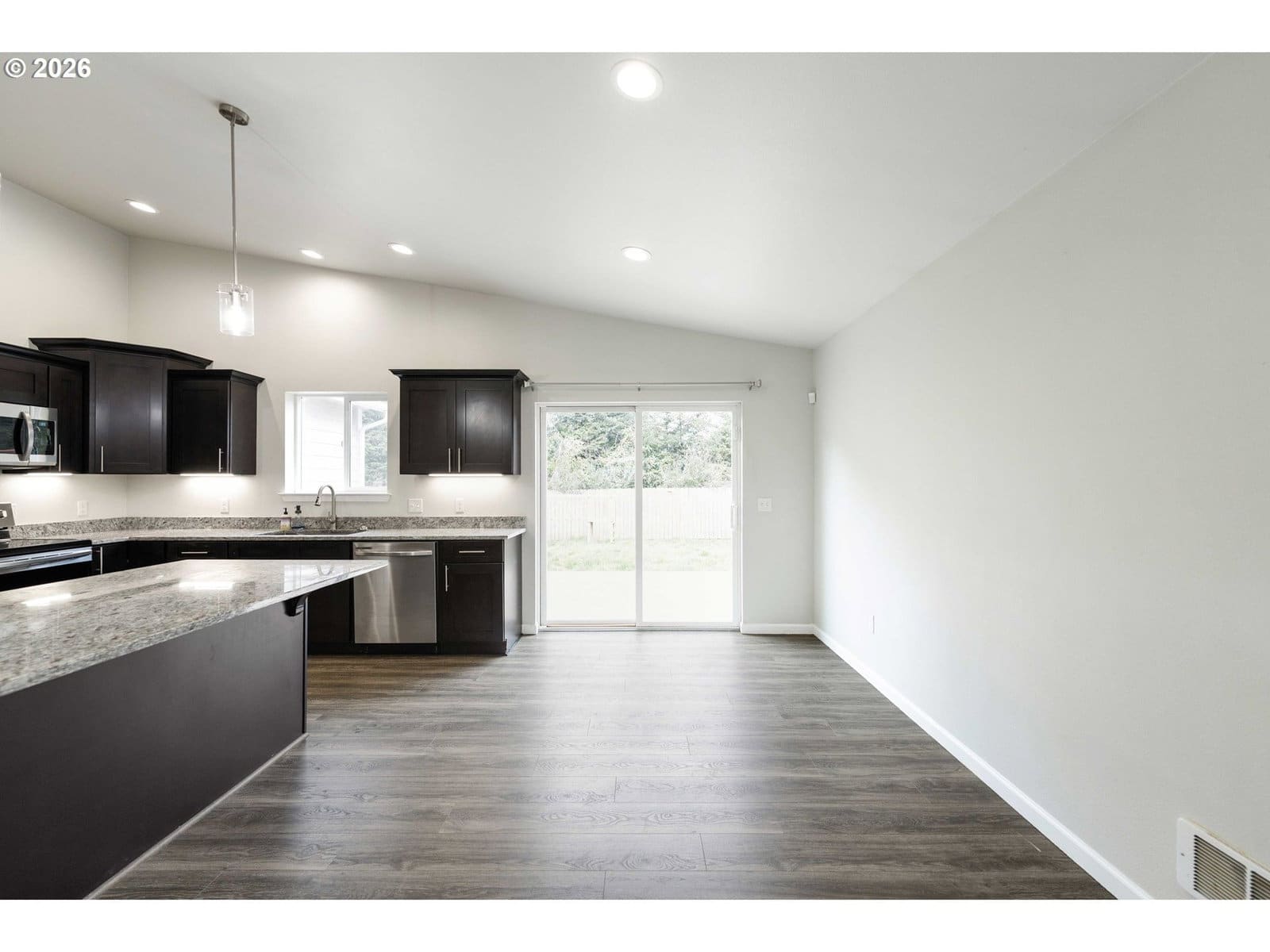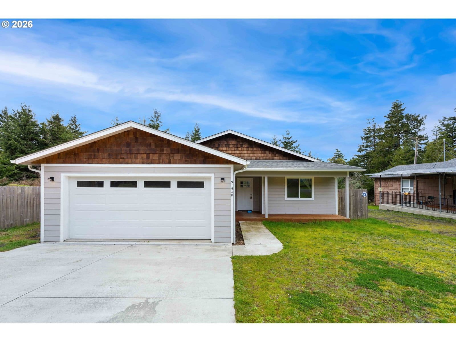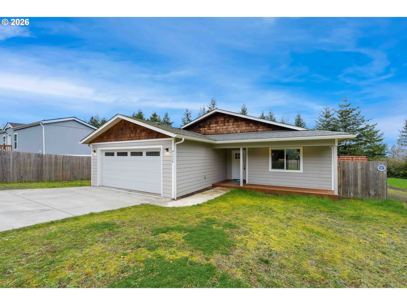 Step into modern luxury with this "like-new" 2020 build, meticulously refreshed with crisp paint and stylish touch-ups throughout. The heart of the home is a stunning vaulted great room that seamlessly integrates the living and dining areas with a chef-inspired kitchen. Anchored by a functional island, the kitchen boasts a full suite of stainless steel appliances—including a refrigerator, range, dishwasher, and built-in microwave—plus a spacious pantry for all your storage needs.Designed for ease and accessibility, the home features zero-entry access from the oversized garage. The convenience continues with a dedicated laundry room where the washer and dryer stay for the new owners. Experience ultimate comfort in both bathrooms, each with heated tile floors for a spa-like feel. Retreat to the primary suite, which offers a private sanctuary complete with a walk-in shower, alongside two additional well-appointed bedrooms.Step through the sliding glass doors to enjoy a fully fenced backyard, perfect for privacy and pets. Outdoor enthusiasts will love the forested walking trails steps from the front door, offering a peaceful escape just moments from the bay and beach access. This coastal gem is ready for you. Watch our Video Tour on YouTube and call today to schedule your private showing!