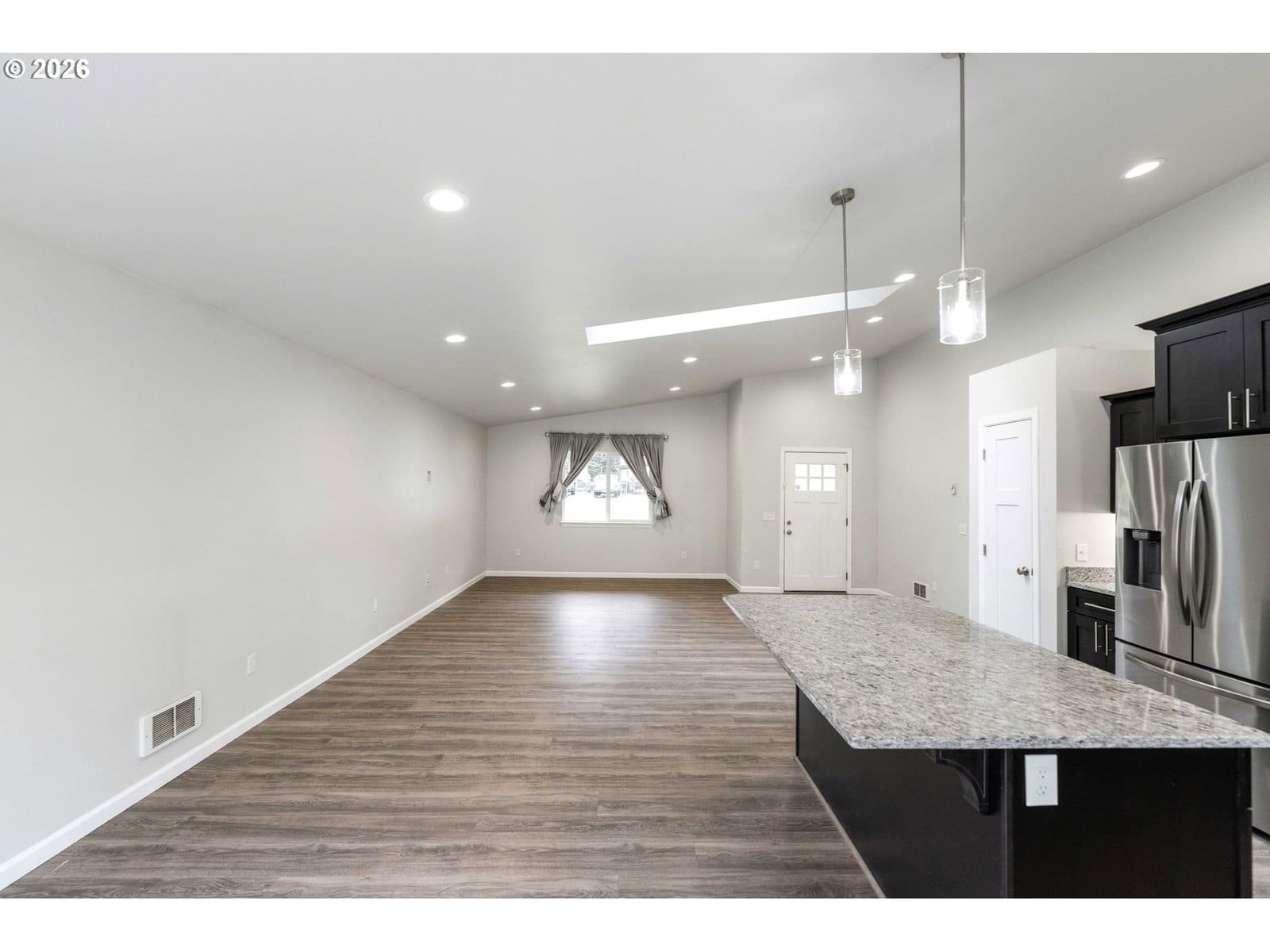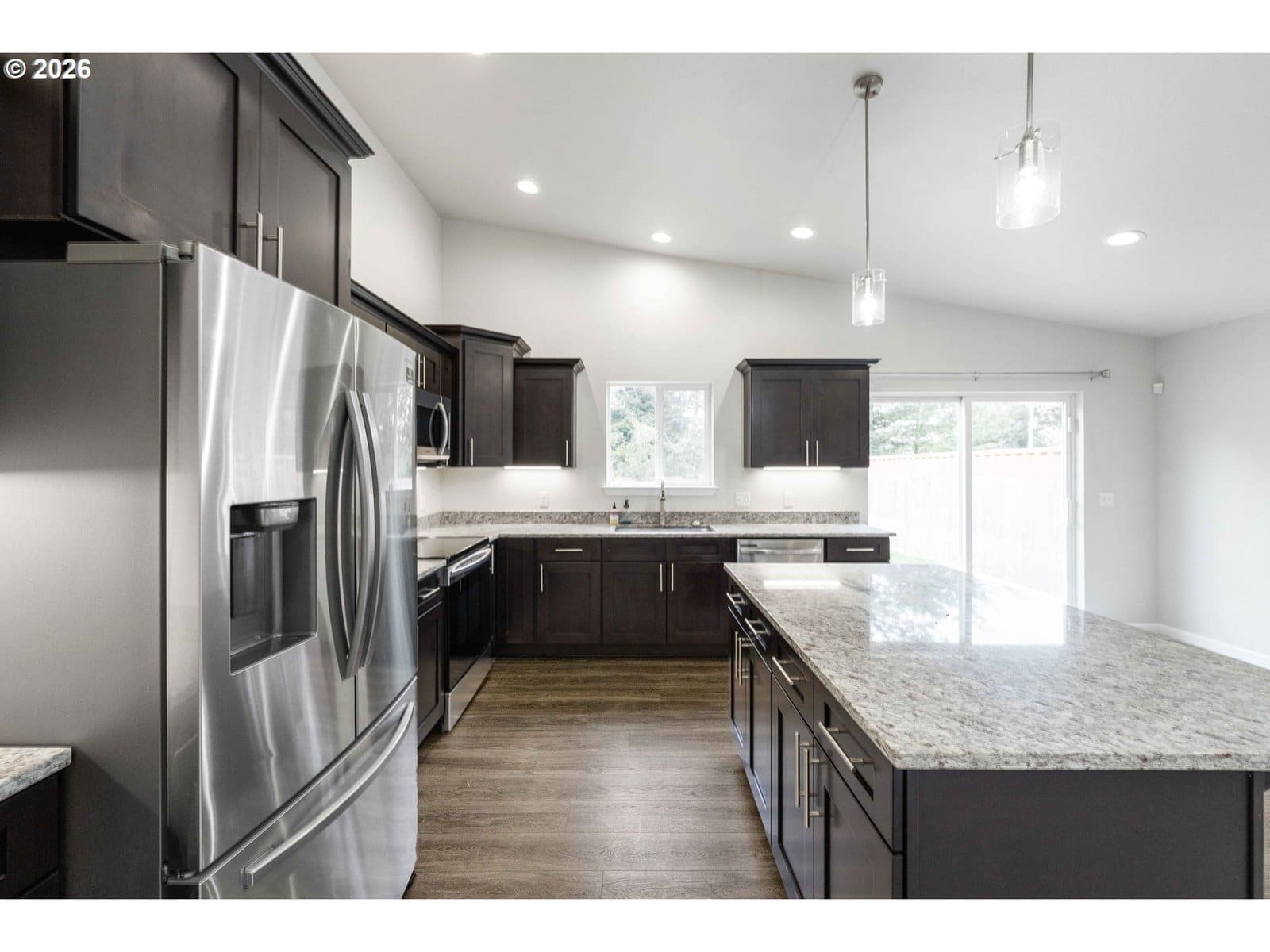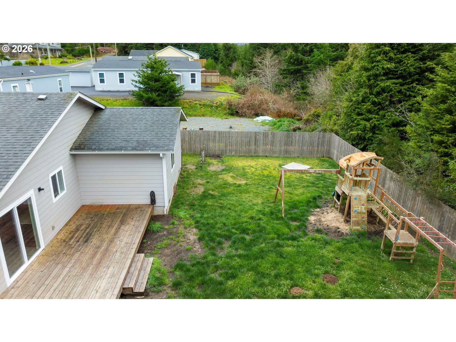 Step into modern luxury with this "like-new" 2020 build, meticulously refreshed with crisp paint and stylish touch-ups throughout. The heart of the home is a stunning vaulted great room that seamlessly integrates the living and dining areas with a chef-inspired kitchen. Anchored by a functional island, the kitchen boasts a full suite of stainless steel appliances—including a refrigerator, range, dishwasher, and built-in microwave—plus a spacious pantry for all your storage needs.Designed for ease and accessibility, the home features zero-entry access from the oversized garage. The convenience continues with a dedicated laundry room where the washer and dryer stay for the new owners. Experience ultimate comfort in both bathrooms, each with heated tile floors for a spa-like feel. Retreat to the primary suite, which offers a private sanctuary complete with a walk-in shower, alongside two additional well-appointed bedrooms.Step through the sliding glass doors to enjoy a fully fenced backyard, perfect for privacy and pets. Outdoor enthusiasts will love the forested walking trails steps from the front door, offering a peaceful escape just moments from the bay and beach access. This coastal gem is ready for you. Watch our Video Tour on YouTube and call today to schedule your private showing!