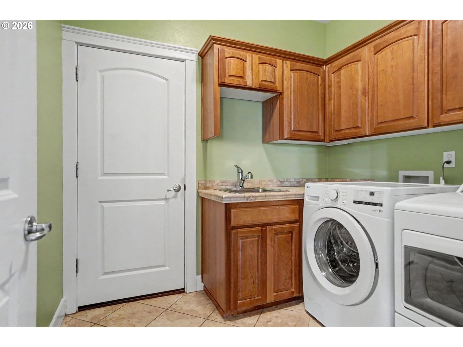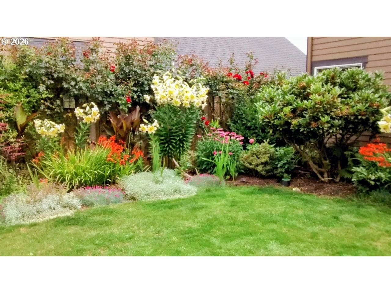 Well-maintained and very energy efficient 4 bed, 2.5 bath home offering 2,627 SF on a quiet cul-de-sac. Flexible layout includes a main floor bedroom, formal living & dining rooms, and both living and family rooms, each with gas fireplaces. Light-filled nook off the gourmet kitchen featuring granite countertops, cherry cabinetry, stainless Frigidaire appliances, and a walk-in pantry. Cherry cabinets continue throughout the bathrooms and laundry room for a cohesive, high-quality finish. Hardwood flooring on the main level. Spacious bonus room provides ideal space for media, office, or playroom. Primary suite features a walk-in closet, jetted tub, walk-in shower, and vaulted sitting/retreat area. Dual heating and cooling systems provide efficient comfort year-round. Central vacuum and central speakers included. The backyard is a true highlight with seven raised garden beds, fruit trees, grapevines, and abundant flowering plants, all within a fully fenced and beautifully landscaped setting. Covered patio, sprinklers, garden shed, and plenty of space to relax or entertain.