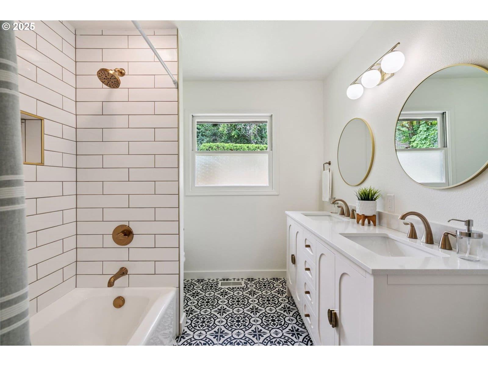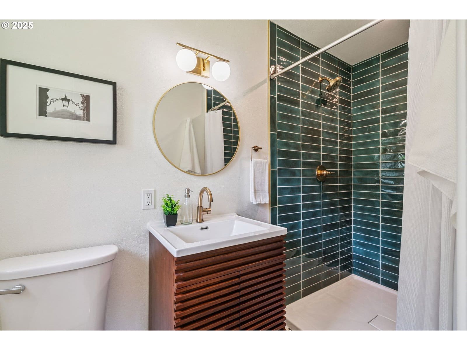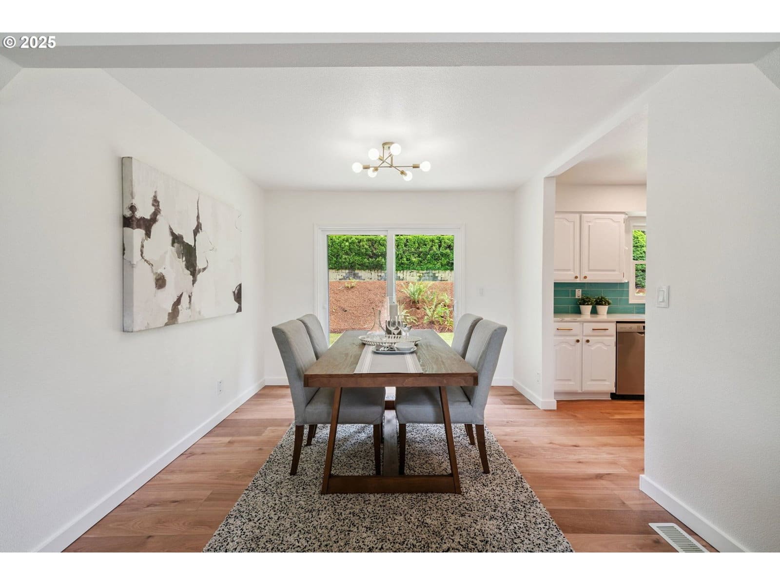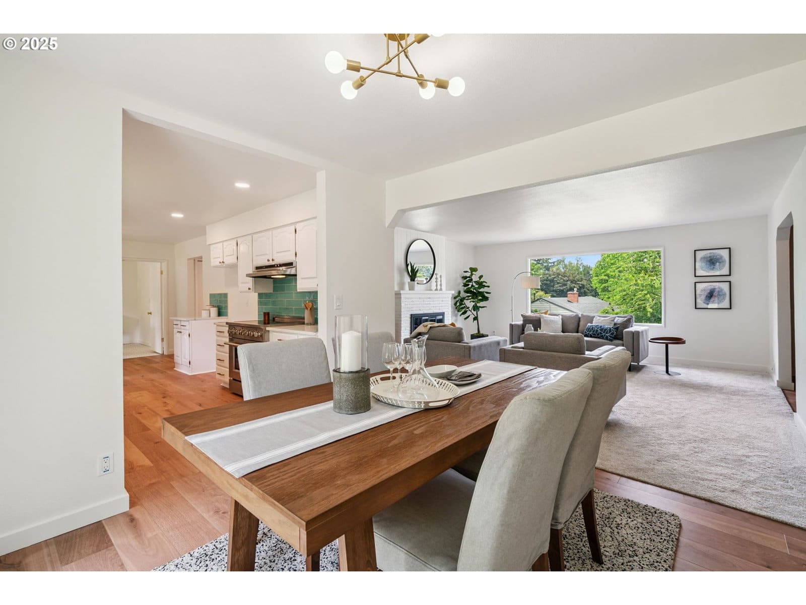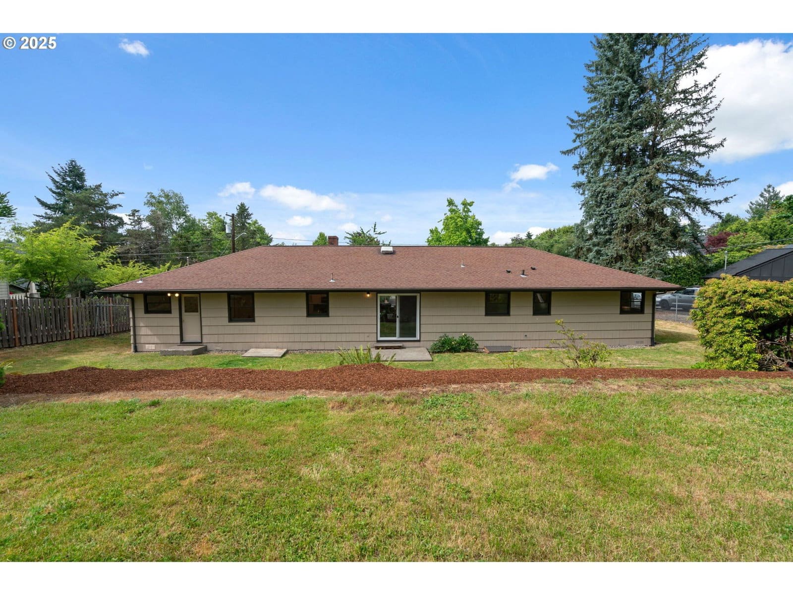 Completely updated pristine one-level ranch with serene surroundings and an unbeatable location. A brand new sparkling remodel highlights the home’s original mid-century character. Sophisticated entryway features a custom stone wall that leads into the bright living room centered by a large picture window and welcoming white fireplace. Formal dining room just off the updated eat-in kitchen with new gleaming quartz counters, tile back splash, and stainless steel appliances, including a 36" Forno induction range. Work from home or write your novel in the nice-sized office/den with beautiful natural wood beamed ceiling. All three comfortable bedrooms on one floor. Both bathrooms fully redone and include stunning tiled showers. Keep the gorgeous wood floors clean and kick off your shoes in one of two tidy mudrooms. Enjoy languid summer evenings in the huge tiered backyard with patio and lovely landscaping. All of this just a block from highly-rated Stephenson Elementary School, near multiple natural areas, Lake Oswego, with easy proximity to I-5. [Home Energy Score = 4. HES Report at https://rpt.greenbuildingregistry.com/hes/OR10239124]