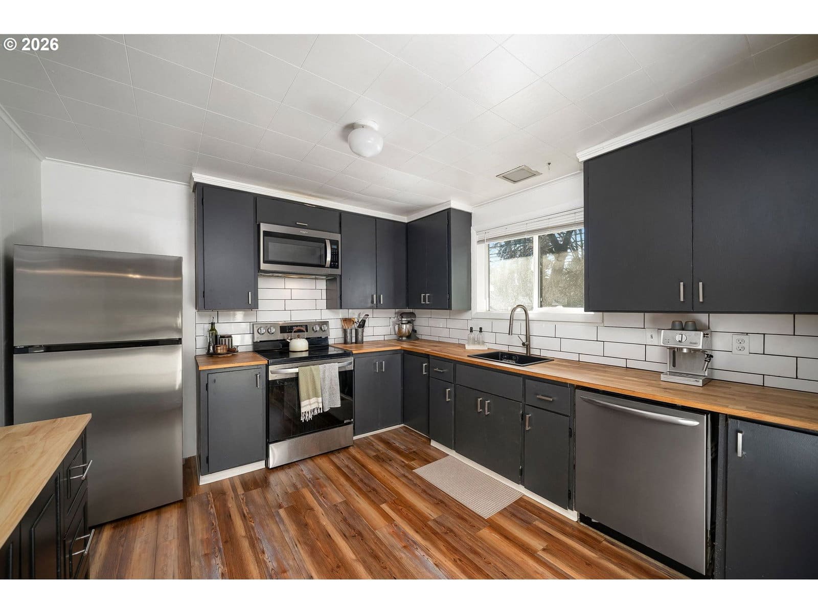 Charming and move-in ready home. This beautifully updated home features an open floor plan with stylish LVP flooring throughout, creating a bright and welcoming living space. The updated kitchen showcases butcher block countertops, stainless steel appliances, and modern finishes—perfect for everyday living and entertaining. Recent improvements include a new roof and new windows, offering peace of mind for years to come. The home is extremely well priced, presenting an outstanding opportunity for buyers seeking quality, value, and turnkey living. Step outside to a fantastic backyard complete with a cozy fire pit and raised garden beds. A rare find offering both comfort and affordability in a convenient Milwaukie location close to parks, shops, and amenities.