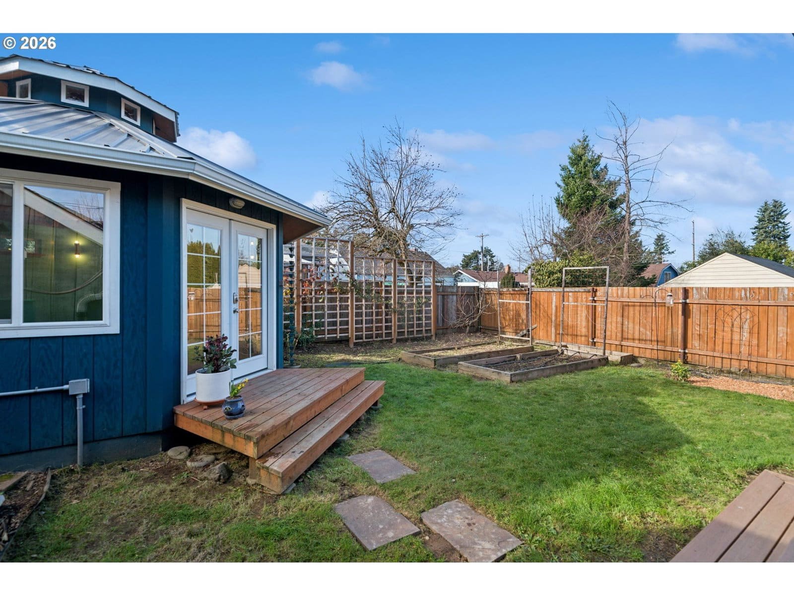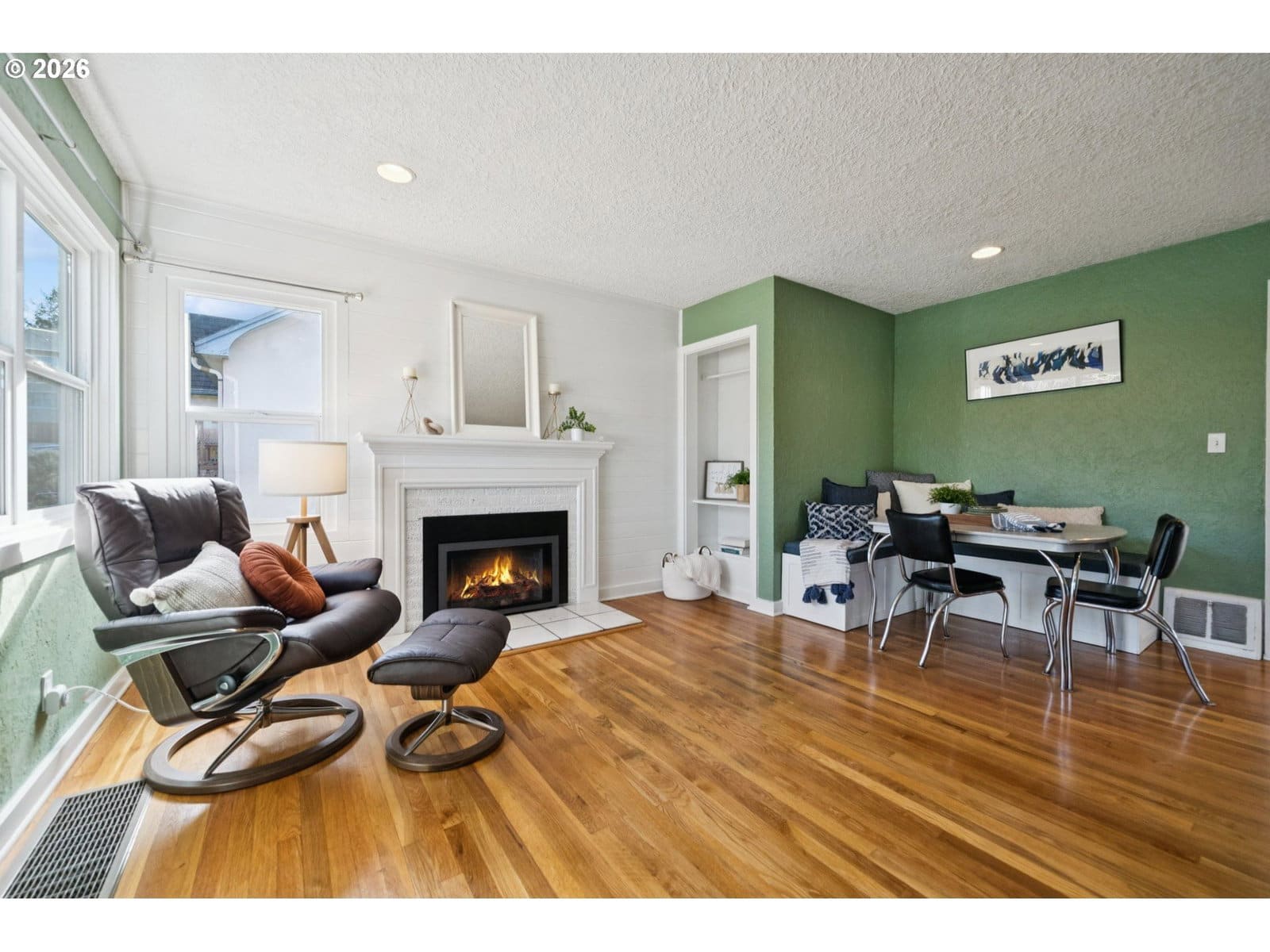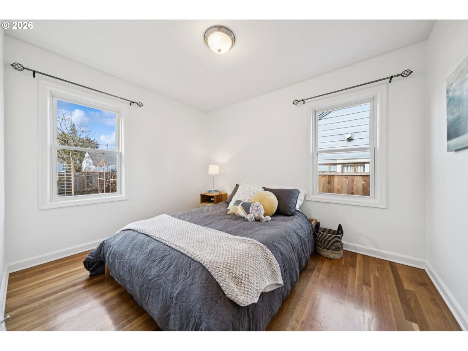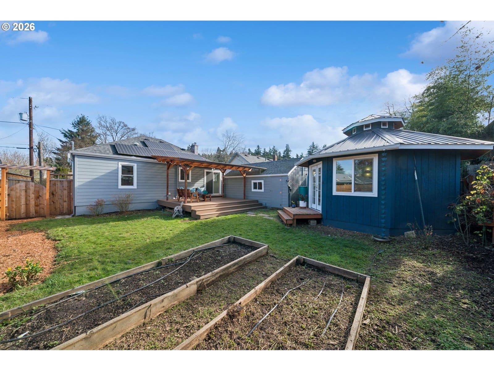 Welcome home! This cozy, well-maintained and updated 3-bed, 2-bath bungalow with a fully finished basement offers all you could dream of in flexible living space and modern upgrades. The inviting main living area features hardwood floors, a gas fireplace, and a built-in eating nook, while dual heating systems (forced air plus heat pump added in 2024) provide year-round comfort. Energy efficiency shines with fully owned solar panels installed in 2019. Natural light flows throughout the home and includes a solar tube added in the main floor bath. The kitchen showcases quartz countertops, a brand-new fridge, and induction oven with air fryer. Glass sliding doors open seamlessly to the backyard where the low-maintenance composite deck connects to a stunning covered arbor built in 2023, perfect for relaxing or entertaining. Outside, the fully fenced yard is just starting to show touches of spring but will soon feature blossoming star jasmine and passionflower. Multiple raised beds are primed for planting while still leaving plenty of room to play in the grass. A standout feature is the 199-sq-ft detached studio built in 2023, fully insulated and with a metal roof and minisplit heating/cooling. This extraordinary space is ideal for an office, creative space, yoga/art studio or even the occasional guest. At the front of the home, a professionally maintained maple tree and fresh exterior paint enhances the home’s curb appeal while the detached garage provides additional storage. Additional exterior improvements include a new driveway (2020), added front retaining wall, and radon mitigation. Situated on a quiet street with excellent access to Portland International Airport and close to outdoor recreation at Rocky Butte, this home blends comfort, efficiency, and versatility in a convenient Portland location. OPEN HOUSE: Sat. Feb. 14, 1-3pm [Home Energy Score = 7. HES Report at https://rpt.greenbuildingregistry.com/hes/OR10243129] Mini split heating and cooling