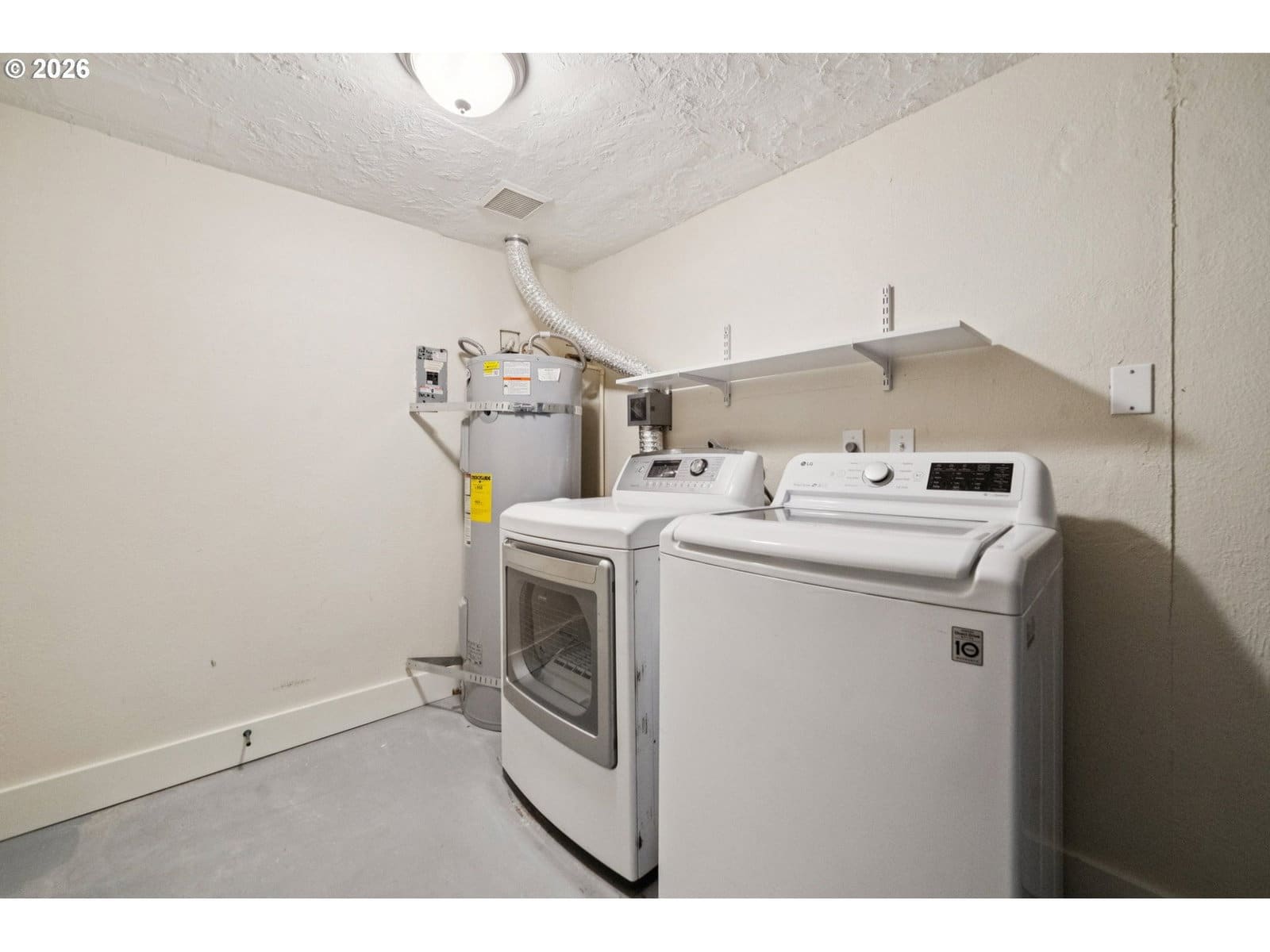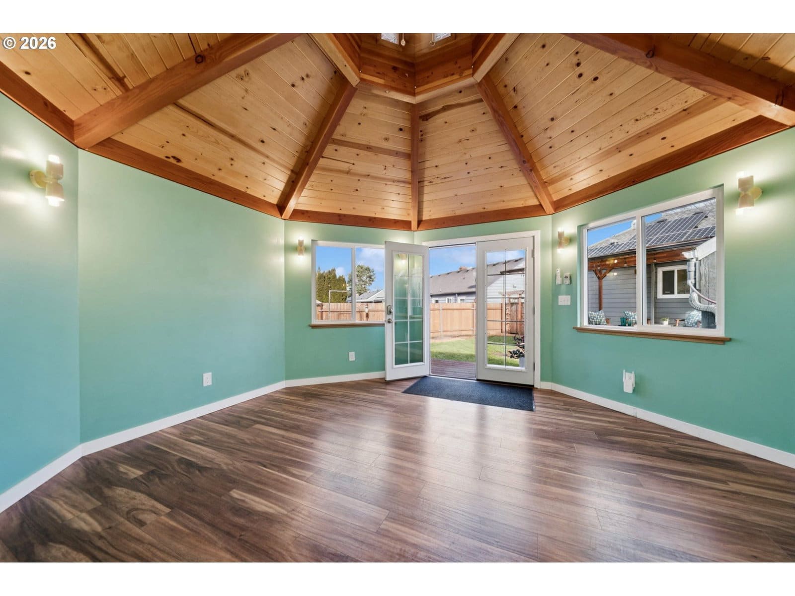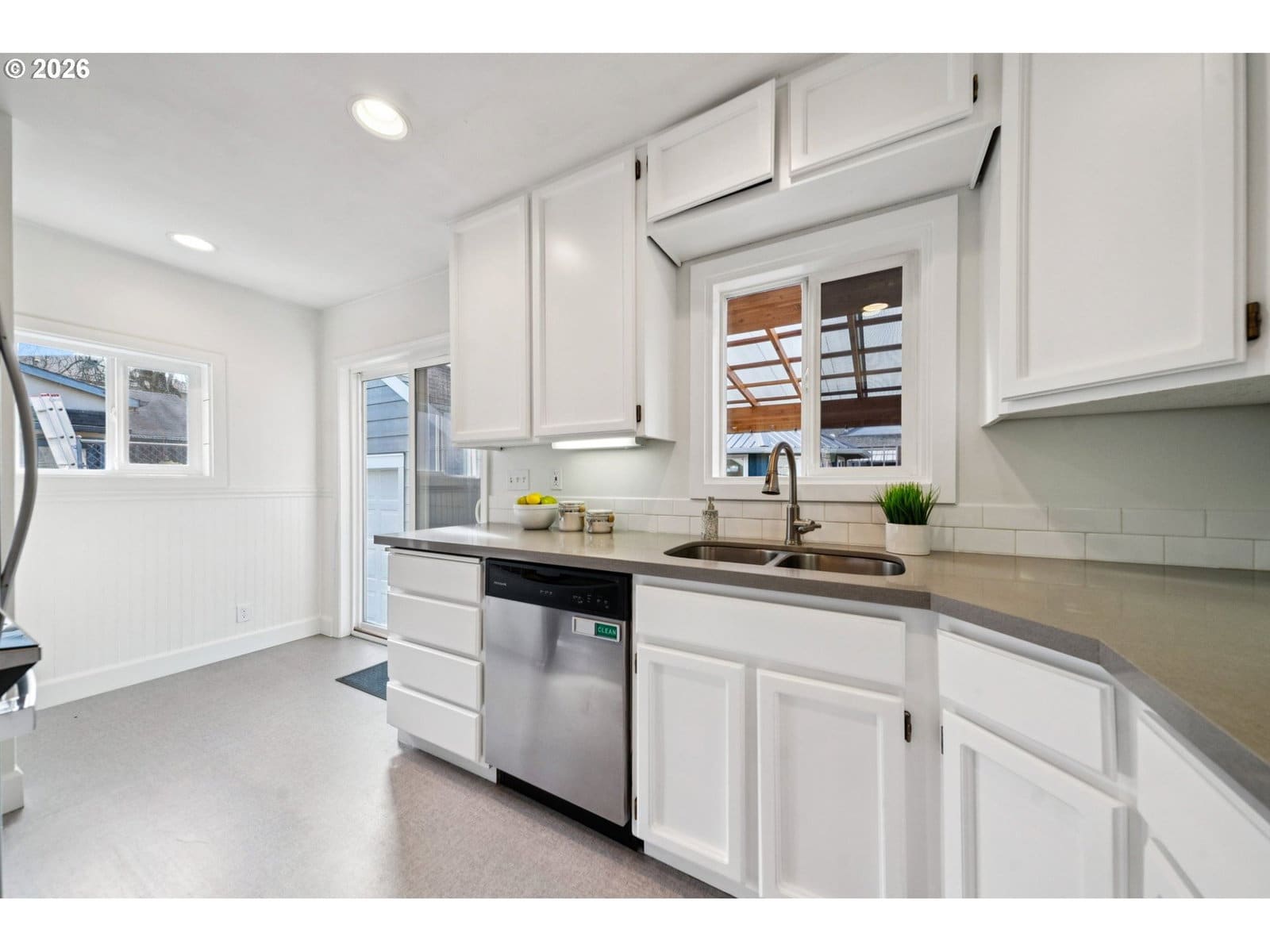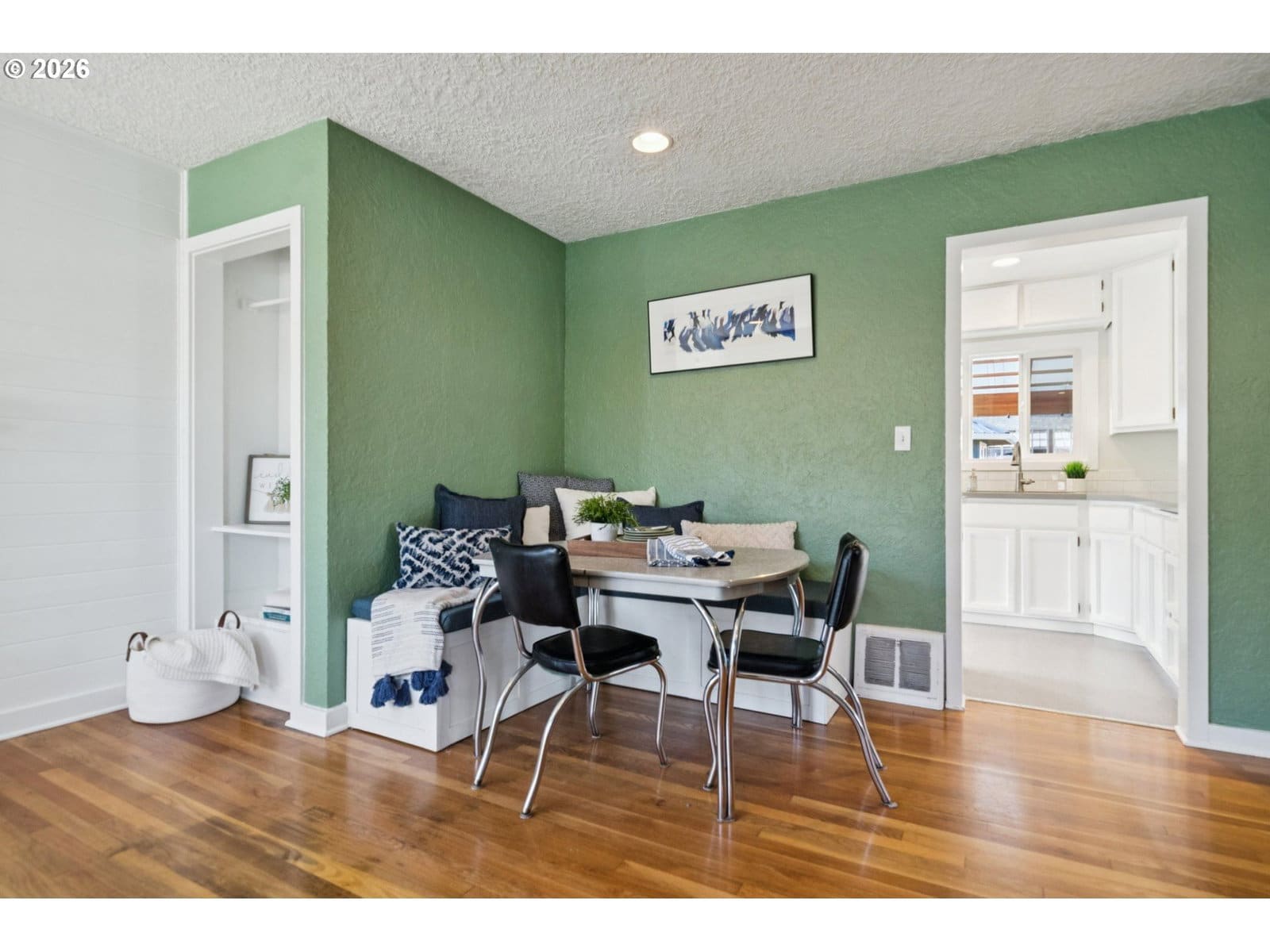 Welcome home! This cozy, well-maintained and updated 3-bed, 2-bath bungalow with a fully finished basement offers all you could dream of in flexible living space and modern upgrades. The inviting main living area features hardwood floors, a gas fireplace, and a built-in eating nook, while dual heating systems (forced air plus heat pump added in 2024) provide year-round comfort. Energy efficiency shines with fully owned solar panels installed in 2019. Natural light flows throughout the home and includes a solar tube added in the main floor bath. The kitchen showcases quartz countertops, a brand-new fridge, and induction oven with air fryer. Glass sliding doors open seamlessly to the backyard where the low-maintenance composite deck connects to a stunning covered arbor built in 2023, perfect for relaxing or entertaining. Outside, the fully fenced yard is just starting to show touches of spring but will soon feature blossoming star jasmine and passionflower. Multiple raised beds are primed for planting while still leaving plenty of room to play in the grass. A standout feature is the 199-sq-ft detached studio built in 2023, fully insulated and with a metal roof and minisplit heating/cooling. This extraordinary space is ideal for an office, creative space, yoga/art studio or even the occasional guest. At the front of the home, a professionally maintained maple tree and fresh exterior paint enhances the home’s curb appeal while the detached garage provides additional storage. Additional exterior improvements include a new driveway (2020), added front retaining wall, and radon mitigation. Situated on a quiet street with excellent access to Portland International Airport and close to outdoor recreation at Rocky Butte, this home blends comfort, efficiency, and versatility in a convenient Portland location. OPEN HOUSE: Sat. Feb. 14, 1-3pm [Home Energy Score = 7. HES Report at https://rpt.greenbuildingregistry.com/hes/OR10243129] Mini split heating and cooling