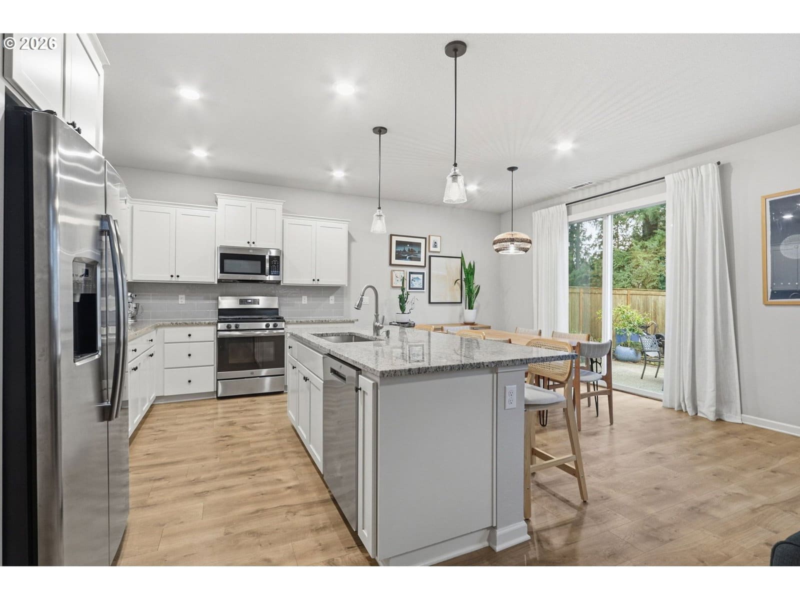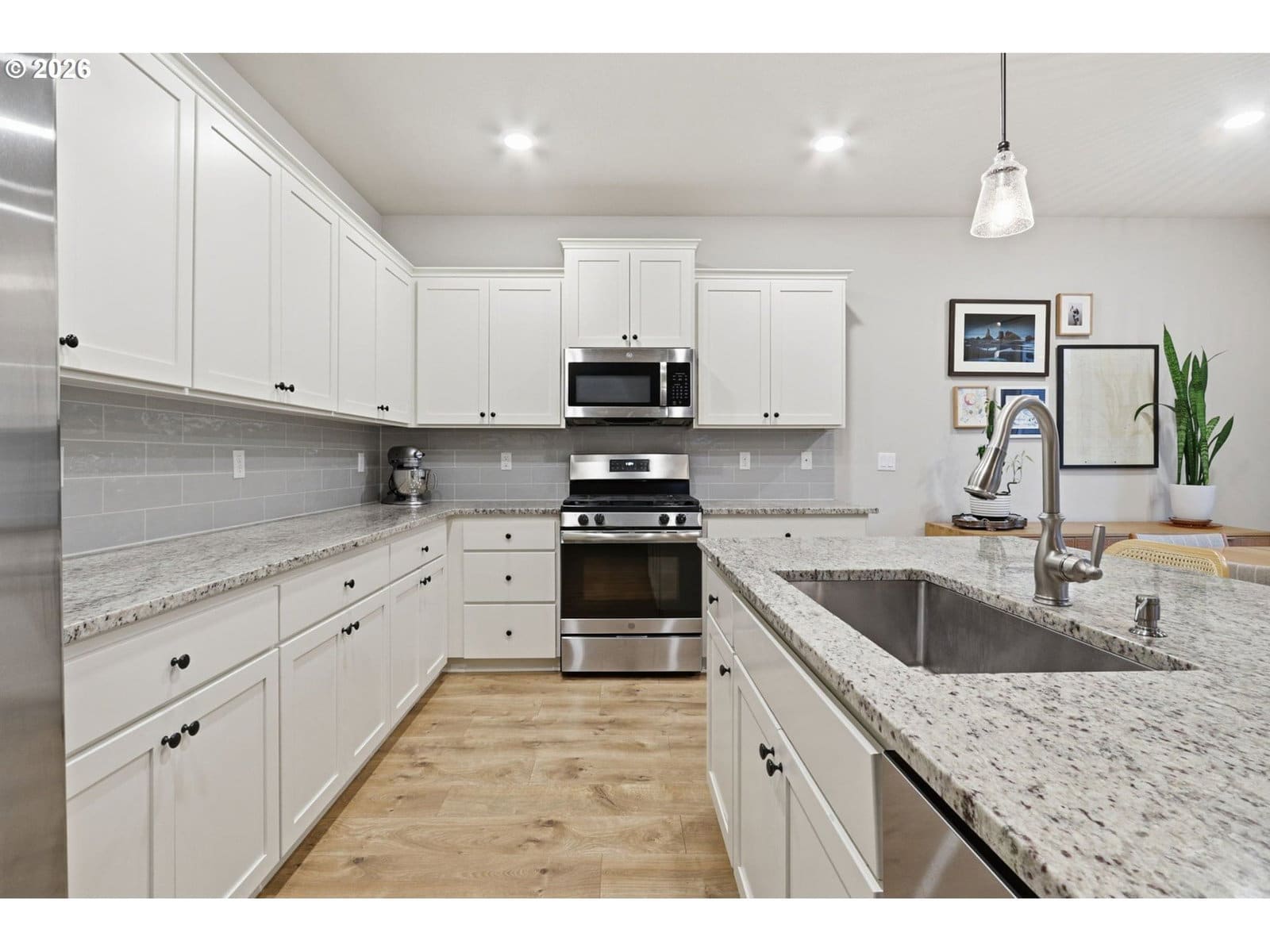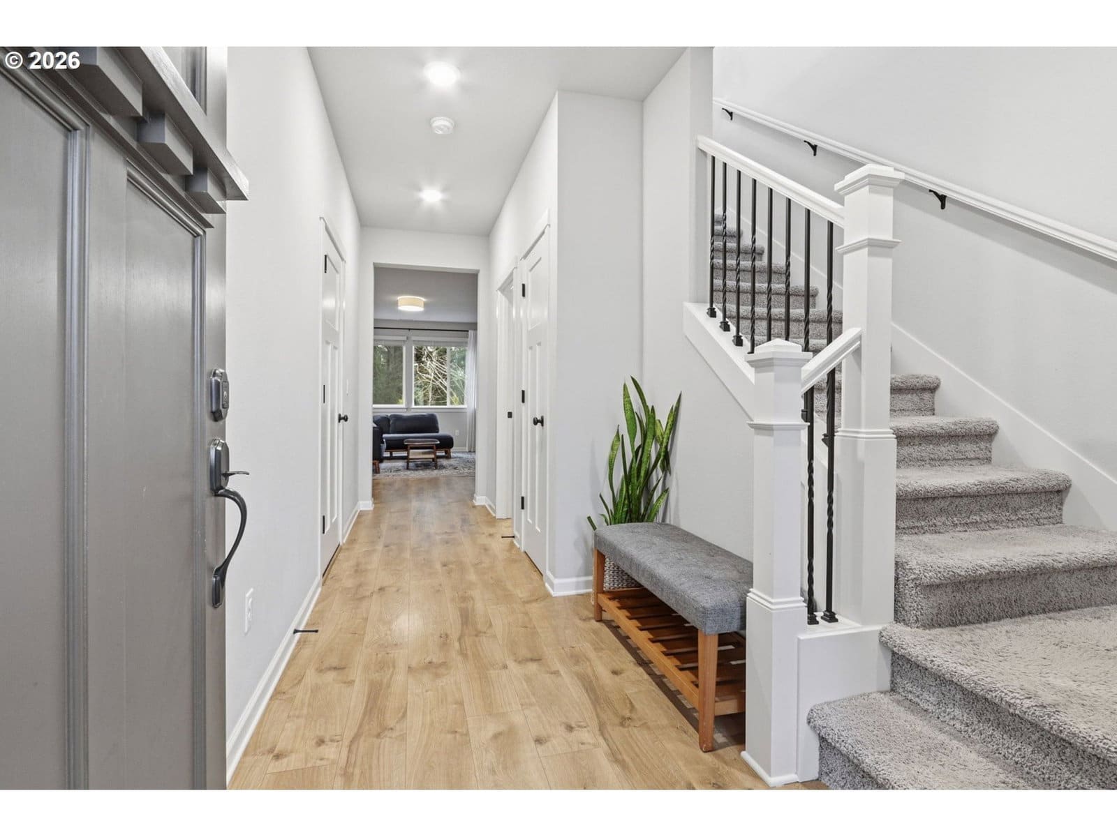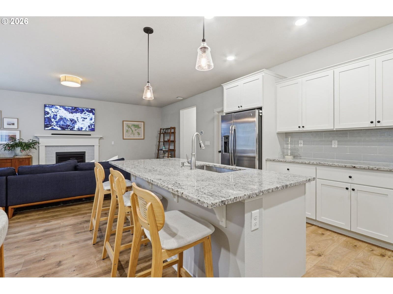 Located on a quiet cul-de-sac and backing to a greenbelt with owned gate access from the back yard, this well-maintained, move-in-ready home offers a desirable blend of comfort and peaceful setting within an established Vancouver neighborhood. The fully fenced and landscaped backyard is ideal for relaxing, gardening, or entertaining. Inside, enjoy a bright interior with high ceilings and laminate plank flooring throughout the main level. The kitchen features stone countertops, stainless steel gas appliances, a spacious island with eating bar, and pantry. A cozy gas fireplace anchors the living area, while a tankless water heater and newer A/C provide year-round comfort and efficiency. Upstairs, the primary suite offers a walk-in closet, walk-in shower, soaking tub, and greenbelt views. The laundry room is conveniently located near the bedrooms, along with a versatile great room for media, games, or flexible living. Close to parks, shopping, dining, schools, and commuter routes.Schedule your private showing today and see this home in person.