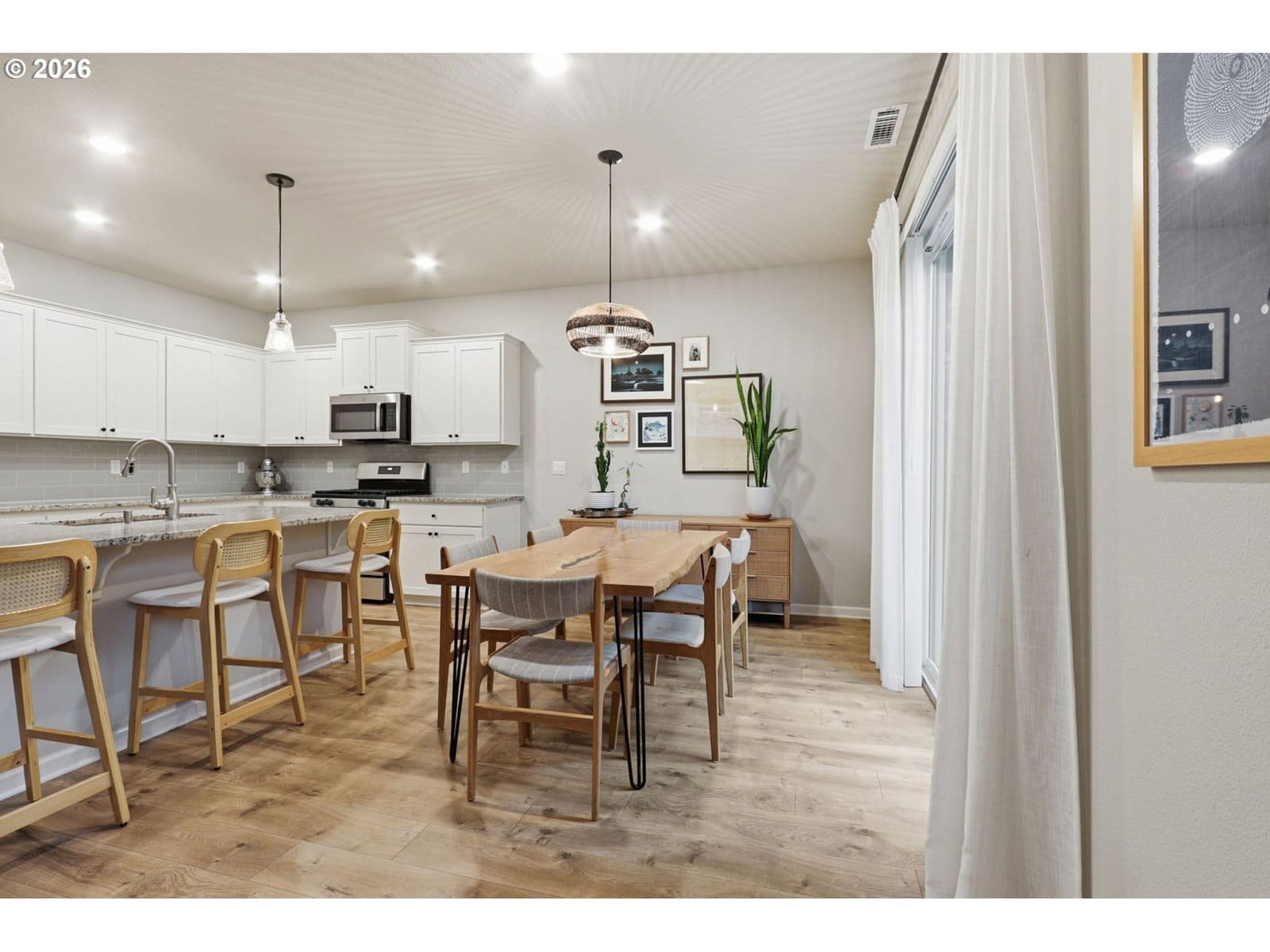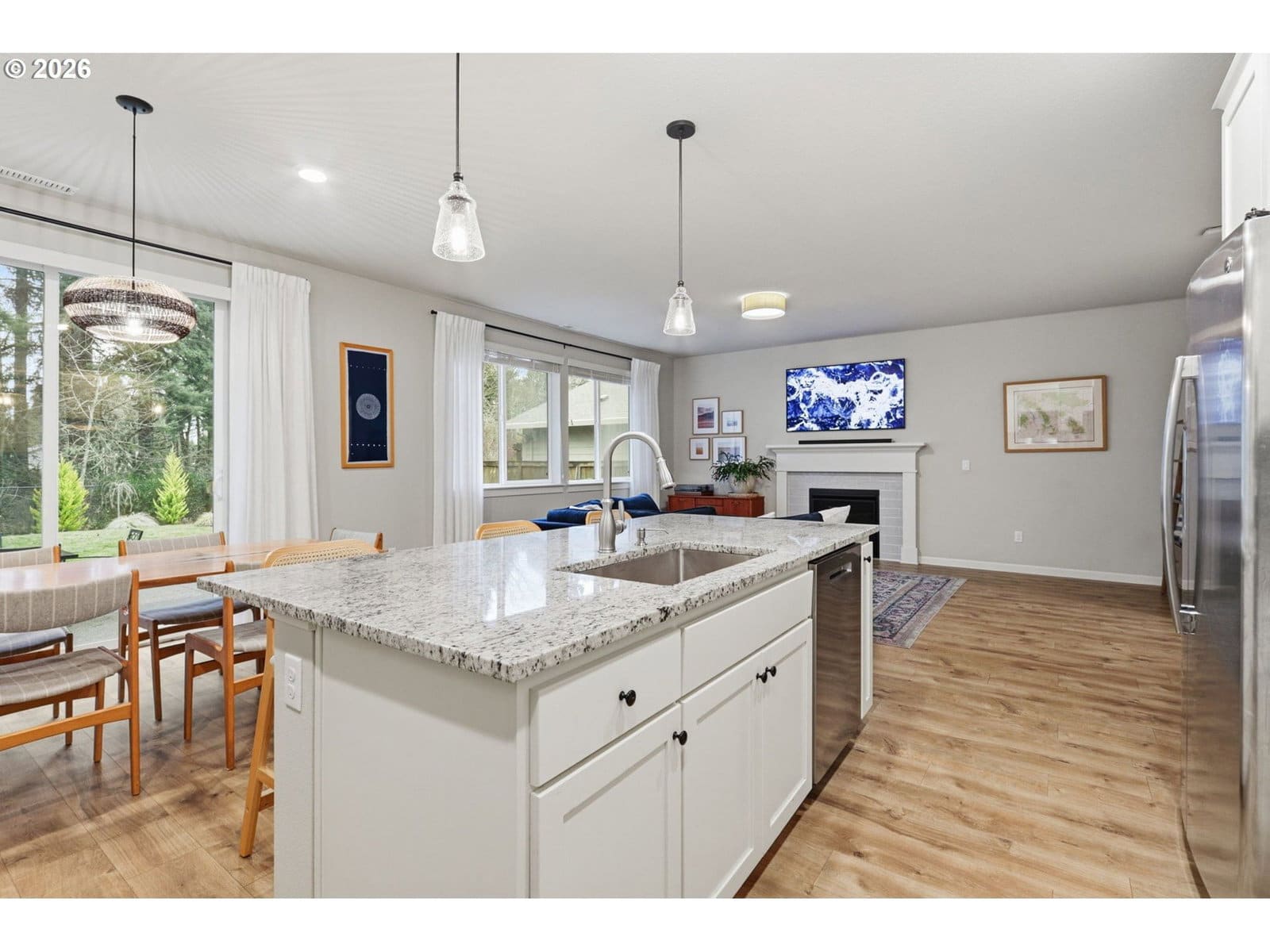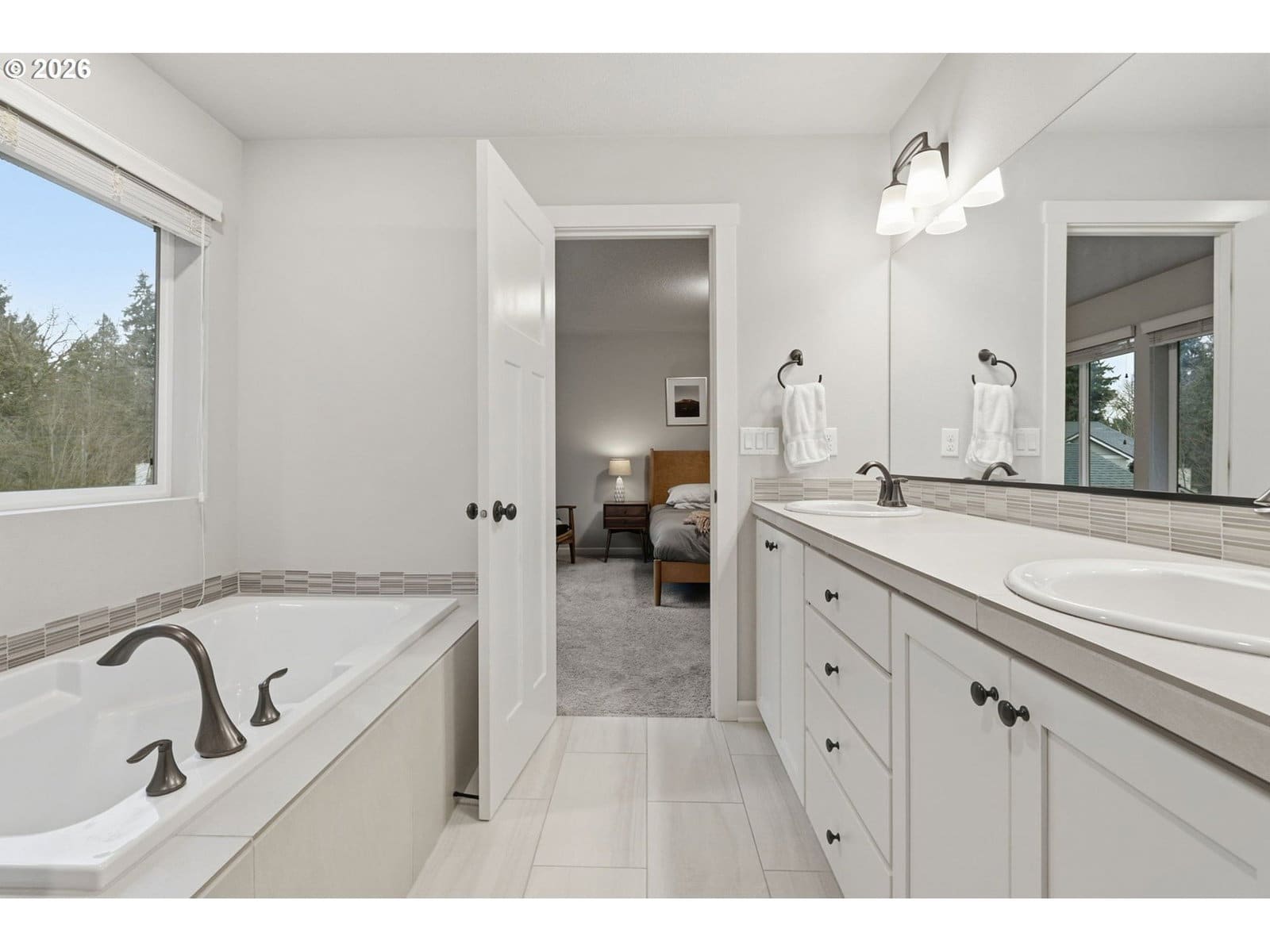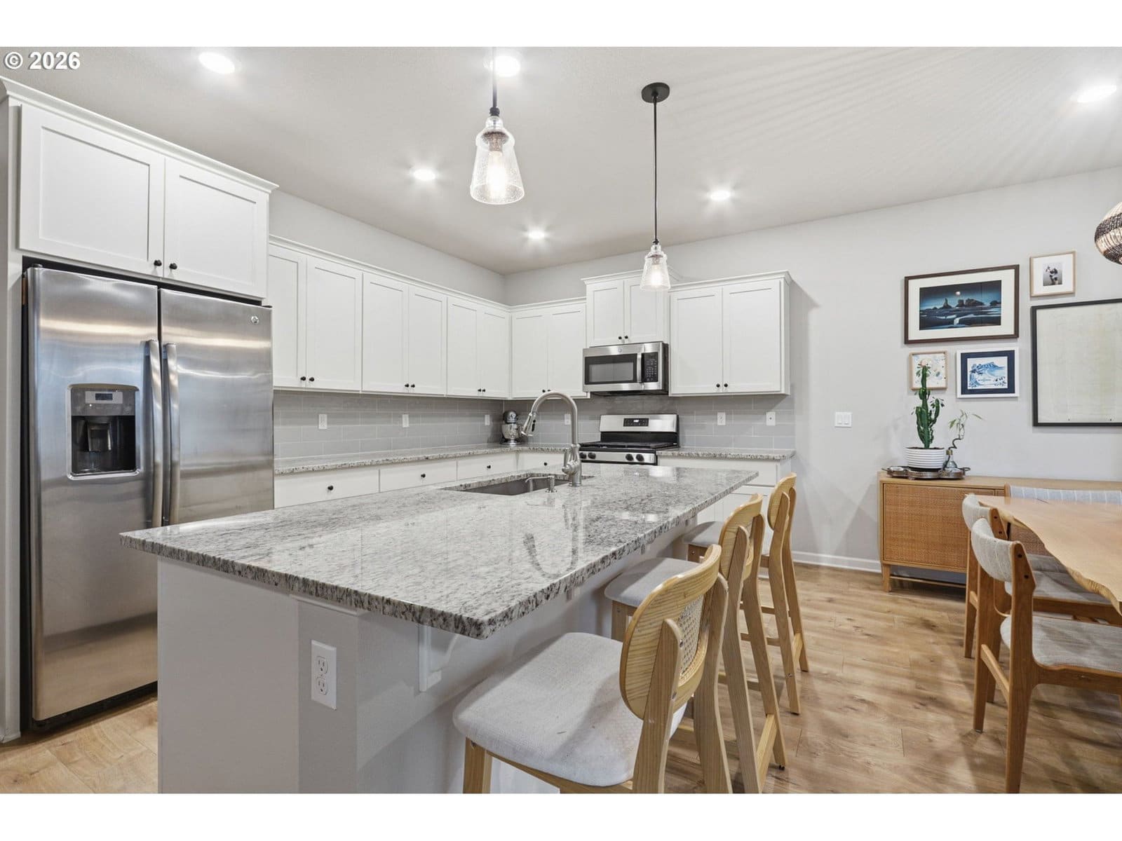 Located on a quiet cul-de-sac and backing to a greenbelt with owned gate access from the back yard, this well-maintained, move-in-ready home offers a desirable blend of comfort and peaceful setting within an established Vancouver neighborhood. The fully fenced and landscaped backyard is ideal for relaxing, gardening, or entertaining. Inside, enjoy a bright interior with high ceilings and laminate plank flooring throughout the main level. The kitchen features stone countertops, stainless steel gas appliances, a spacious island with eating bar, and pantry. A cozy gas fireplace anchors the living area, while a tankless water heater and newer A/C provide year-round comfort and efficiency. Upstairs, the primary suite offers a walk-in closet, walk-in shower, soaking tub, and greenbelt views. The laundry room is conveniently located near the bedrooms, along with a versatile great room for media, games, or flexible living. Close to parks, shopping, dining, schools, and commuter routes.Schedule your private showing today and see this home in person.