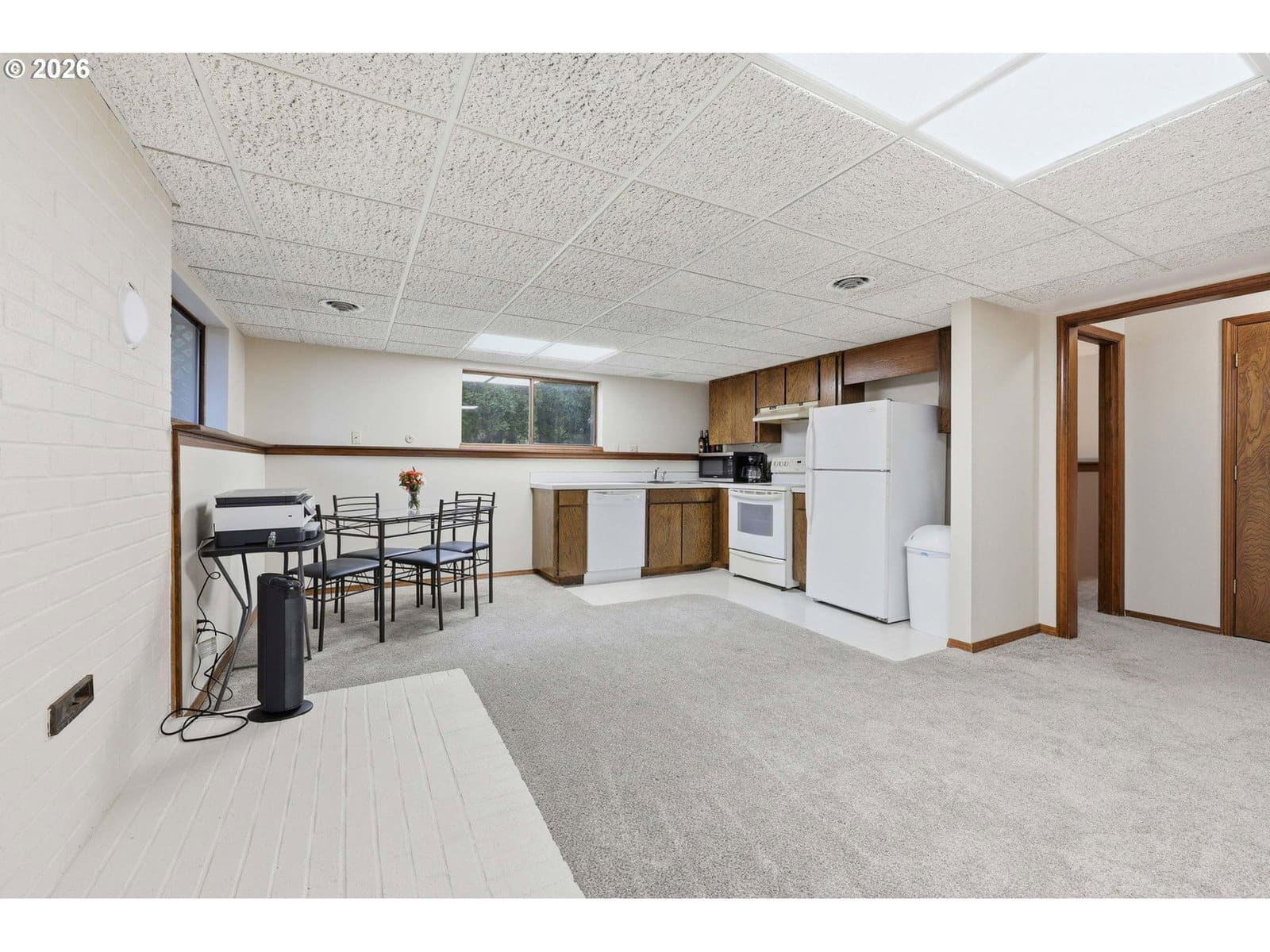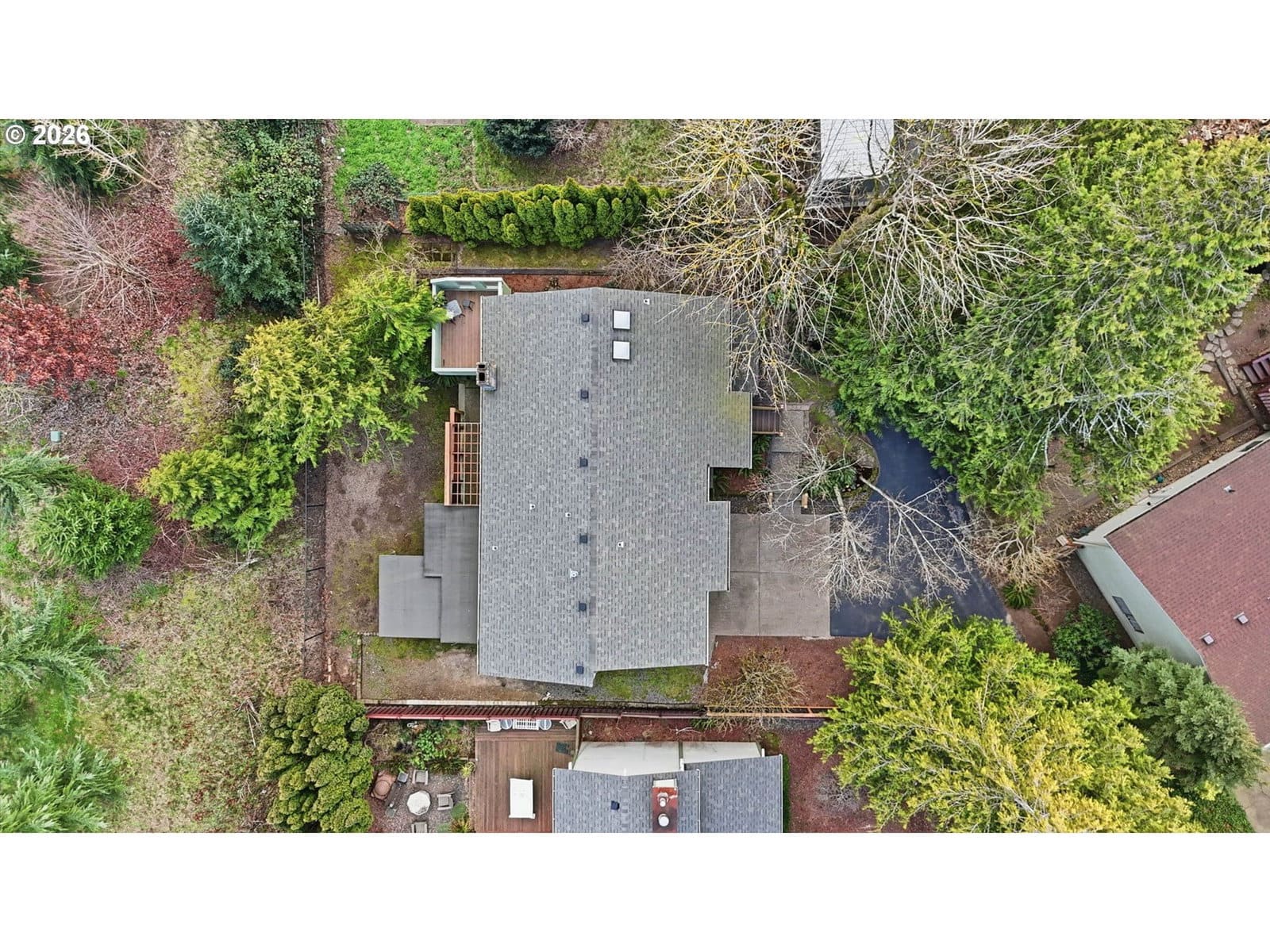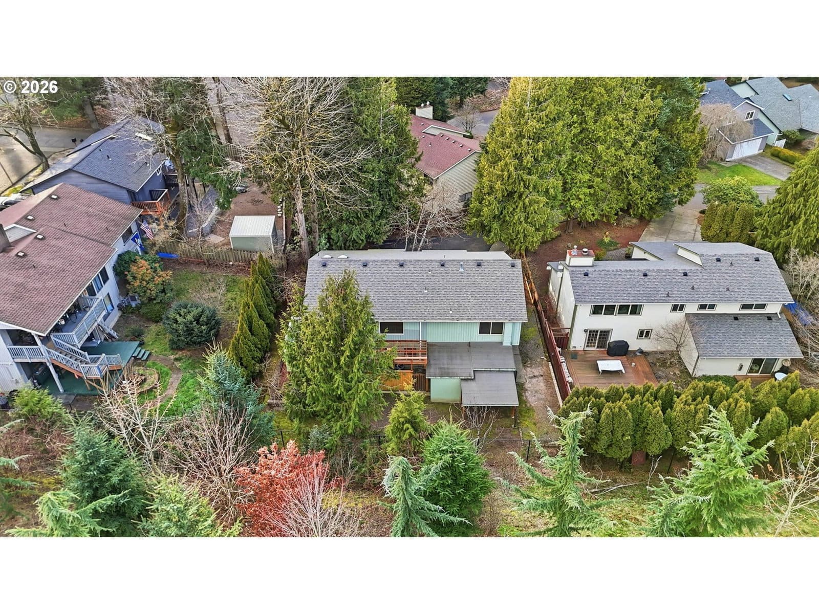 Tucked away behind a secluded, tree-lined drive, this beautiful home is waiting for you.The residence features four bedrooms and three bathrooms, including a spacious living and dining area with vaulted ceilings and a stone wood-burning fireplace. The sun-kissed kitchen is filled with natural light from skylights and generous windows, and comes equipped with all stainless steel appliances. Adjacent to the kitchen is an unforgettable breakfast nook where you can enjoy your morning coffee while nestled in the treetops.The main floor hosts the primary bedroom with an ensuite and walk-in closet, along with two additional bedrooms. The impressive downstairs level sets this home apart, offering a cozy family room and a second kitchen—an ideal space to unwind. This lower level also includes a bedroom and bathroom, making it perfect for overnight guests or a second living quarters. Outside, the low-maintenance yard is a dream come true. This property is conveniently located just 1.5 miles from the Columbia River and 20 minutes from downtown Portland.Come see this bit of paradise for yourself! [Home Energy Score = 4. HES Report at https://rpt.greenbuildingregistry.com/hes/OR10213734]