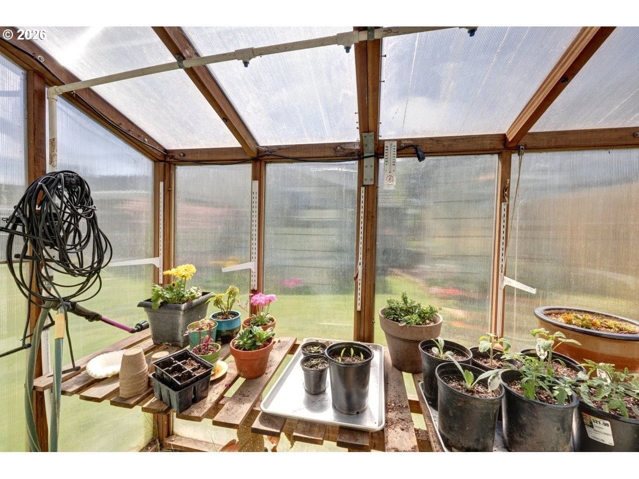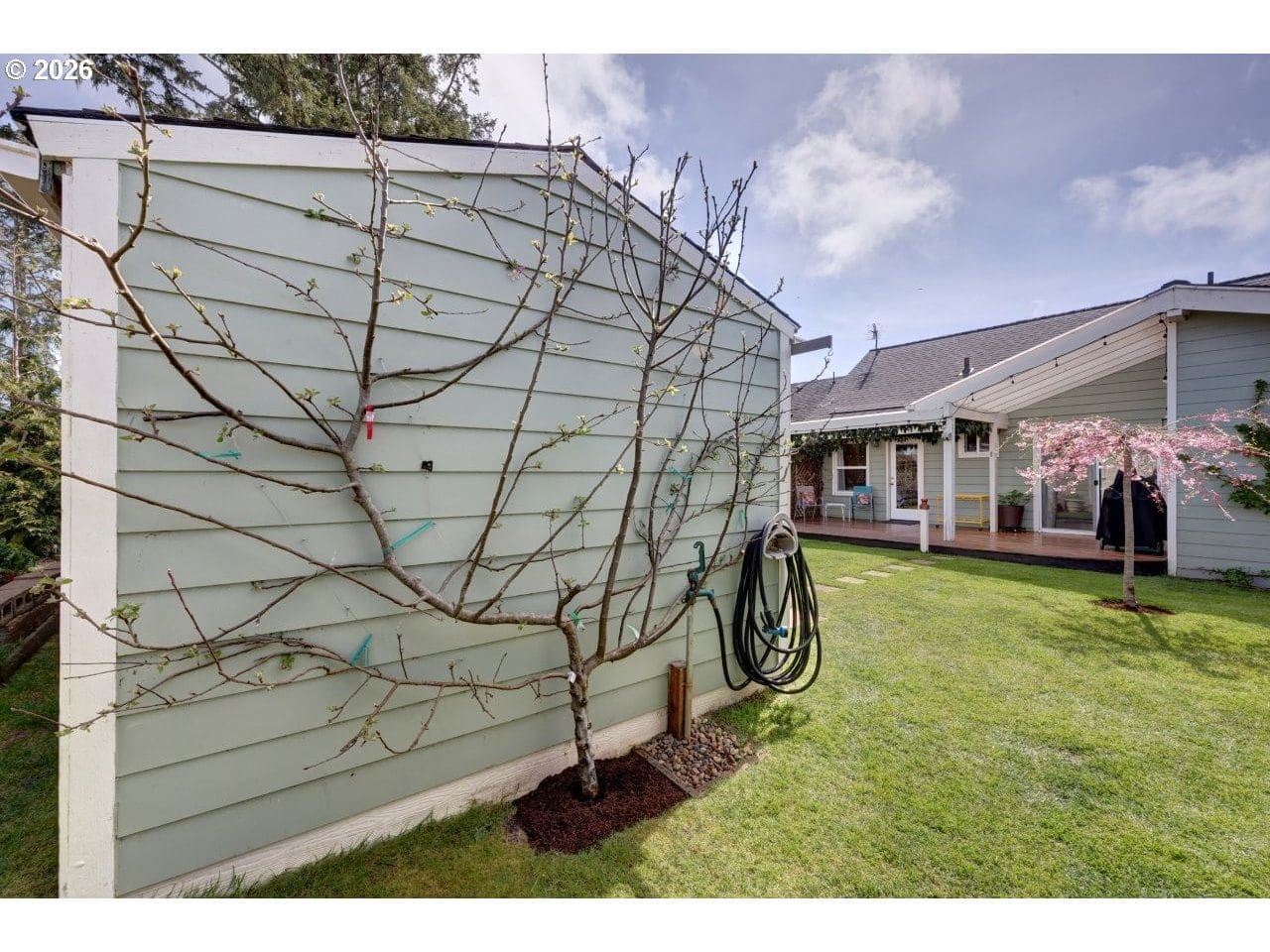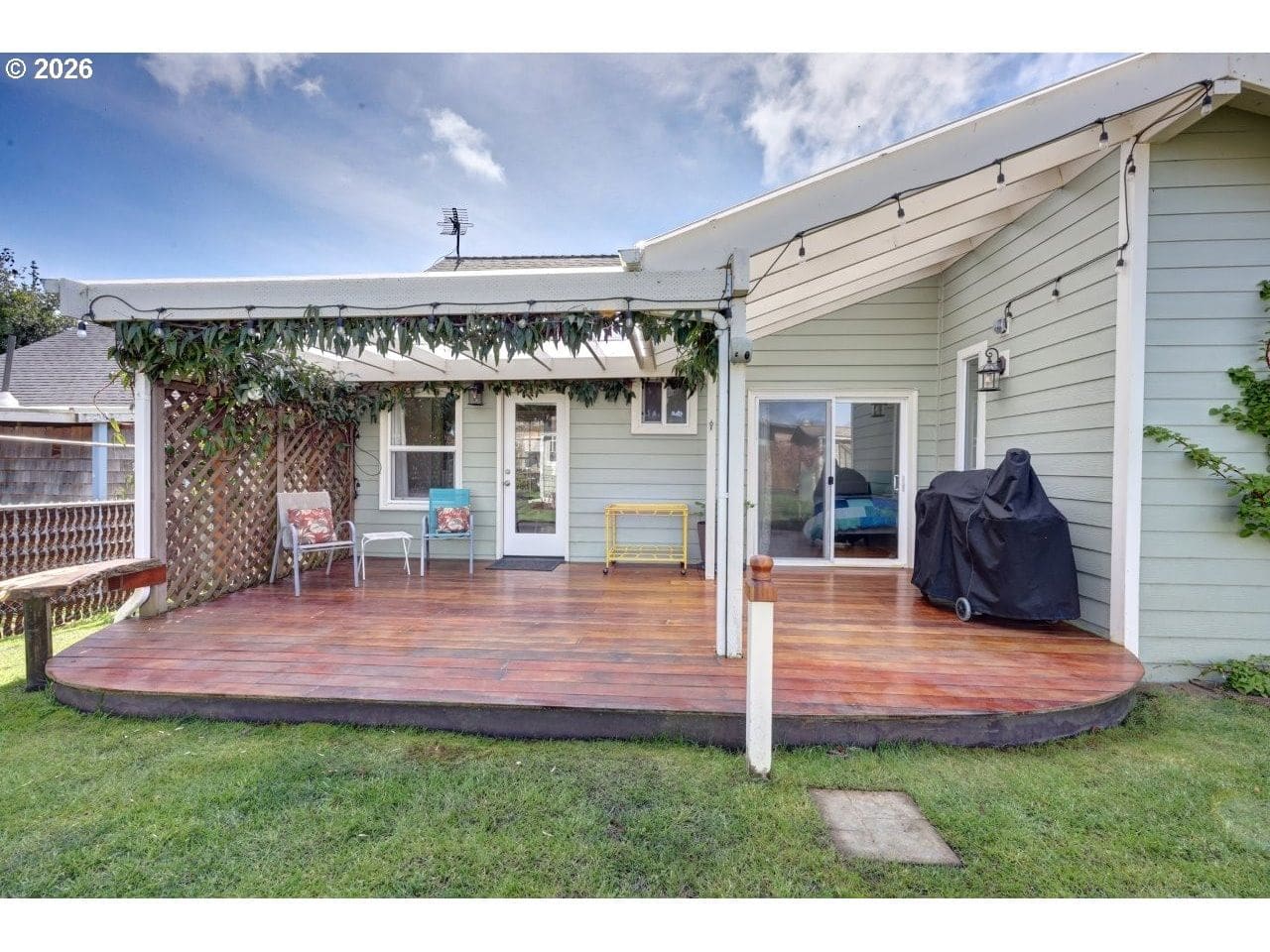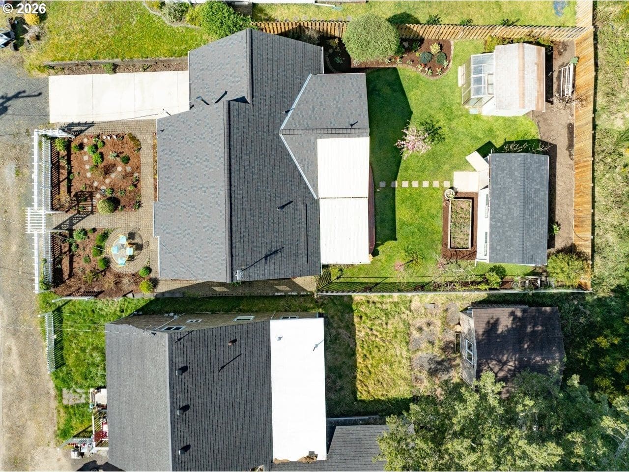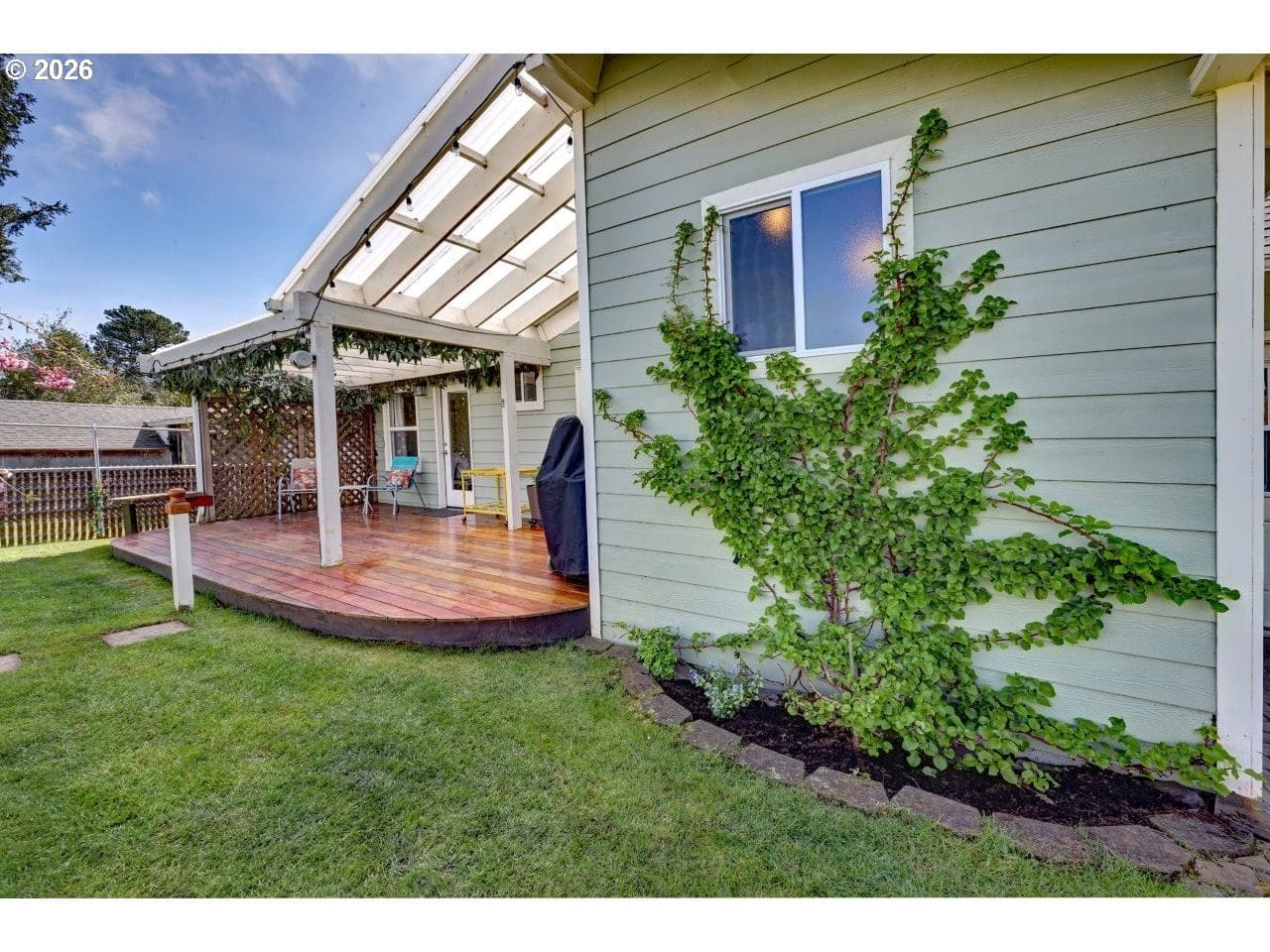 Welcome to your dream cottage in Seaside, Oregon! This charming 3 bedroom, 2 bathroom residence boasts approximately 1,294 square feet of cozy living space. Enjoy the convenience of main floor living with a primary suite that features a new onsuite bathroom.Bedroom and den have direct access to a covered Brazilian tiger wood deck, perfect for outdoor relaxation. The home also includes a den with a Murphy bed, ideal for guests. Additional highlights are a new roof, a heated and insulated Tuff Shed shop, and a greenhouse with an attached tool shed. You'll appreciate the fully fenced yard with magical landscaping with fruit trees, flowers and berries nicely equipped with sprinkler system.The attached garage adds extra convenience and includes the washer and dryer. Located near serene trails, the estuary and pacific ocean along with community amenities, this property combines comfort and functionality in beautiful Seaside, Oregon—don't miss your opportunity to call it home!