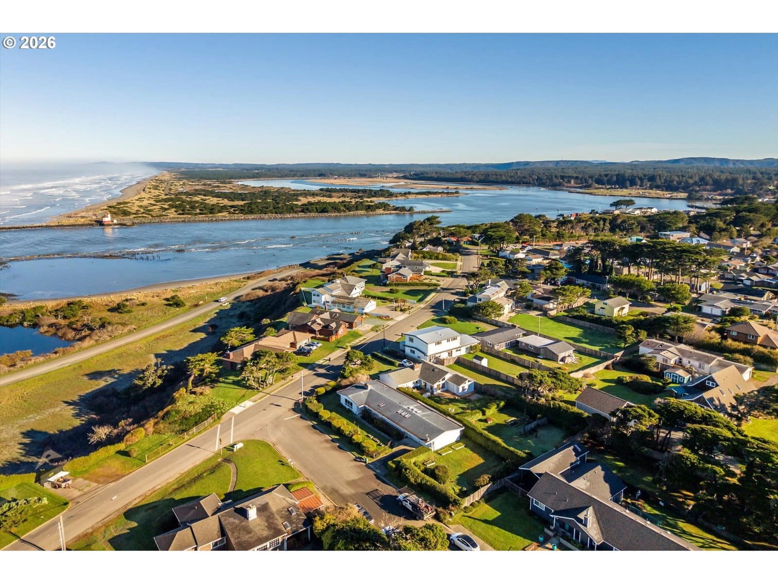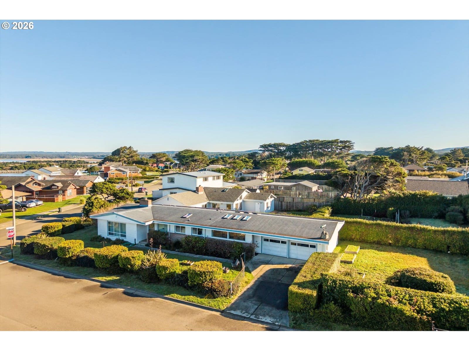 OCEAN WAVES ROLLING ON IN to the Jetty at the mouth of the Coquille River is the view from this single level 1960 Ranch Home on large, fenced lot features 3 Bedroom/2 Baths, 1962 sq. ft., decorative brick siding, picture windows, a spacious family room with 6 skylights in addition to the large Living Room/Dining Room with Pellet Stove with Brick & Myrtlewood Mantle, new Daikin Heat Pump, front loading Kenmore Elite Washer/Dryer, vinyl windows, small sheltered, private deck, 2 car attached garage with built in workbench & shelving plus an extra fridge. Sold mostly furnished if you would like. The .22-acre yard is fenced into 3 sections. One area, 55 x 60 ft. might be just right for an ADU, studio or shop or just an enviable garden. Quick walk to all the fun: beach, park, library, pickleball, disc golf, senior center, Old Town shops & dining! Great Bandon Beach House in a prime sweet spot!