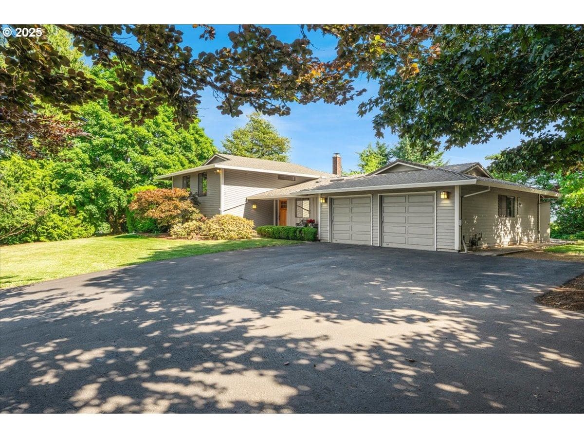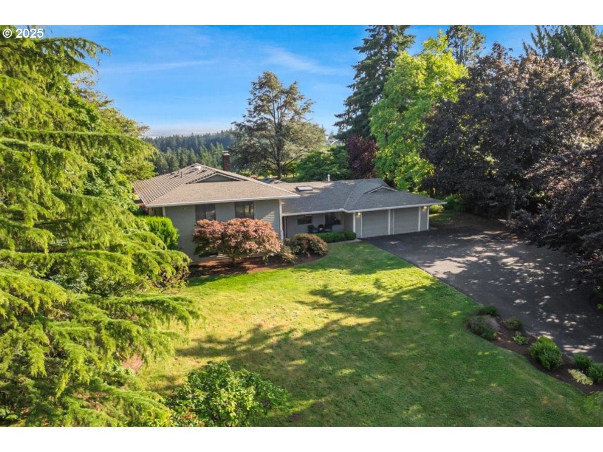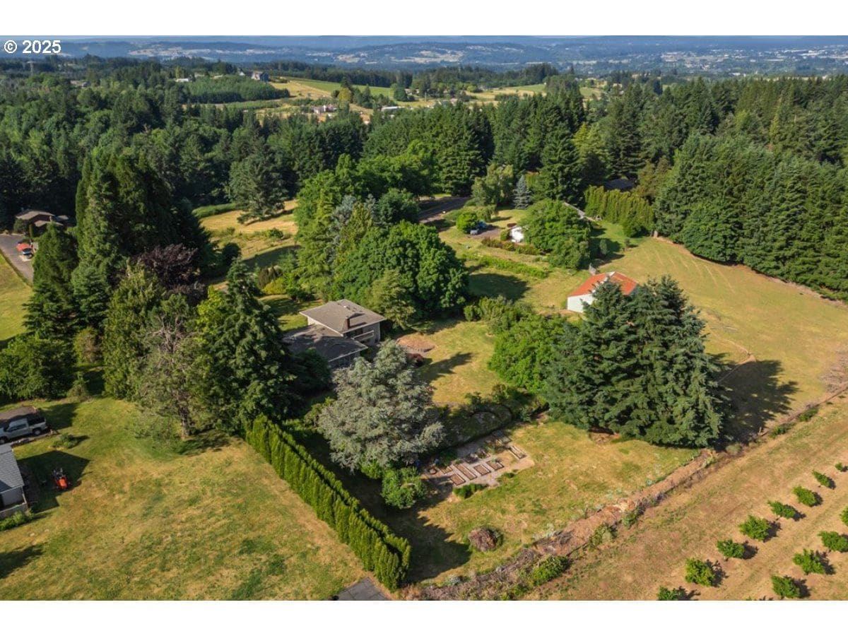 Some homes have a feeling you just can't capture in photos. This is one of those rare finds that surprises you in the best way. From the moment you step inside, the wall of floor-to-ceiling windows floods the interior with natural light and draws your eye to the landscape and sweeping valley views. Tucked into the heart of Oregon wine country, you feel a world away, yet you're just minutes from Sherwood and Newberg's shops, restaurants, wineries, parks and trails. Inside, the layout blends open-concept living with defined spaces for both gathering and retreat. A subtle nod to mid-century design adds character without feeling dated. Thoughtful updates reflect consistent care and pride of ownership. The kitchen was designed for both everyday function and easy entertaining, featuring a gas range, prep sink, oversized Sub-Zero refrigerator and freezer and stainless steel appliances. With a living room, separate family room, three bedrooms, three full bathrooms, and a versatile bonus room that can serve as a fourth bedroom or home office, there's plenty of space to spread out. Outside, the living space continues with an expansive patio, Ipe deck, private balcony off the primary suite, and a dry sauna for year-round relaxation. Situated on a quiet dead-end street, this 1.35-acre property is both private and manageable, offering room to garden, play and unwind without being overwhelmed by upkeep. Garden beds are in place, a tool shed is ready for your gear, and several fruit and nut trees are already established; including apple, pear, plum, quince, walnut, and even kiwi. This is a home that lives well in every season, offering peaceful rural living paired with the convenience of being near everyday amenities. Come experience it for yourself. You'll be captivated by the setting and lifestyle this property has to offer. Significant Price Improvement! Homeowners on Canter Lane share a community well. Chehalem Mountain Sun Ridge HOA was formed to manage the billing and maintenance of the well only.
