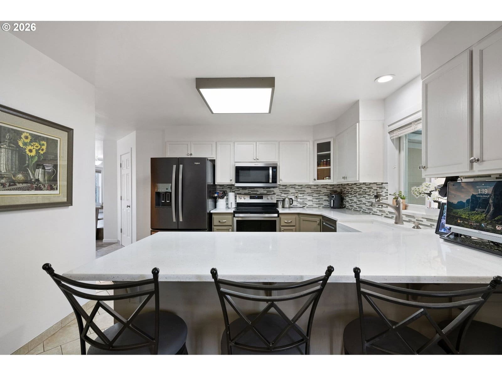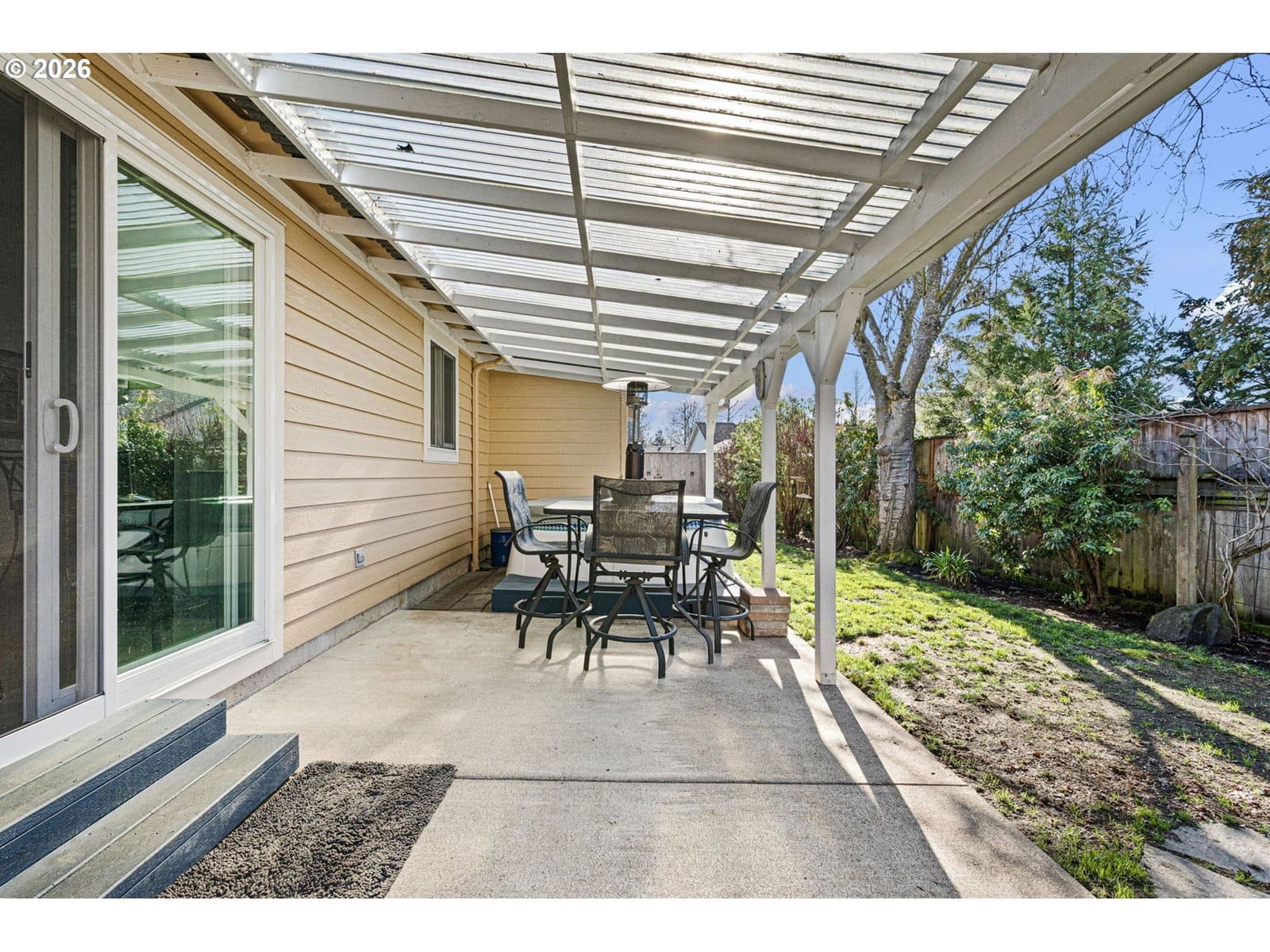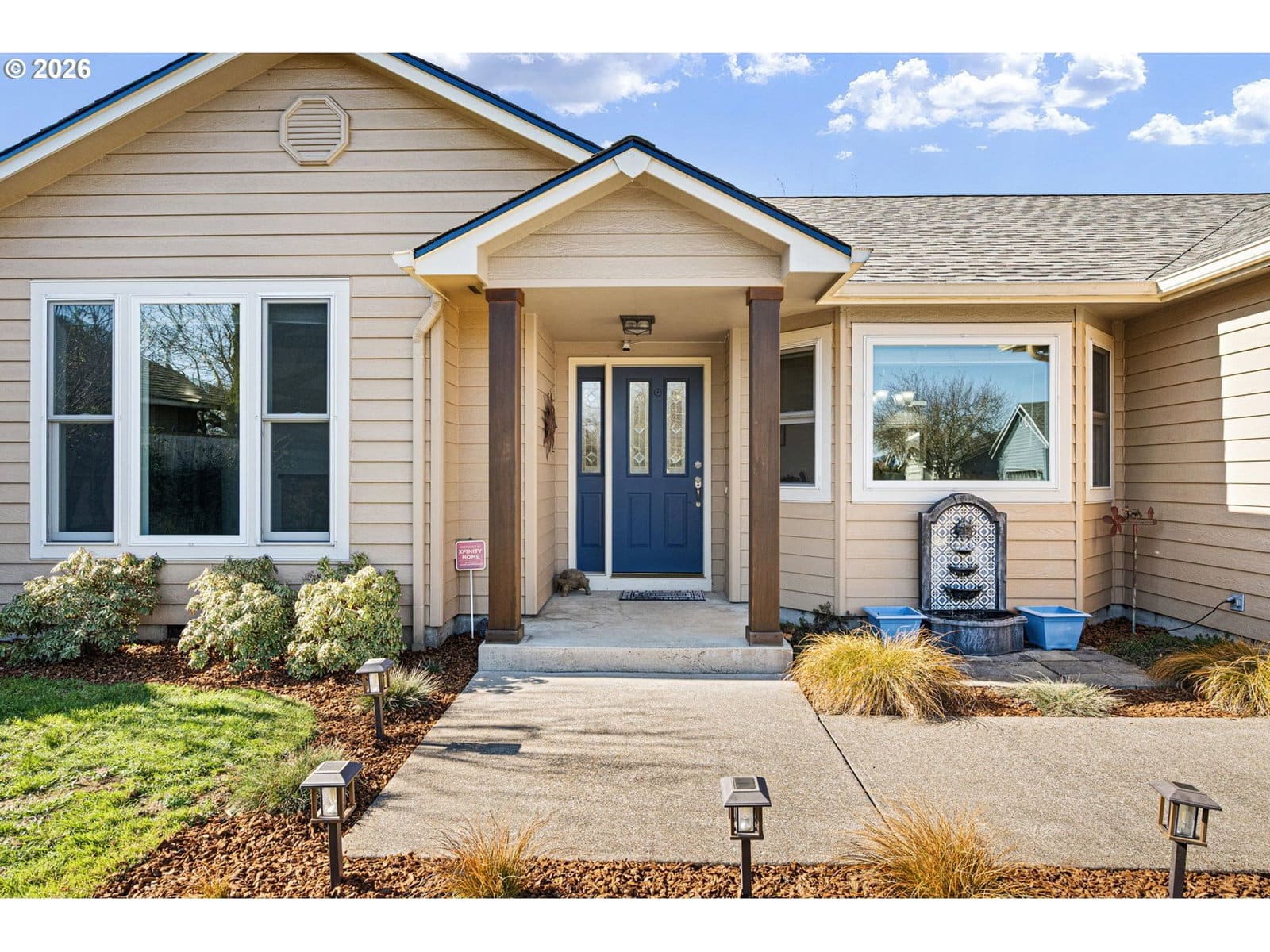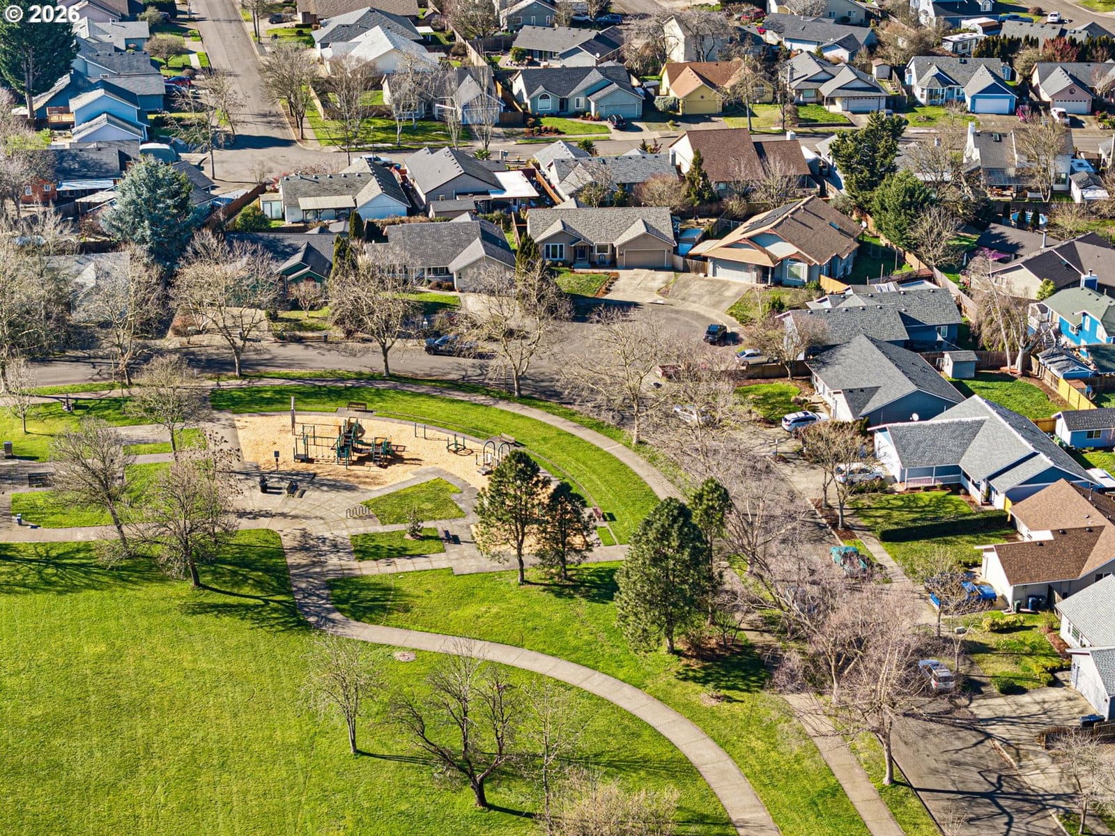 Tucked into a quiet cul-de-sac directly across from a neighborhood park, this thoughtfully updated 1998 built home offers an exceptional blend of comfort, efficiency, and modern upgrades.From the moment you arrive, you’ll appreciate the inviting curb appeal, expansive driveway, and welcoming covered front entry. Inside, light filled living spaces are enhanced by newer Renewal by Andersen windows and doors, maximizing natural light while improving energy efficiency and long term performance. Major capital improvements including a new roof and new HVAC system provide added peace of mind.The updated kitchen features quartz countertops, stainless steel appliances, a farmhouse sink, tile backsplash, abundant cabinetry, and a generous eat-in bar that opens seamlessly to the vaulted living room, ideal for both everyday living and entertaining. A cozy gas fireplace anchors the space, while sliding doors lead directly to the backyard.Durable luxury vinyl plank flooring runs throughout the main living areas, creating a cohesive and modern feel. The spacious primary suite offers a large footprint, double closets, and a well appointed ensuite bath with dual sinks and a step in shower. Additional bedrooms are well sized with ample storage.The backyard provides privacy and flexibility for outdoor enjoyment, whether gardening, hosting, or simply relaxing. An oversized two car garage and extended driveway offer generous parking and storage options.Positioned directly across from open green space and playground amenities, this home combines peaceful residential living with immediate access to outdoor recreation.Well maintained with significant system upgrades already completed, this home is move in ready and built for long term comfort.
