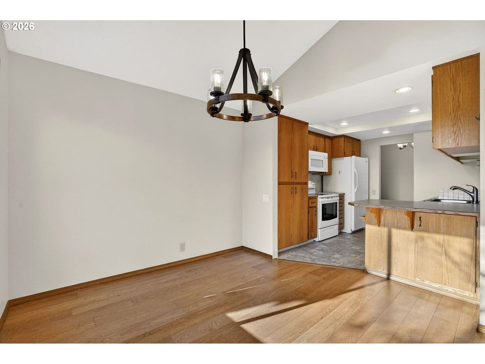 Welcome home to this lovely 55+ community and this beautiful upper-level end unit. Light flows into the south facing living room and dining/kitchen areas creating a very welcoming and comfortable space to enjoy relaxing in front of the cozy gas fireplace. Entertaining or enjoying your own quiet space on the large deck just off the living room. The laundry area is conveniently located just outside the bedrooms. Your own garage is just steps away from the main door. The lobby to the building is secure day and night with a doorbell direct to your unit. The location is quiet and private and yet very close to the clubhouse and rec. facilities, including pickleball! You are also only a few blocks from shopping and dining. Summerfield has so much to offer homeowners and guests.