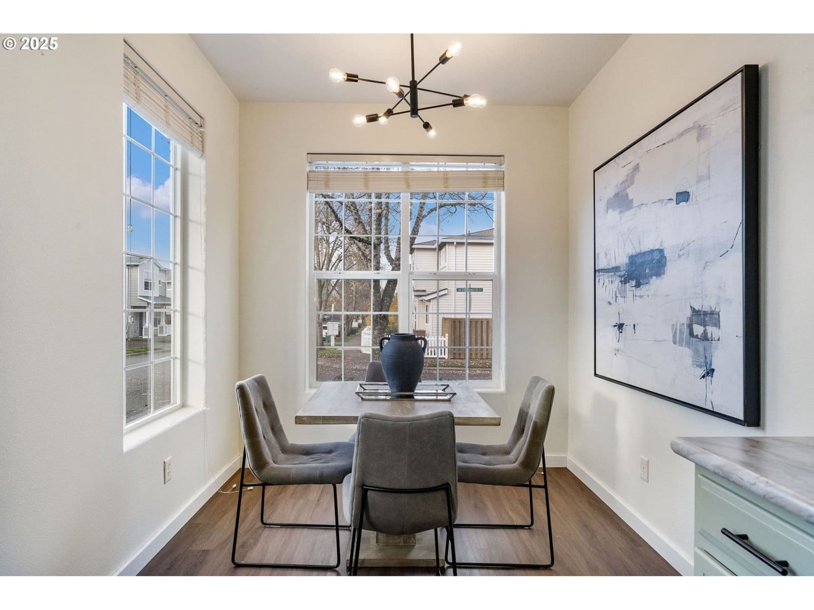 Welcome to this beautifully updated and cozy home in the heart of Beaverton! This home has many tasteful and fresh updates throughout. The charming kitchen has professionally painted solid wood cabinetry, stainless steel appliances with a light and bright dining area. Enjoy a spacious great room perfect for family gatherings and an appointed space for a home office or additional eating area. The primary ensuite has a full bathroom and walk in closet. There are two more true bedrooms up with a second bath. The outdoor extended living area is fully fenced with decorative stamped patio and a new hot tub for unwinding and relaxing evenings. New roof is scheduled for this spring, covered under HOA.The HOA covers roofs, siding, gutters, front yard landscaping, exterior insurance and management. This home sits on a corner lot, no common wall providing more light, functional space and privacy. Close to Intel, Nike and walkable to cafes, restaurants and shopping. Don't miss out on this lovely ready to move in and love it home!