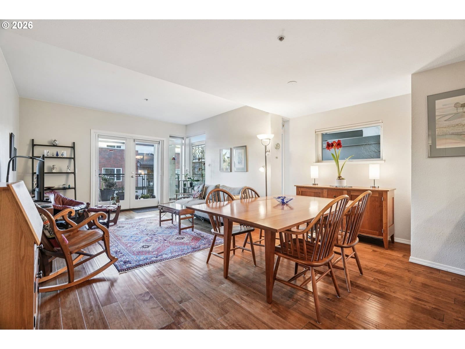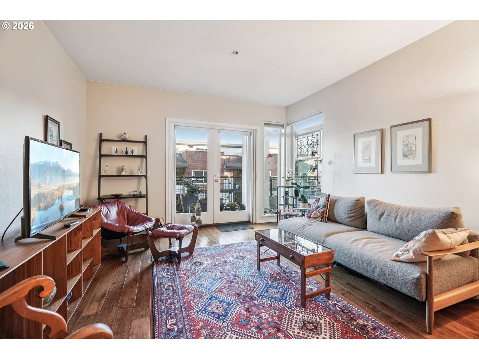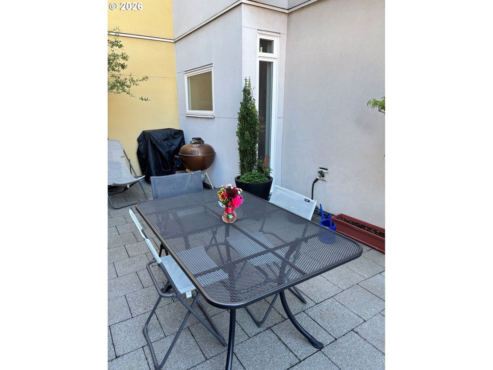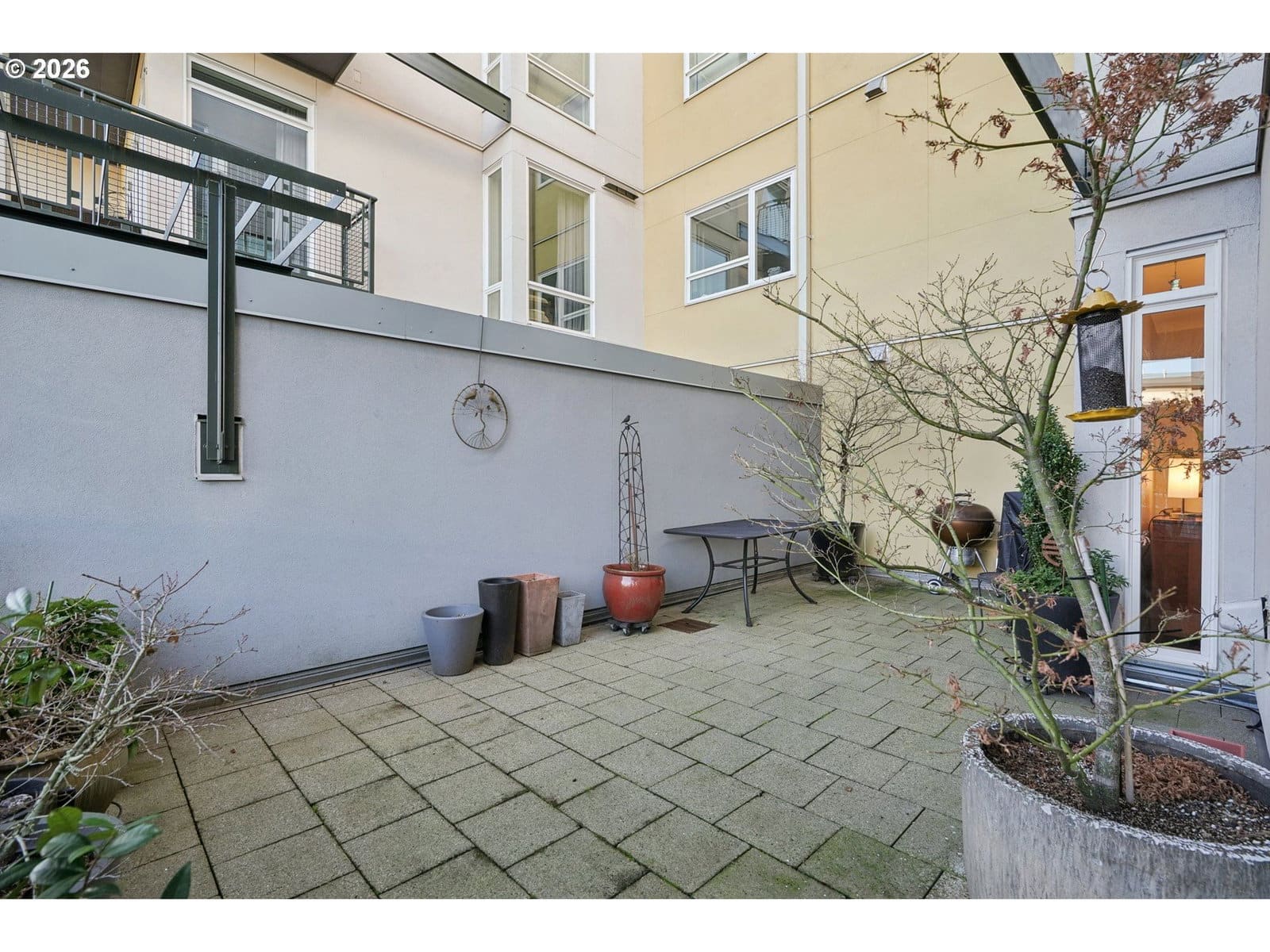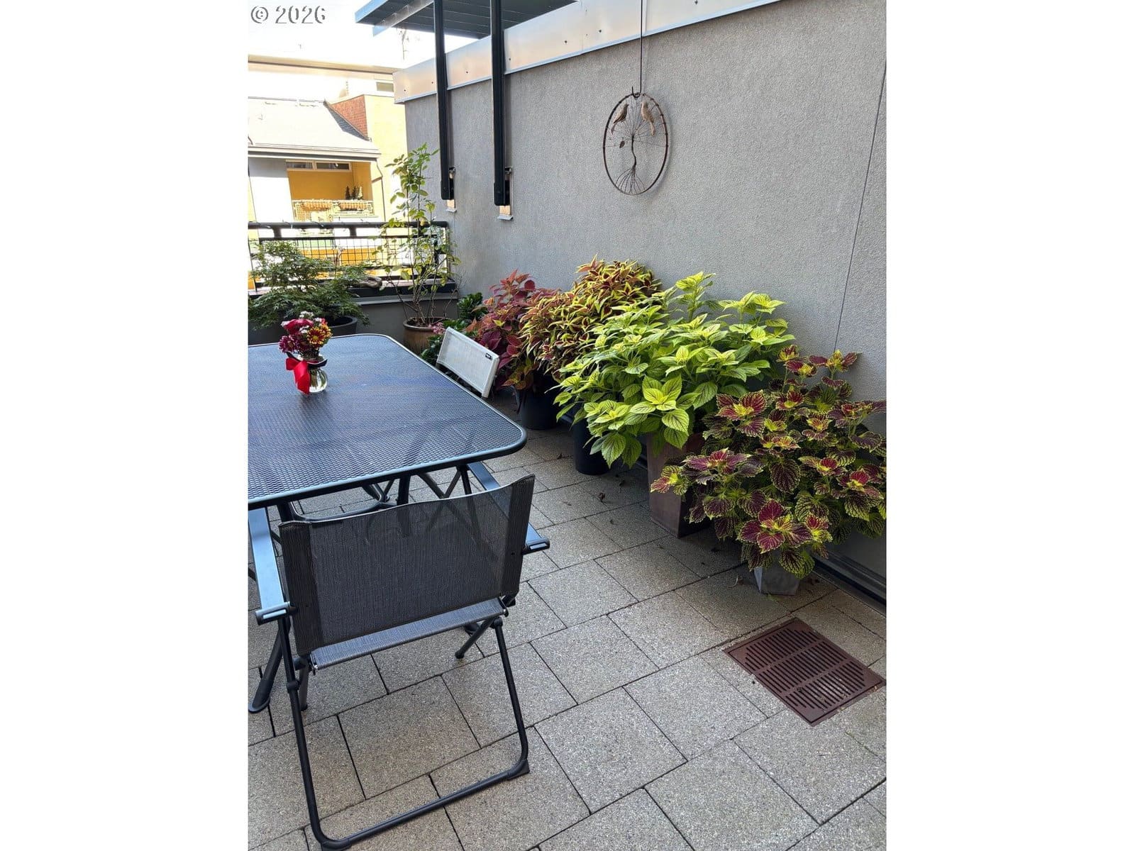 Welcome home! This one bedroom, move-in ready condo lives large in the sought-after Irvington neighborhood! Updated kitchen with quartz countertops, tiled backsplash, eat-in bar, and stainless steel appliances opens to the spacious living and dining area with large windows to bring in the light. French doors open to the large, oversized terrace that offers both covered and sunshine-filled spaces ideal for gardening, reading a good book, or enjoying your morning lattes. The generous-sized bedroom includes a walk-in closet and access to the terrace. Pass the stackable W/D closet on your way to the large, updated bathroom with tiled walk-in shower and dual vanities. Includes assigned parking in secured garage and a separate storage unit in a secured building in the heart of NE Portland. Steps to restaurants, shops, cafes, grocery stores, with transit access right outside your door. Don't miss this opportunity, schedule a showing today!