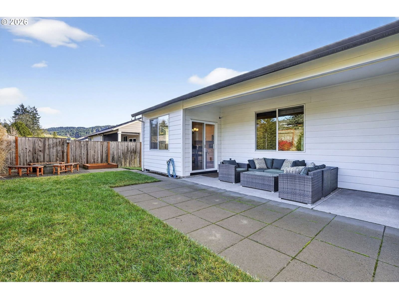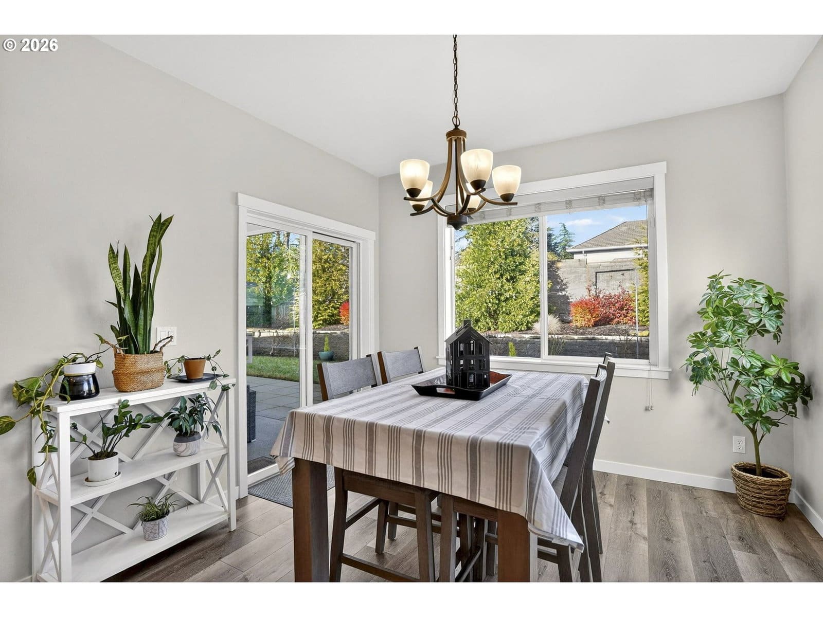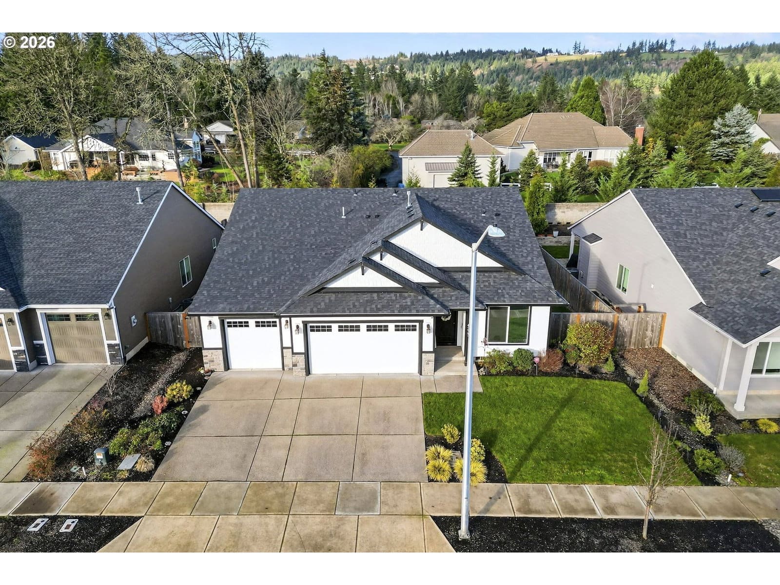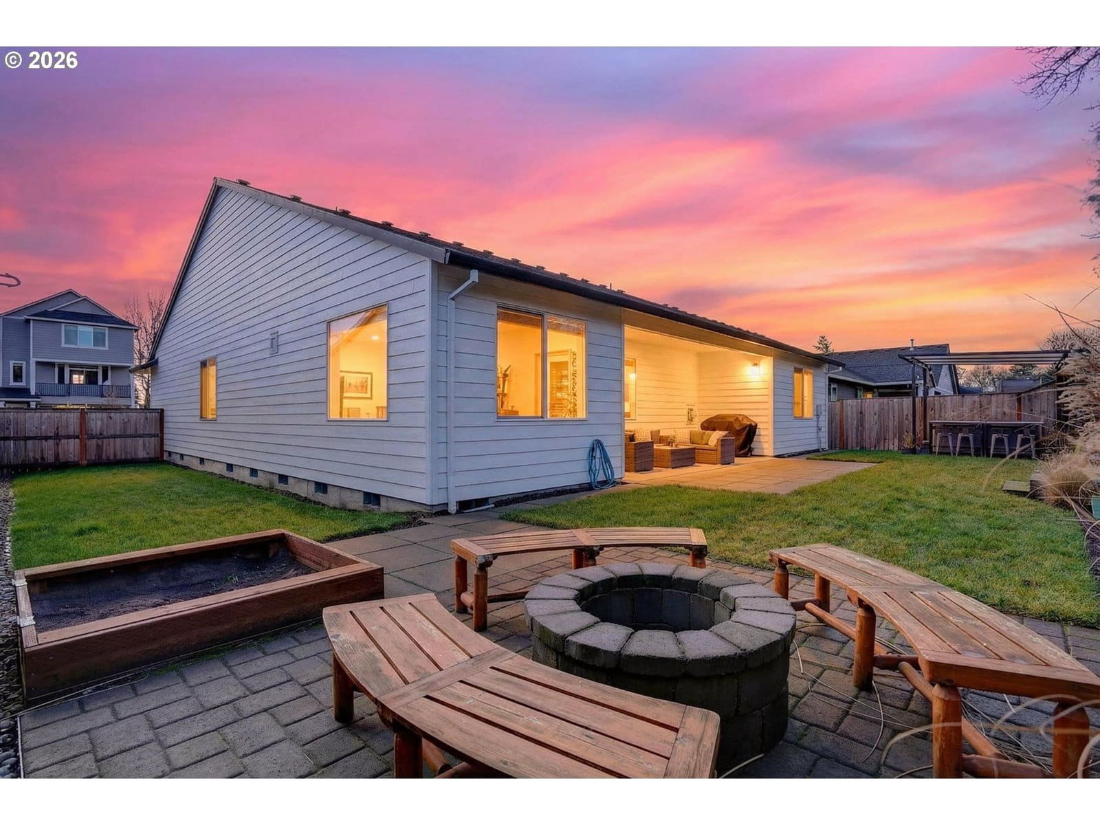 This beautiful home in East Newberg is better than new construction! It's been gently lived in and has a fabulous backyard that's private and backs to Oxburg Lake Estates. The large, welcoming entry features a stylish ceiling with recessed lighting that leads to a Great Room floor plan you'll love that includes the primary bedroom on the opposite side of the house from the other two bedrooms. All the rooms are spacious and the open living concept is perfect for entertaining or just relaxing. You'll find beautiful luxury vinyl plank flooring throughout the entry, Great Room, kitchen, dining area, baths, and laundry room. The Great Room features a vaulted ceiling, gas fireplace, and large windows looking out to the private back yard. The kitchen has the perfect setup with the sink in the island, quartz counters, stainless appliances, and a walk-in pantry. The large primary bedroom is also vaulted with a beautiful en-suite bath and a 6' X 15' walk-in closet. The icing on the cake is the fabulous, private, low-maintenance back yard that includes a beautiful retaining wall, expansive covered patio, separate covered hot tub (meticulously maintained!), a sandbox that could be a raised bed, and a very nice fire pit. There's also a bonus exercise common area across the street designed for adults that's part of the HOA! Welcome home!