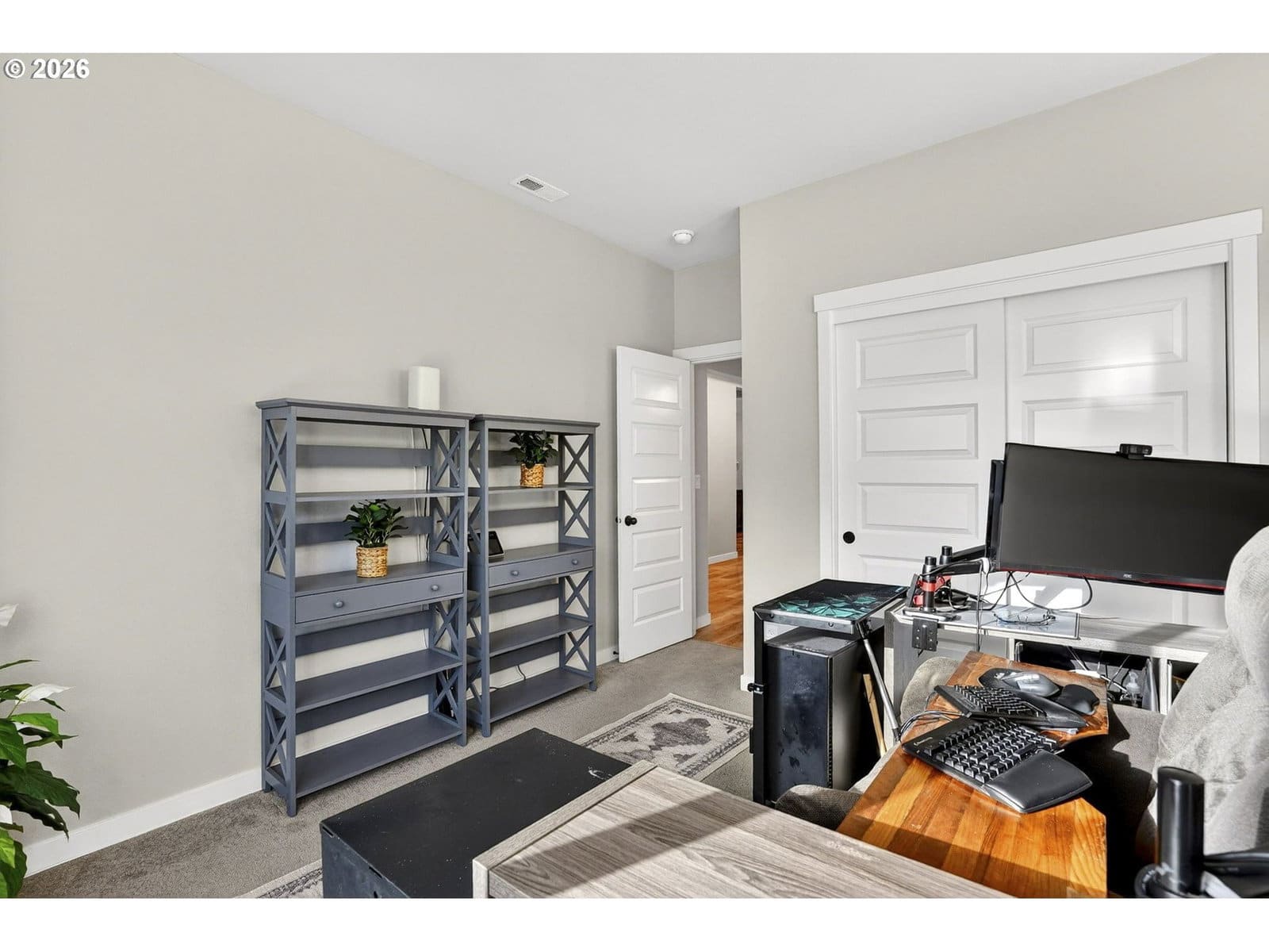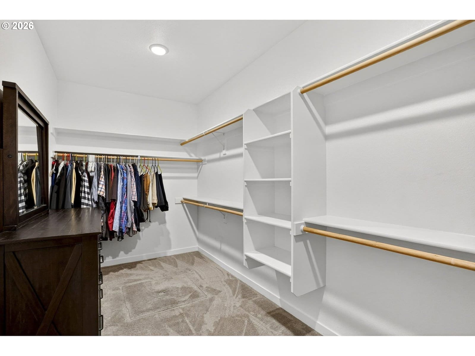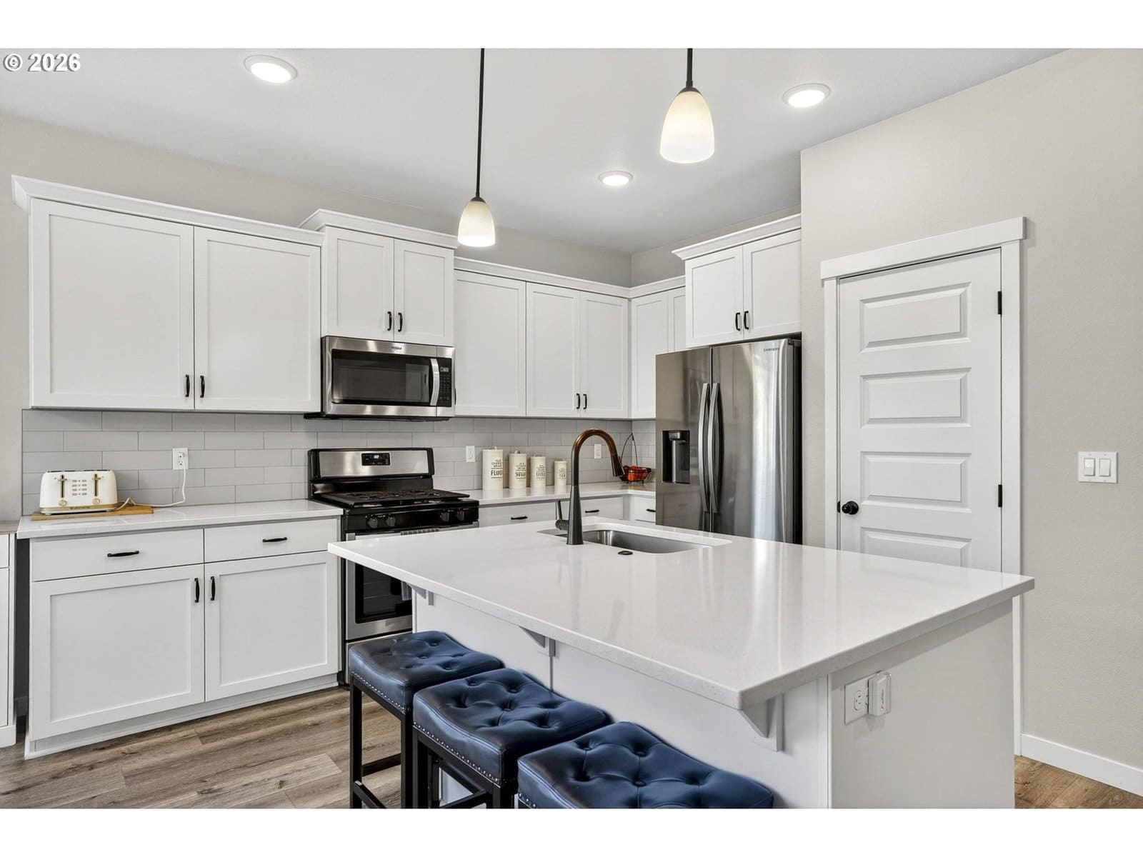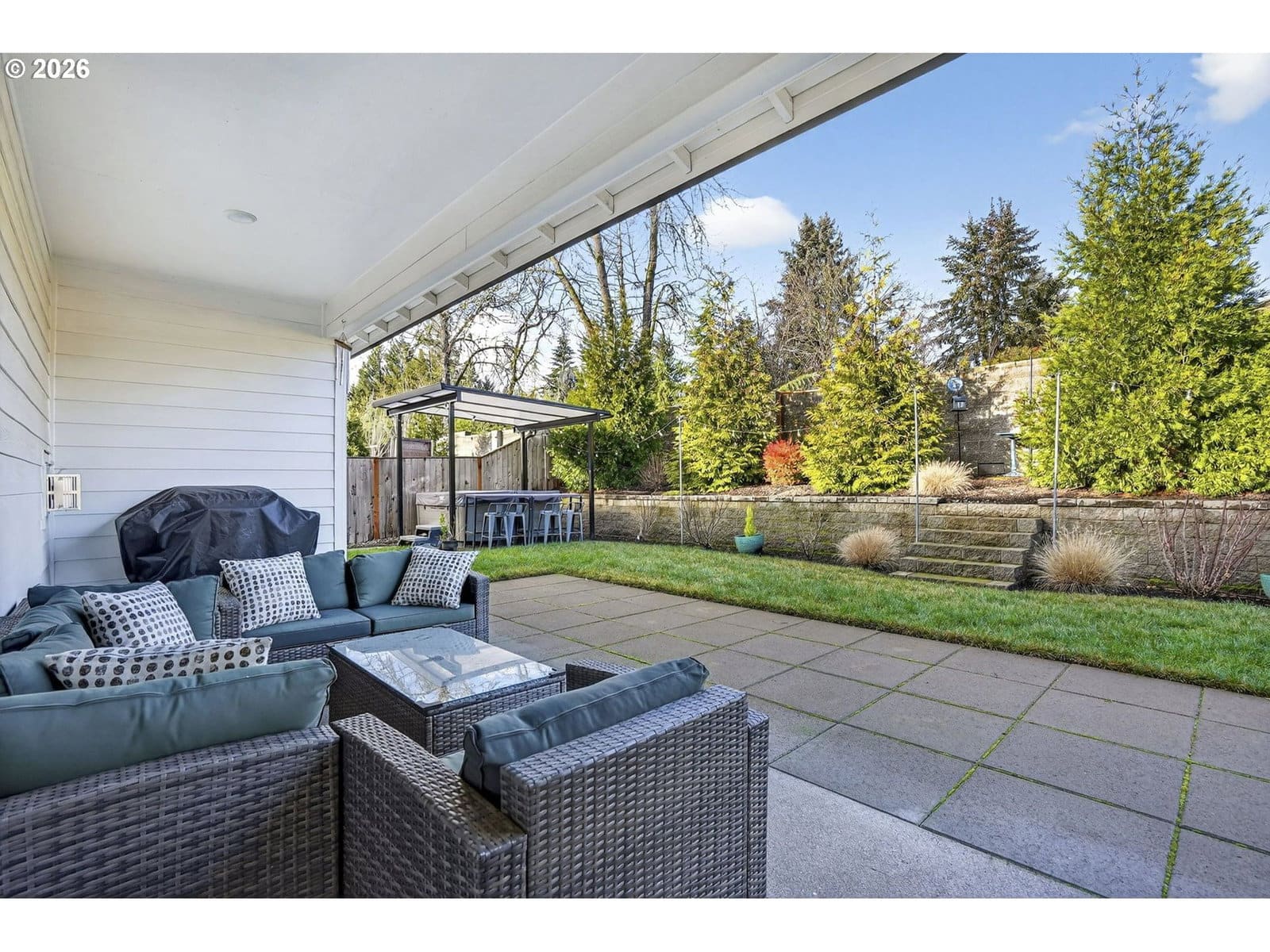 This beautiful home in East Newberg is better than new construction! It's been gently lived in and has a fabulous backyard that's private and backs to Oxburg Lake Estates. The large, welcoming entry features a stylish ceiling with recessed lighting that leads to a Great Room floor plan you'll love that includes the primary bedroom on the opposite side of the house from the other two bedrooms. All the rooms are spacious and the open living concept is perfect for entertaining or just relaxing. You'll find beautiful luxury vinyl plank flooring throughout the entry, Great Room, kitchen, dining area, baths, and laundry room. The Great Room features a vaulted ceiling, gas fireplace, and large windows looking out to the private back yard. The kitchen has the perfect setup with the sink in the island, quartz counters, stainless appliances, and a walk-in pantry. The large primary bedroom is also vaulted with a beautiful en-suite bath and a 6' X 15' walk-in closet. The icing on the cake is the fabulous, private, low-maintenance back yard that includes a beautiful retaining wall, expansive covered patio, separate covered hot tub (meticulously maintained!), a sandbox that could be a raised bed, and a very nice fire pit. There's also a bonus exercise common area across the street designed for adults that's part of the HOA! Welcome home!