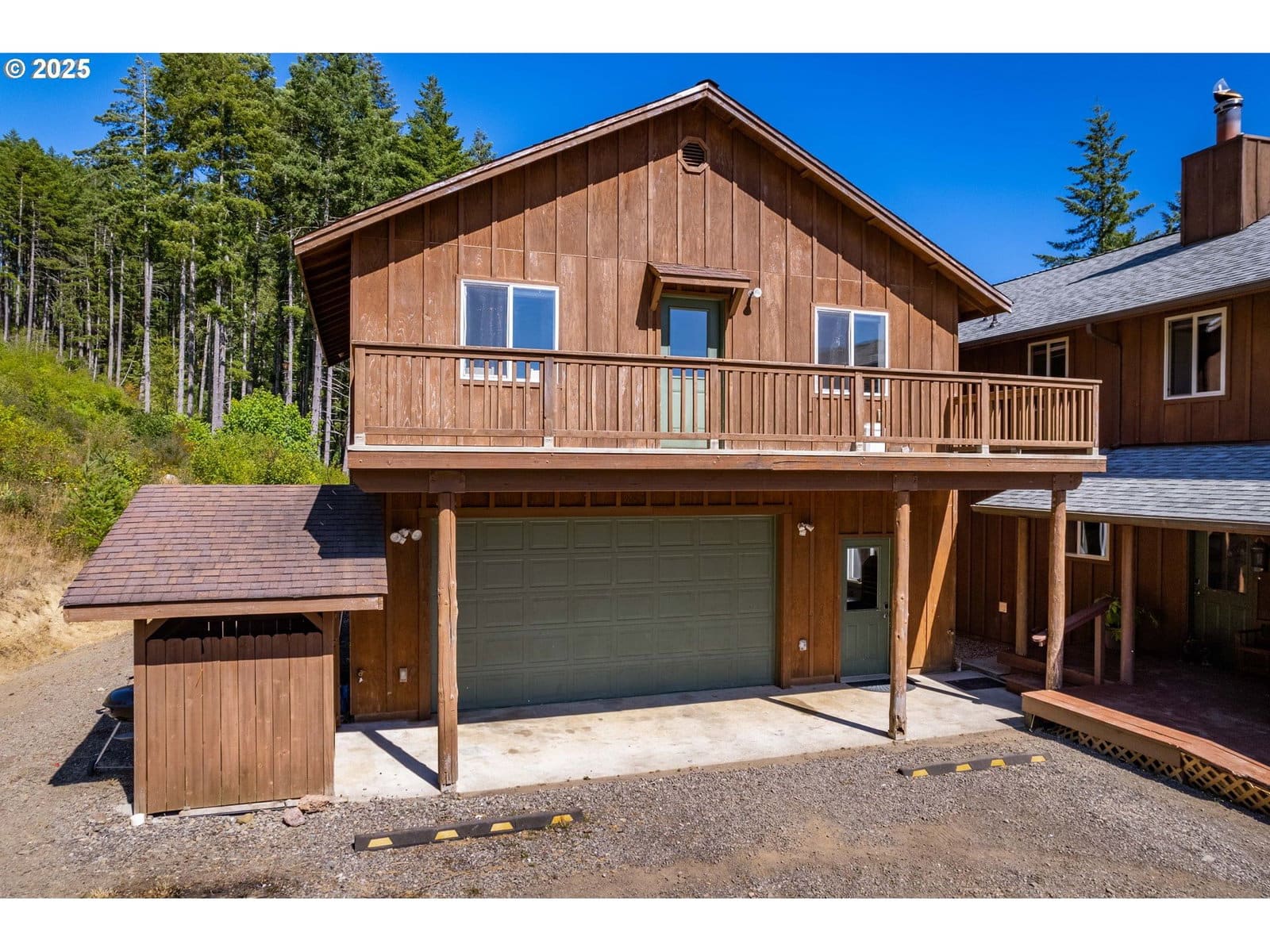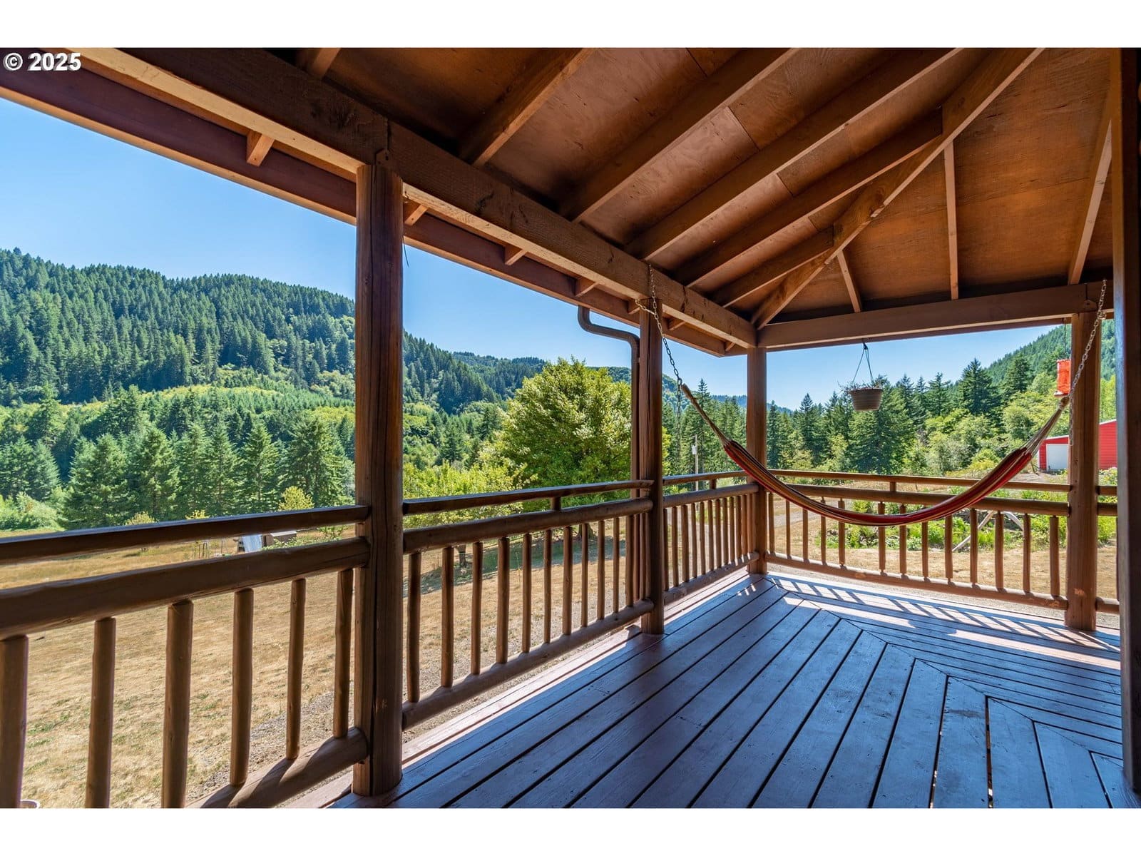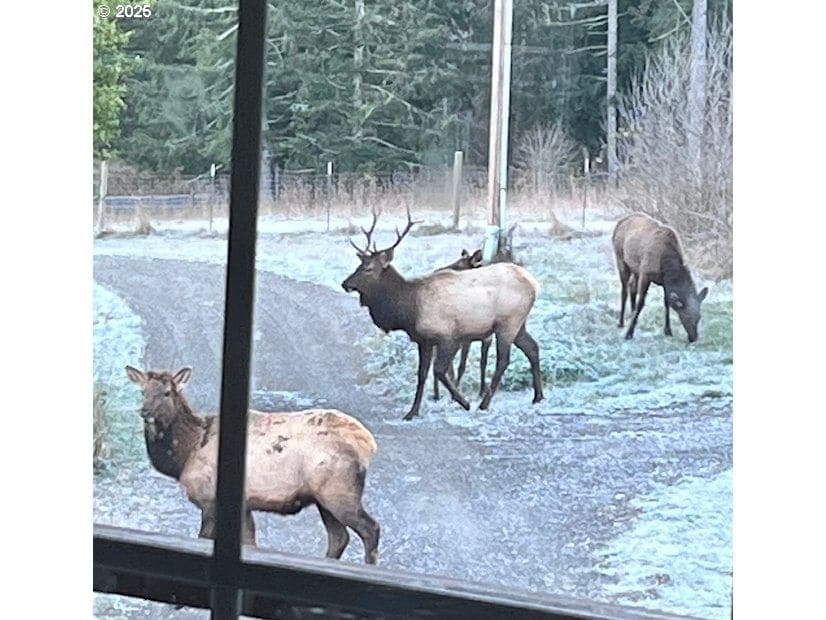 Secluded on nearly 15 acres, this 3,736 sqft lodge-style home blends rustic charm with modern convenience. The open great room features soaring ceilings, an exposed banister, and expansive windows that bring the outdoors in. A wood-burning fireplace and engineered hardwood and tile floors add warmth throughout.A highlight is the home automation system, giving you control of every light and offering three zones of high-resolution audio—a rare luxury in rural properties. Designed for multi-generational living, three of the four bedrooms include a private en-suite. The primary suite, accessed through French doors, offers a soaking tub, shower, and dual closets. Outdoor living shines with a large deck overlooking the terrain and a ¾ wraparound porch. The chef’s kitchen features stainless steel appliances, propane gas cooktop, and double ovens. The basement provides flexible space with a full bath and walkout access, while the oversized garage includes 896 sqft of additional living area, ideal for bedrooms or offices. Outside, the 42’ x 45’ barn offers concrete floors, dual roll-up doors, and two large stalls (expandable to four) with pasture access. A 12’ x 45’ lean-to adds storage, while a fenced fruit orchard and seasonal water feature enhance the property’s charm. Located just 15 minutes from Triangle Lake and 40 minutes from the ocean, this property delivers rural tranquility with modern sophistication.