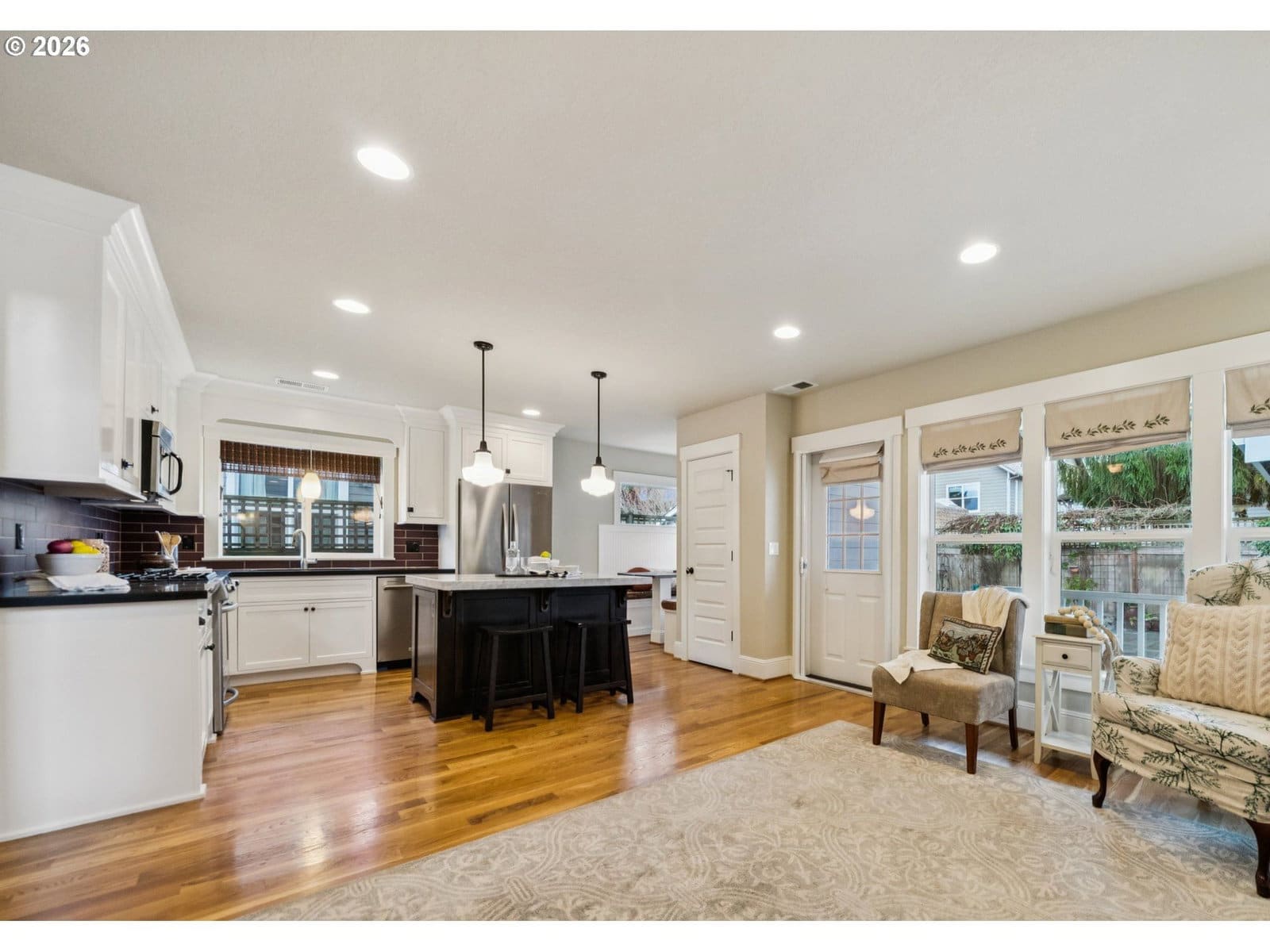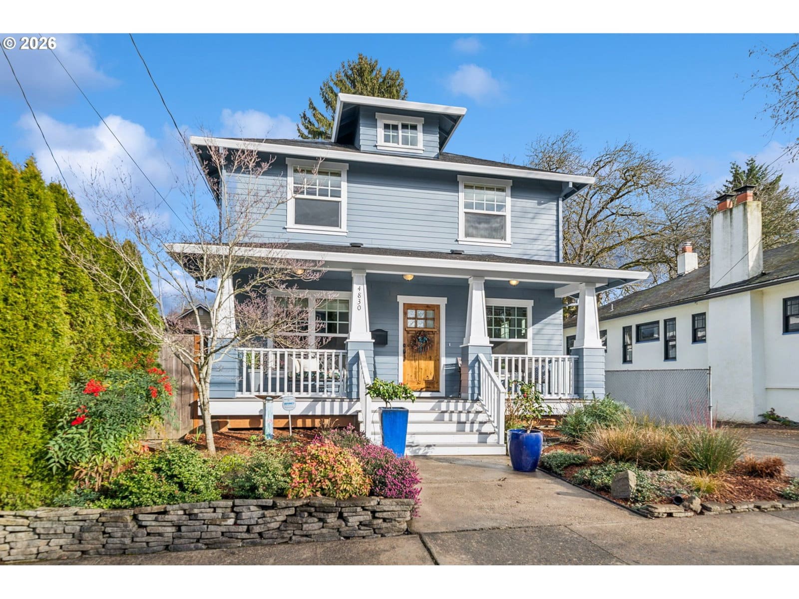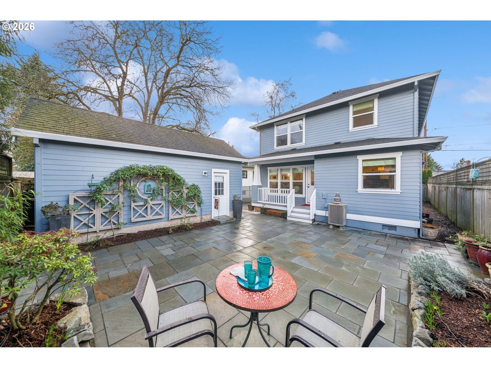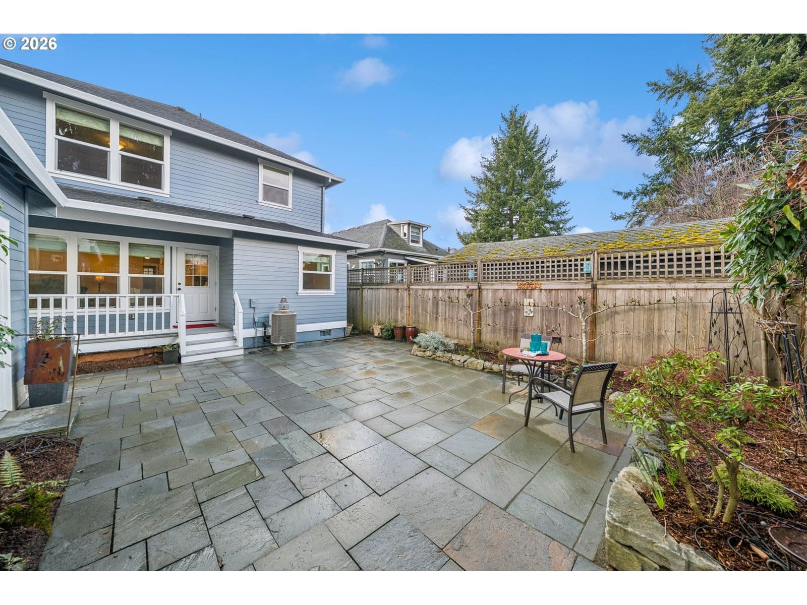Located in the vibrant Alberta Arts District, this 2013 Craftsman home with 3-bedrooms, main floor office, and 2.5-baths, blends classic charm with modern comfort and fantastic location. Step up to the large, covered front porch and into the spacious living room with hardwood floors and coffered ceilings. Pocket doors open to the formal dining room with bay window while French doors frame the main floor office providing flexible work-from-home or dedicated creative space. At the back of the home, the open kitchen and family room flood with natural light. Centered around a beautiful marble island, the kitchen features a built-in eating nook, generous kitchen pantry, and cozy family room anchored by a gas fireplace with blower. The main floor guest bath includes a utility room while under-the-stairs closet space offers additional room for storage. Upstairs, the spacious primary suite features recessed ceiling lighting, a generous walk-in closet and an ensuite bath with marble counters, tile surrounds, a soaking tub, and walk-in shower. Daily life is a breeze with two additional upper-level bedrooms, upper-level laundry, an additional full bath, plus a central vacuum system and AC throughout the home. Back downstairs, step easily from the family room onto the back porch and out to the low-maintenance and beautifully hardscaped Pennsylvania Bluestone patio. Outdoor living shines with this courtyard style space perfect for entertaining. Espalier pear trees, vines, and shrubs line the private yard and are just beginning to wake up from their winter sleep. With a long driveway and detached garage, the home offers plenty of parking and additional storage. Ideally situated in one of the most pedestrian and bicycle-friendly neighborhoods in Portland with easy access to Alberta shops & restaurants, the North Williams Avenue bike corridor, convenient access to I-5 and downtown Portland, this home offers excellent connectivity for commuting, recreation, and everyday amenities. [Home Energy Score = 6. HES Report at https://rpt.greenbuildingregistry.com/hes/OR10243760]