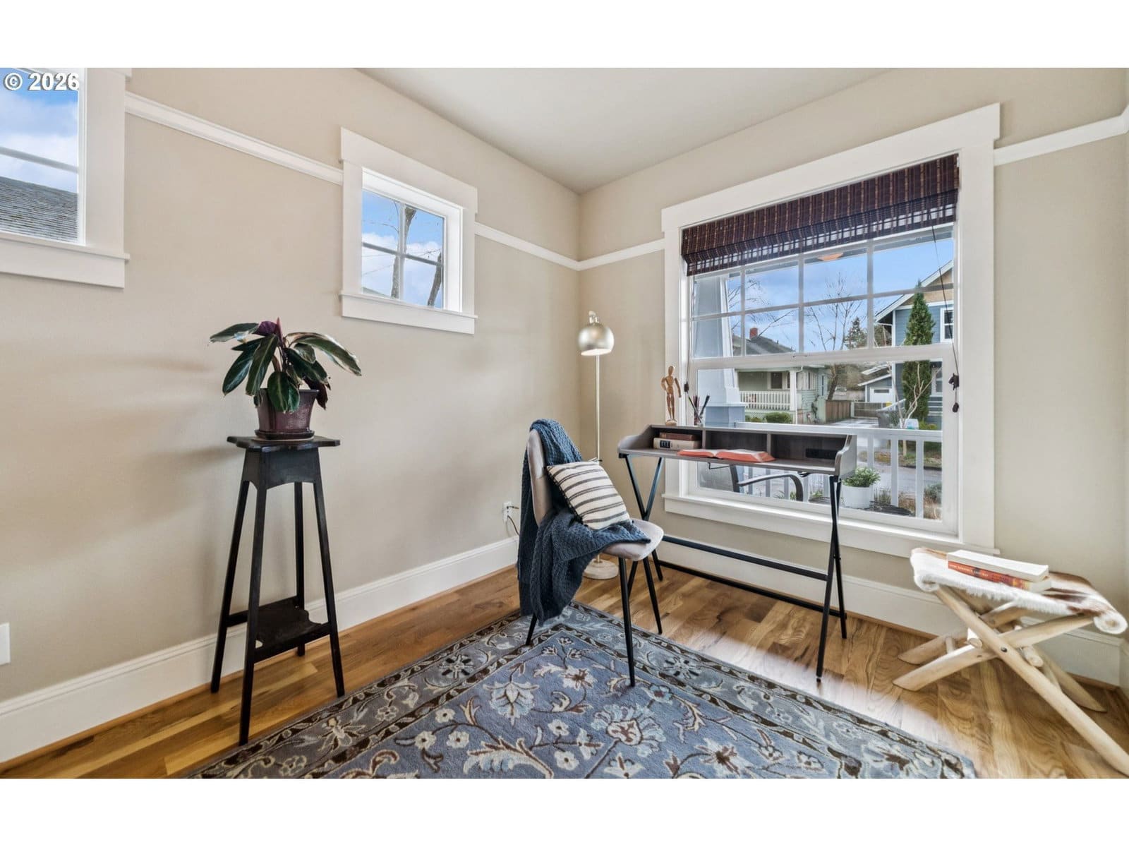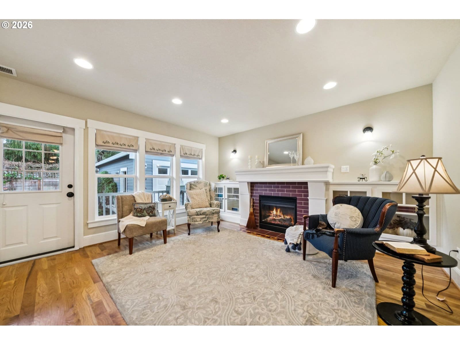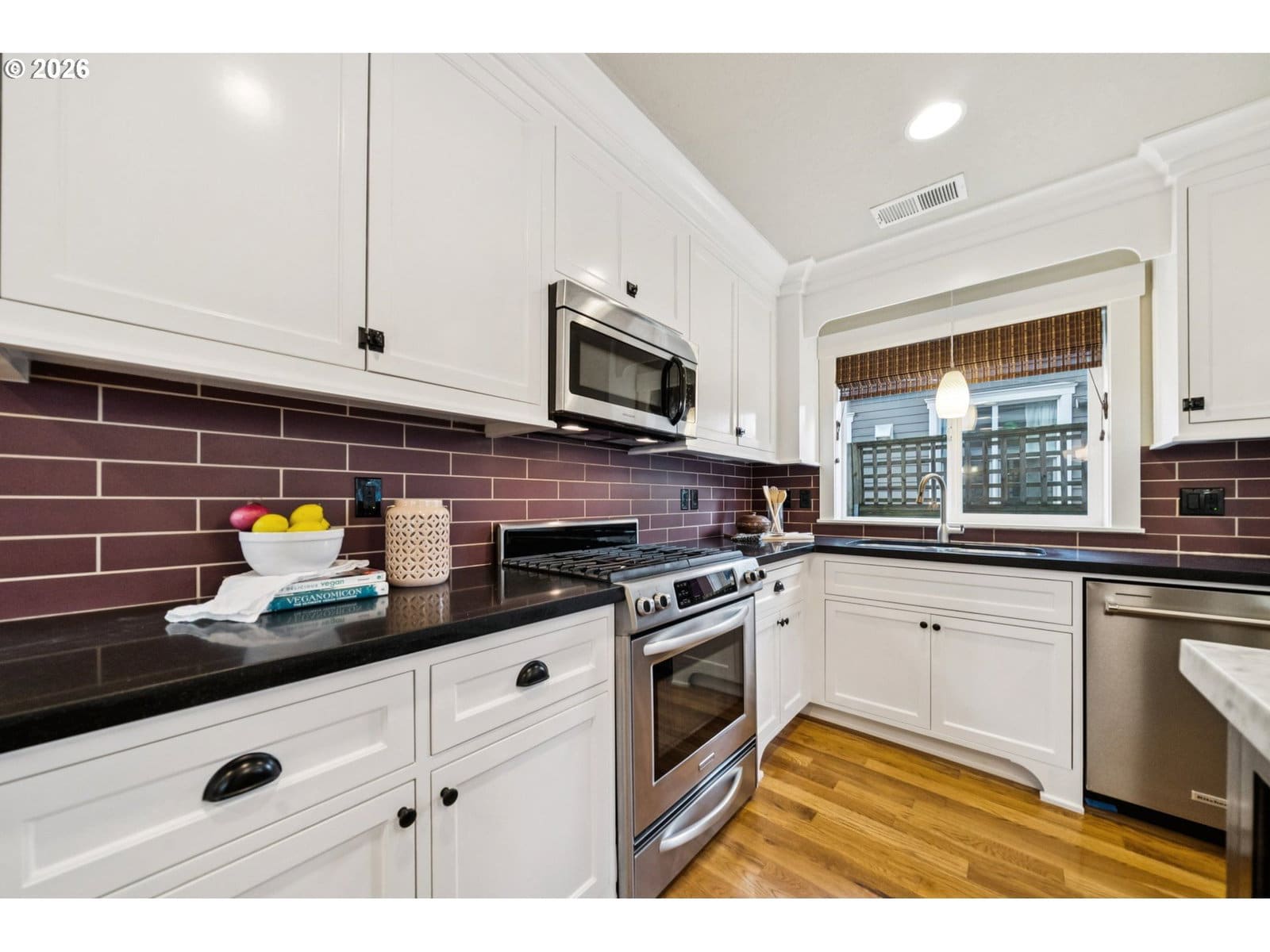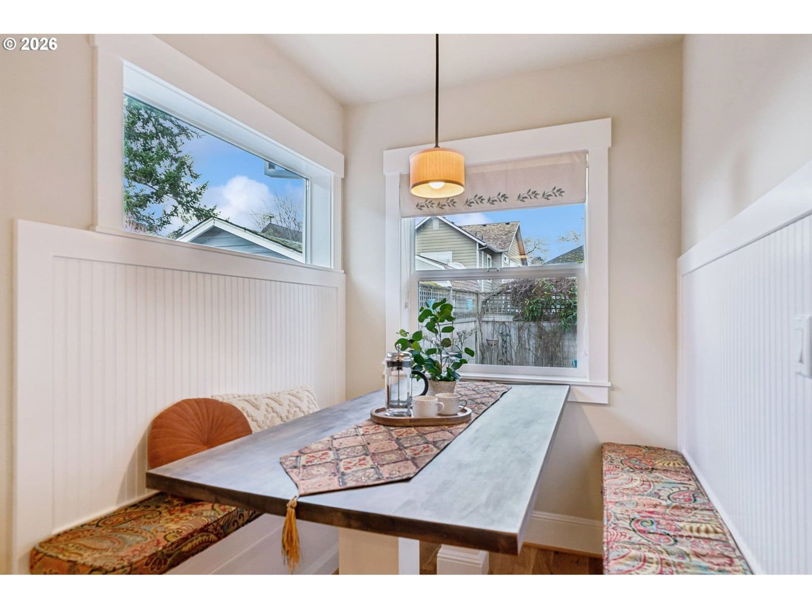 Located in the vibrant Alberta Arts District, this 2013 Craftsman home with 3-bedrooms, main floor office, and 2.5-baths, blends classic charm with modern comfort and fantastic location. Step up to the large, covered front porch and into the spacious living room with hardwood floors and coffered ceilings. Pocket doors open to the formal dining room with bay window while French doors frame the main floor office providing flexible work-from-home or dedicated creative space. At the back of the home, the open kitchen and family room flood with natural light. Centered around a beautiful marble island, the kitchen features a built-in eating nook, generous kitchen pantry, and cozy family room anchored by a gas fireplace with blower. The main floor guest bath includes a utility room while under-the-stairs closet space offers additional room for storage. Upstairs, the spacious primary suite features recessed ceiling lighting, a generous walk-in closet and an ensuite bath with marble counters, tile surrounds, a soaking tub, and walk-in shower. Daily life is a breeze with two additional upper-level bedrooms, upper-level laundry, an additional full bath, plus a central vacuum system and AC throughout the home. Back downstairs, step easily from the family room onto the back porch and out to the low-maintenance and beautifully hardscaped Pennsylvania Bluestone patio. Outdoor living shines with this courtyard style space perfect for entertaining. Espalier pear trees, vines, and shrubs line the private yard and are just beginning to wake up from their winter sleep. With a long driveway and detached garage, the home offers plenty of parking and additional storage. Ideally situated in one of the most pedestrian and bicycle-friendly neighborhoods in Portland with easy access to Alberta shops & restaurants, the North Williams Avenue bike corridor, convenient access to I-5 and downtown Portland, this home offers excellent connectivity for commuting, recreation, and everyday amenities. [Home Energy Score = 6. HES Report at https://rpt.greenbuildingregistry.com/hes/OR10243760]