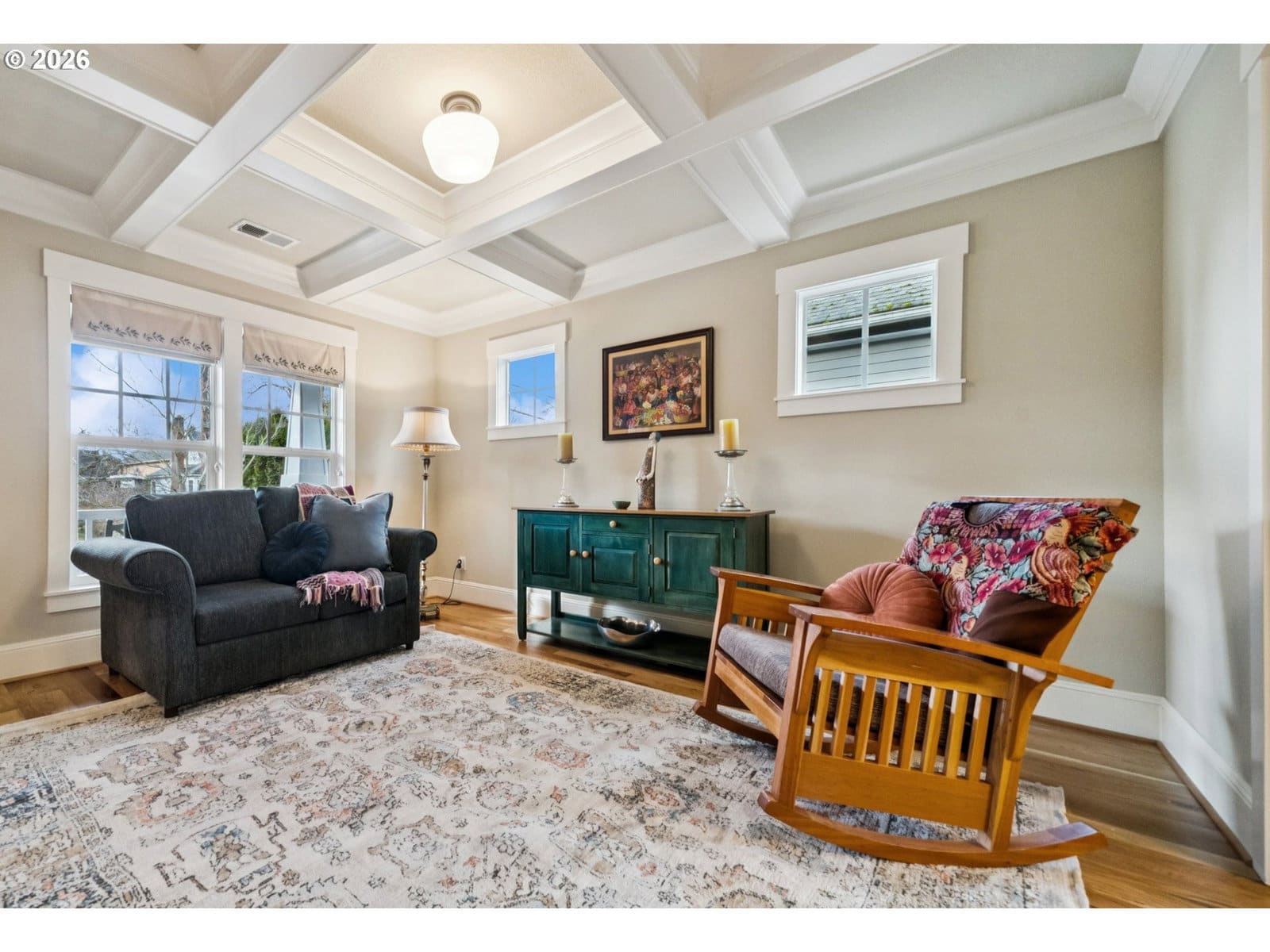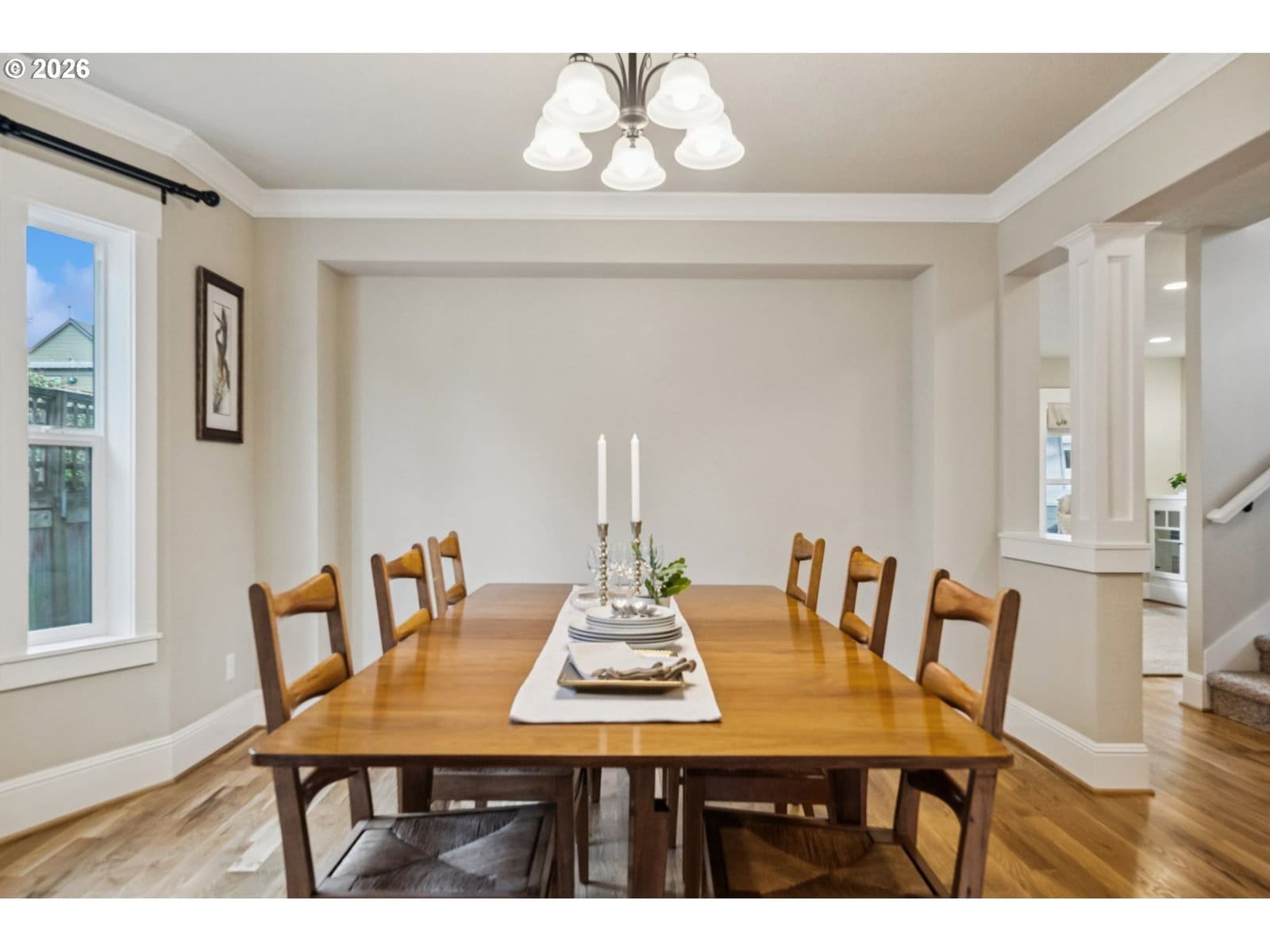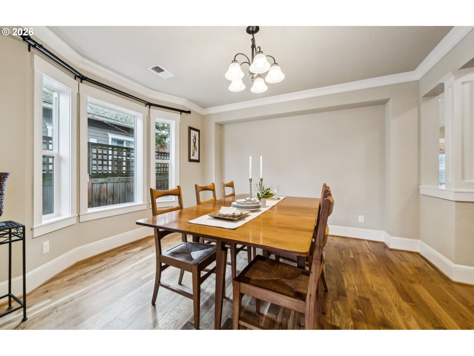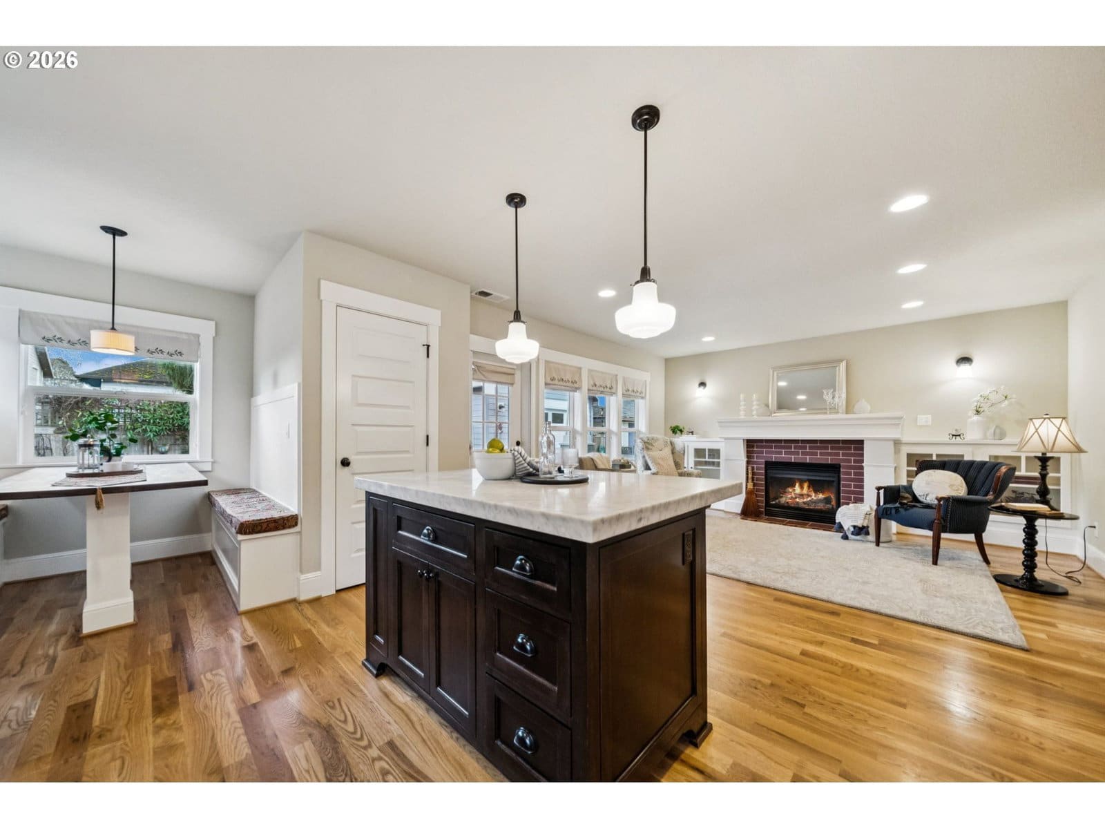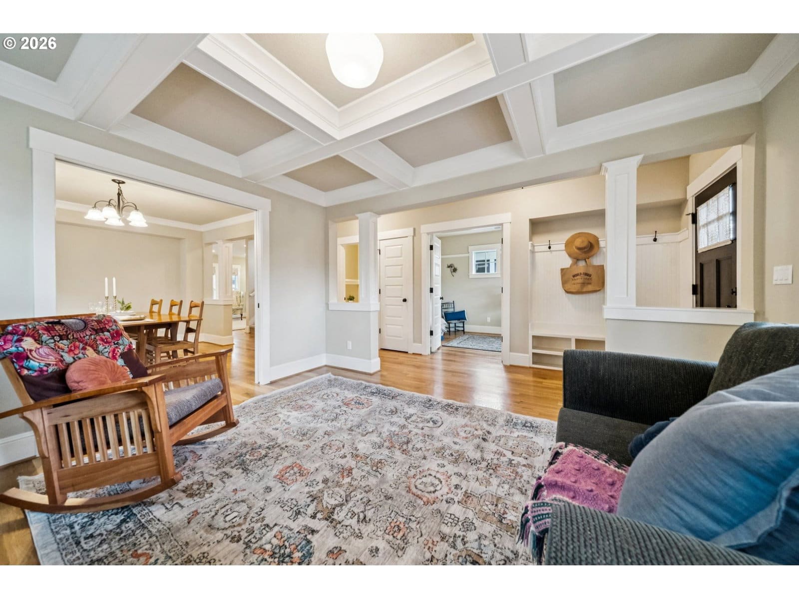 Located in the vibrant Alberta Arts District, this 2013 Craftsman home with 3-bedrooms, main floor office, and 2.5-baths, blends classic charm with modern comfort and fantastic location. Step up to the large, covered front porch and into the spacious living room with hardwood floors and coffered ceilings. Pocket doors open to the formal dining room with bay window while French doors frame the main floor office providing flexible work-from-home or dedicated creative space. At the back of the home, the open kitchen and family room flood with natural light. Centered around a beautiful marble island, the kitchen features a built-in eating nook, generous kitchen pantry, and cozy family room anchored by a gas fireplace with blower. The main floor guest bath includes a utility room while under-the-stairs closet space offers additional room for storage. Upstairs, the spacious primary suite features recessed ceiling lighting, a generous walk-in closet and an ensuite bath with marble counters, tile surrounds, a soaking tub, and walk-in shower. Daily life is a breeze with two additional upper-level bedrooms, upper-level laundry, an additional full bath, plus a central vacuum system and AC throughout the home. Back downstairs, step easily from the family room onto the back porch and out to the low-maintenance and beautifully hardscaped Pennsylvania Bluestone patio. Outdoor living shines with this courtyard style space perfect for entertaining. Espalier pear trees, vines, and shrubs line the private yard and are just beginning to wake up from their winter sleep. With a long driveway and detached garage, the home offers plenty of parking and additional storage. Ideally situated in one of the most pedestrian and bicycle-friendly neighborhoods in Portland with easy access to Alberta shops & restaurants, the North Williams Avenue bike corridor, convenient access to I-5 and downtown Portland, this home offers excellent connectivity for commuting, recreation, and everyday amenities. [Home Energy Score = 6. HES Report at https://rpt.greenbuildingregistry.com/hes/OR10243760]