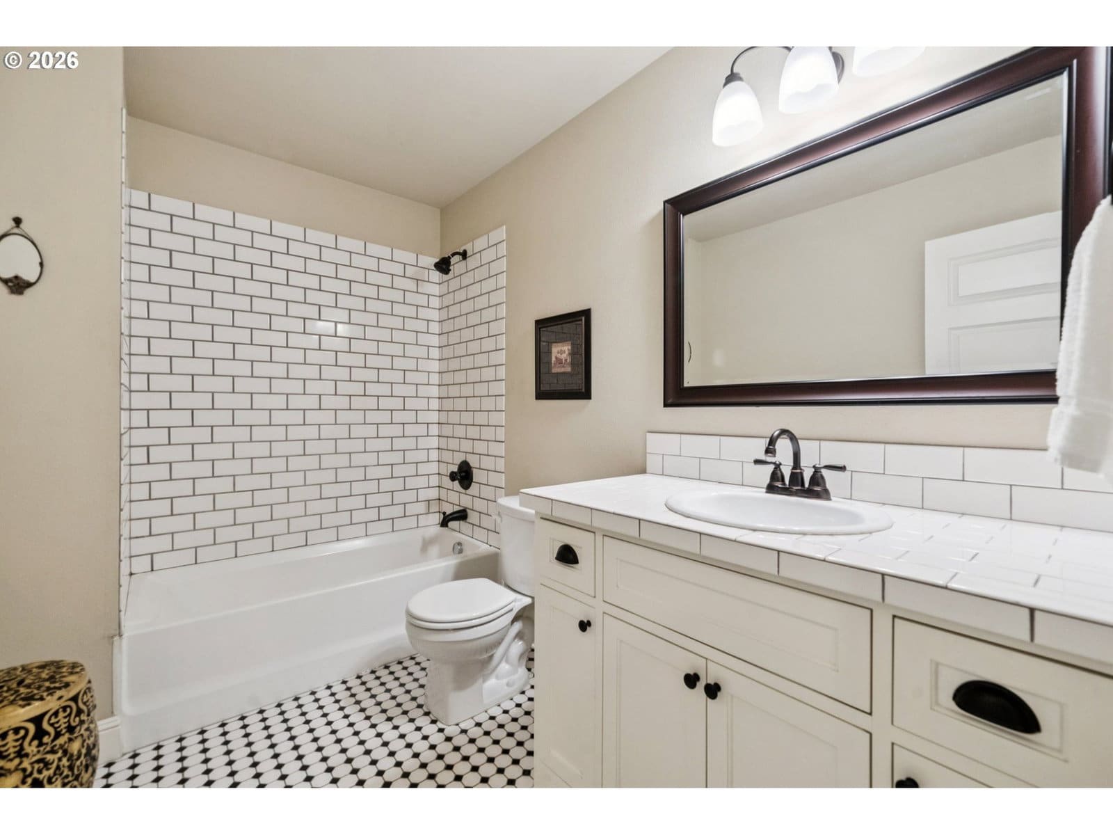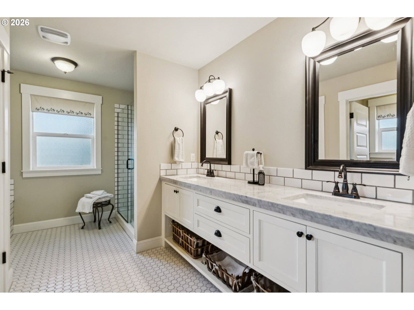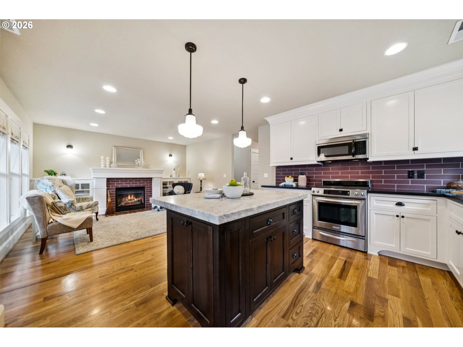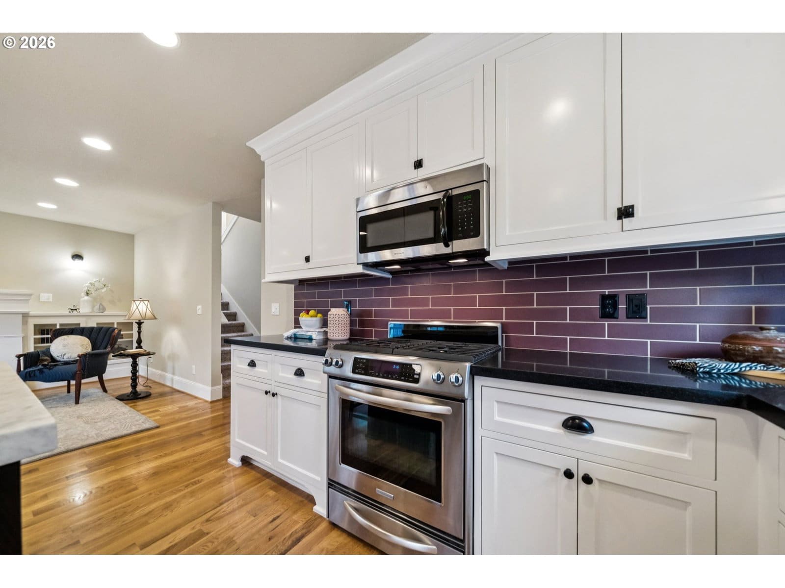 Located in the vibrant Alberta Arts District, this 2013 Craftsman home with 3-bedrooms, main floor office, and 2.5-baths, blends classic charm with modern comfort and fantastic location. Step up to the large, covered front porch and into the spacious living room with hardwood floors and coffered ceilings. Pocket doors open to the formal dining room with bay window while French doors frame the main floor office providing flexible work-from-home or dedicated creative space. At the back of the home, the open kitchen and family room flood with natural light. Centered around a beautiful marble island, the kitchen features a built-in eating nook, generous kitchen pantry, and cozy family room anchored by a gas fireplace with blower. The main floor guest bath includes a utility room while under-the-stairs closet space offers additional room for storage. Upstairs, the spacious primary suite features recessed ceiling lighting, a generous walk-in closet and an ensuite bath with marble counters, tile surrounds, a soaking tub, and walk-in shower. Daily life is a breeze with two additional upper-level bedrooms, upper-level laundry, an additional full bath, plus a central vacuum system and AC throughout the home. Back downstairs, step easily from the family room onto the back porch and out to the low-maintenance and beautifully hardscaped Pennsylvania Bluestone patio. Outdoor living shines with this courtyard style space perfect for entertaining. Espalier pear trees, vines, and shrubs line the private yard and are just beginning to wake up from their winter sleep. With a long driveway and detached garage, the home offers plenty of parking and additional storage. Ideally situated in one of the most pedestrian and bicycle-friendly neighborhoods in Portland with easy access to Alberta shops & restaurants, the North Williams Avenue bike corridor, convenient access to I-5 and downtown Portland, this home offers excellent connectivity for commuting, recreation, and everyday amenities. [Home Energy Score = 6. HES Report at https://rpt.greenbuildingregistry.com/hes/OR10243760]