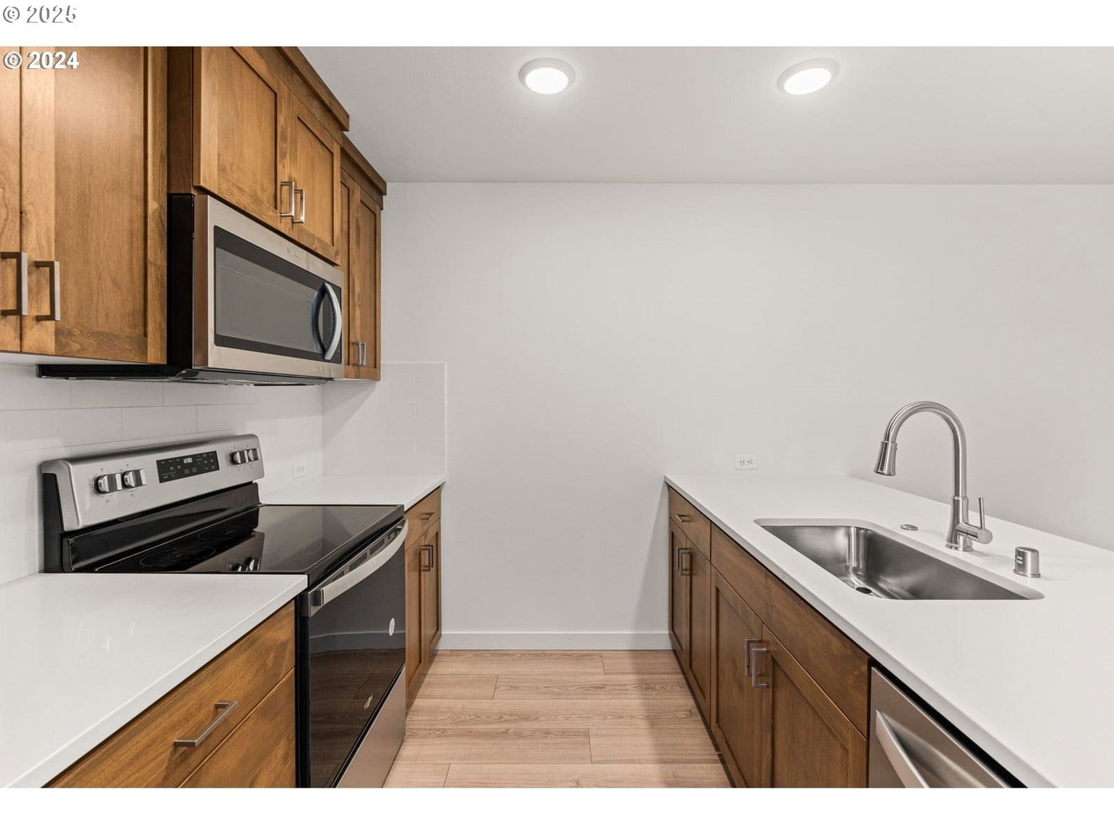 Move in Ready! Backing up to Walnut Grove Neighborhood Park, this 3 bedroom, 2.5 bathroom home offers spacious main floor living areas, including laminate flooring, quartz kitchen countertops and stainless steel appliances. Two story home, 1,391 sq ft, covered patio, and fully fenced backyard! The primary suite features a large walk-in closet, double sinks, and modern selections. Ready for move in now!