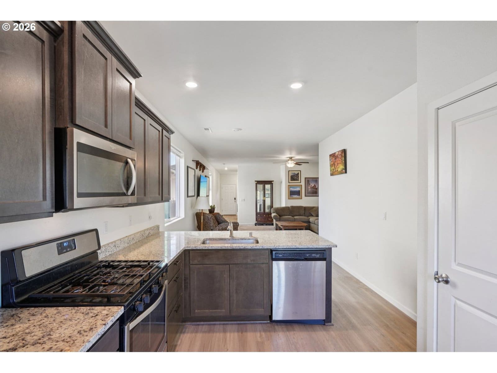 Well-maintained single-level 3BD/2BA ranch in a peaceful La Center setting with an open, functional layout. Kitchen features granite counters, stainless appliances, and eat bar. Primary suite with walk-in closet and private bath. Energy-efficient with heat pump and forced air. Fully fenced backyard with patio backing to greenspace—no rear neighbors and serene wetland views. Close to river access, recreation, and an easy commute to Vancouver!