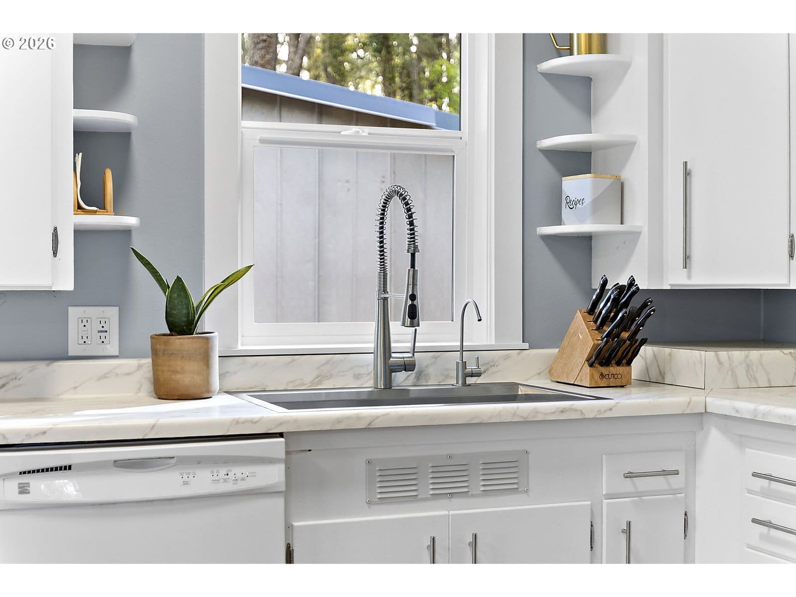 Updated cottage in peaceful setting surrounded by nature just outside city limits. Open floorplan, studio-style interior with beautiful finishes. New roof and gutters in 2025, exterior paint 2026. Other features include expansive parking, underground cellar, unfinished attic, low-voltage landscape lighting. This is move-in and comfortable living ready!
