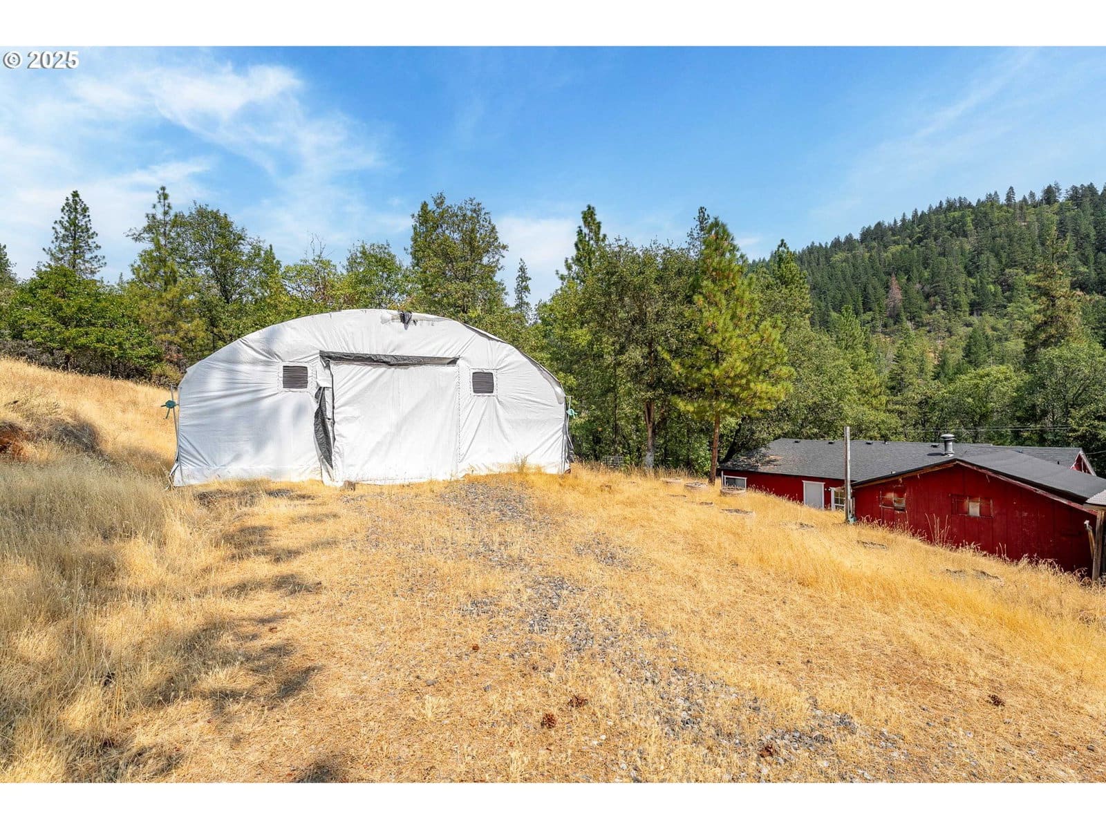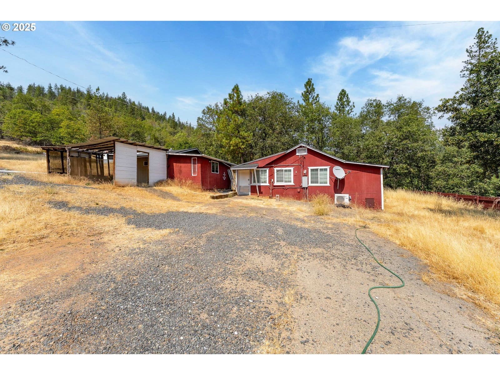 Fantastic opportunity on a beautiful Rogue River property. HUGE 2,200SF barn/shop with dedicated electric and water. Home is comfortable with an updated kitchen, new roof, heat and air and very private. Fully fenced with locking entry gate at the driveway. Conveniently located just a few minutes from the i5 freeway and downtown Rogue River. Enjoy quiet, serene evenings watching the wildlife stroll by. Separate garage/feed stall and small green house are in good shape! Separate electrical meters for barn and home. Excellent location for home business.