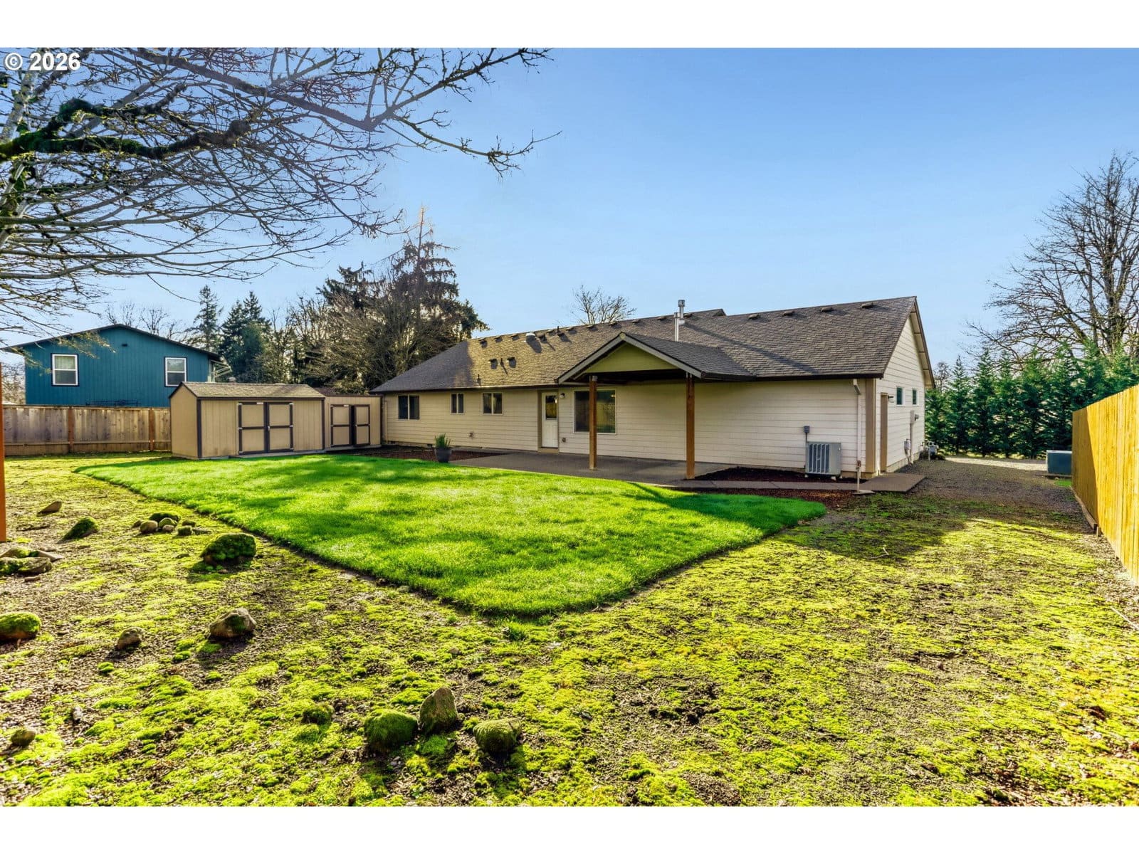 Immaculate Single-Level Home on a 1/4 Acre in Oregon City~Built in 2013, this beautifully maintained 3-bedroom, 2-bath home sits on a ¼-acre lot and offers the perfect blend of modern construction, functional space, and pride of ownership. Designed with 2×6 construction, the home features an open floor plan, vaulted ceilings, and abundant natural light throughout.~The kitchen and living areas flow seamlessly—ideal for everyday living and entertaining—while the private primary suite provides comfort and separation from the secondary bedrooms. The home has never had pets, reflecting its exceptional condition.~Outdoor living shines with a covered patio and expansive yard, plus RV parking, two storage sheds, and a spacious 22' × 29' garage—perfect for vehicles, hobbies, workshop or additional storage.Additional highlights include: Heat Pump, central A/C, 1,704 sq ft of living space, Quiet rural feel with convenient access to Oregon City amenities, Ample space for toys, tools, and future possibilities. This beautifully landscaped, move-in-ready property offers space, quality construction, and versatility.