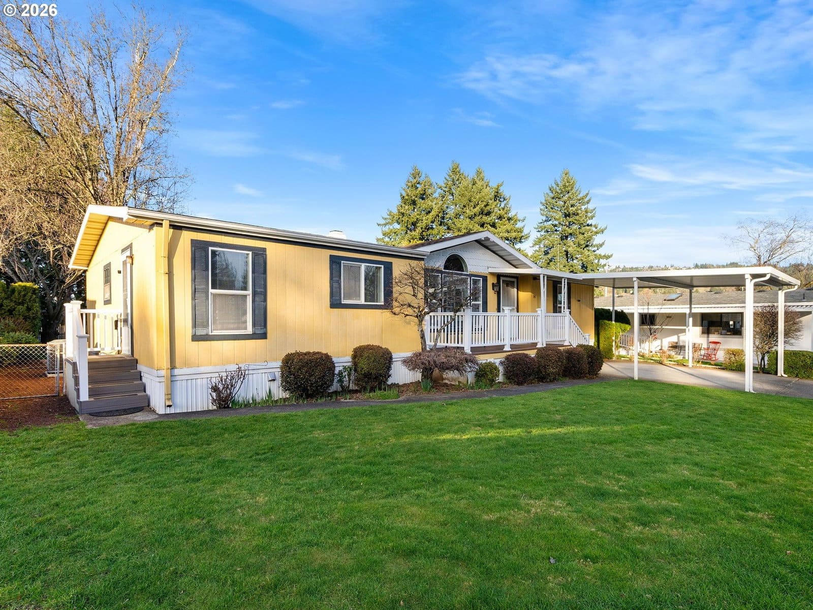 Offer Received! Offers due by 2/24 at 3pm. Welcome home to this beautifully maintained manufactured home, perfectly positioned on the best lot in the King Road community—facing the road for added privacy, open views, and easy access. Located in a welcoming 55+ neighborhood, this property offers comfort, security, and is also near public transportation, shopping and dining!Major improvements provide peace of mind, including a new furnace and A/C (2024), water heater (2025), updated lighting (2025), and a security system (2024) with added security lights (2025). The inviting exterior features moonshape windows (2025), Trex steps and new railings on both the front and side porches (2025), and a carport/front porch cover installed in 2021—perfect for enjoying morning coffee or relaxing evenings. The roof (2014) and exterior paint (2015) reflect the consistent care this home has received. This move-in-ready gem combines modern updates with pride of ownership in a friendly, quiet, and established community, tucked away from the hustle and bustle but near all amenities you could need! Ask agent for full copy of updates list and items that convey list!