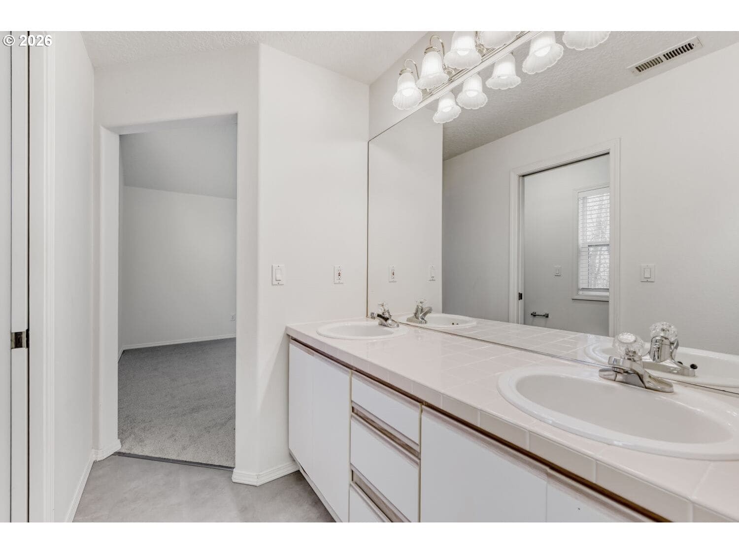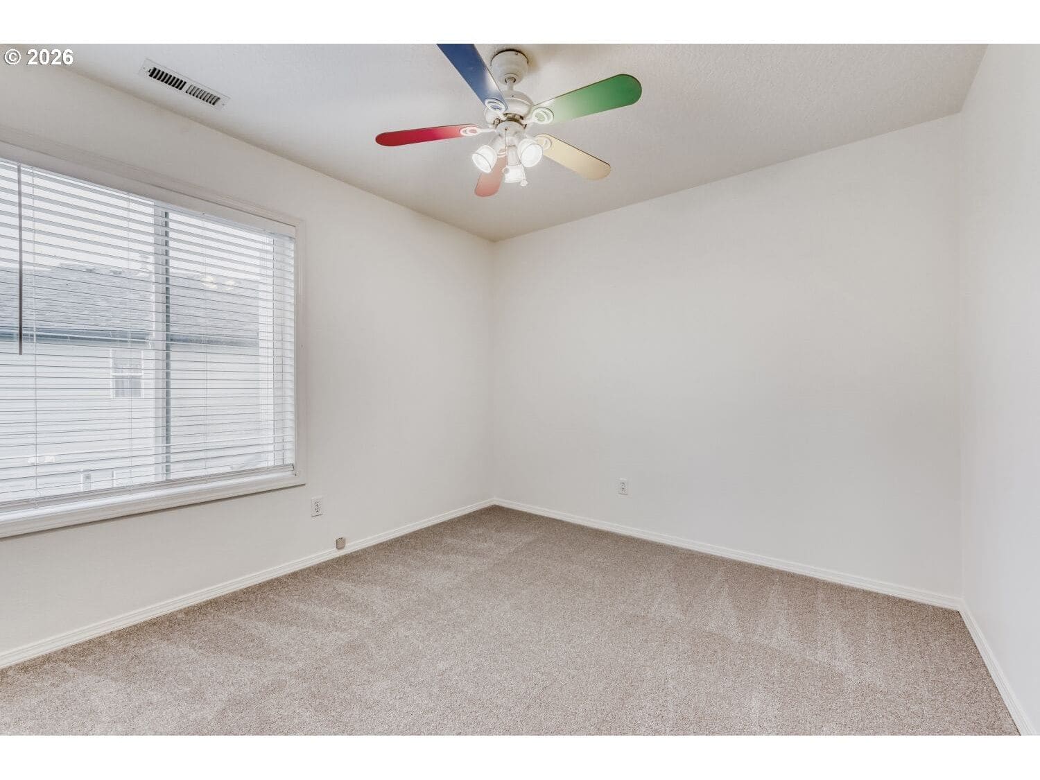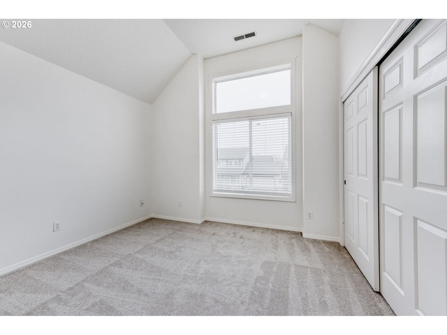 Turn-key Rock Creek traditional backing to greenspace! Situated on a large, private lot on a quiet street, this home has been meticulously maintained and fully updated with a brand-new roof, recent fiber cement siding, all-new interior paint, new carpet, and more. A two-story entry introduces a spacious living room with laminate flooring and soaring ceilings and numerous windows for excellent natural light. A freshly updated, open-concept kitchen features just-painted cabinetry, solid surface countertops, brand-new stainless steel appliances, and pantry. The upper level boasts three spacious bedrooms, including a deluxe primary suite with vaulted ceilings, french doors, and attached bathroom with new LVT flooring, double sinks, walk-in shower, and oversized walk-in closet. High-quality construction with large room sizes, high ceilings, white doors and millwork, abundant storage space, and more. Fully fenced backyard with covered patio, mature landscaping, and outstanding privacy. Sought-after Rock Creek location, close to THPRD trails and parks, Rock Creek Country Club, and great schools!