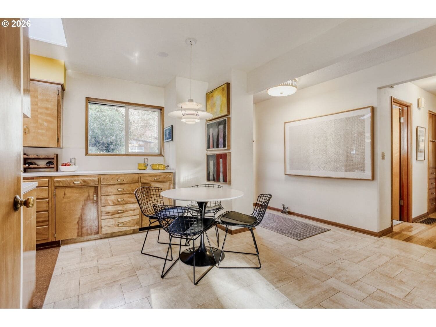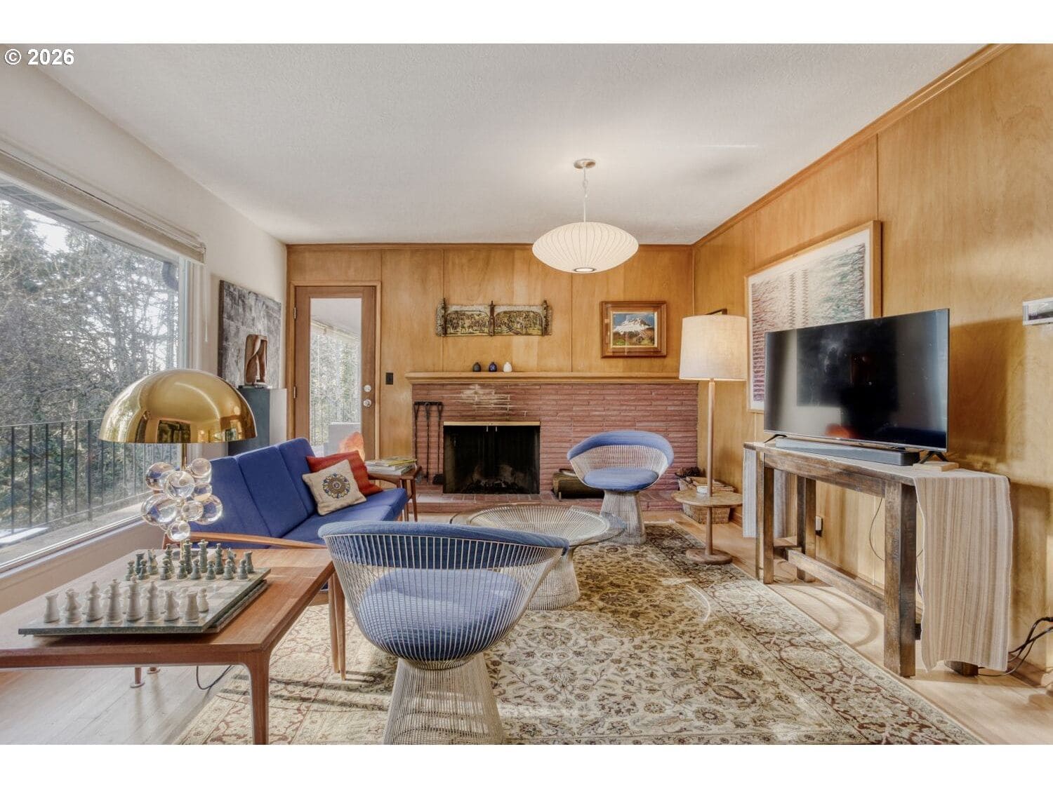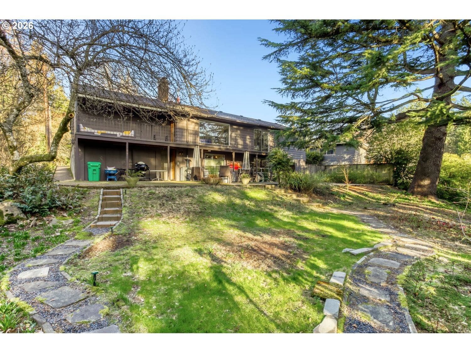 A must-see opportunity in coveted Hillsdale. This 3-bedroom, 2-bath mid-century daylight ranch offers a rare sense of privacy and calm — your own sanctuary in the city. As only the second owner in 70 years, this home has been thoughtfully preserved and tastefully updated, blending original character with modern comfort. Highlights include George Nelson and Louis Poulsen lighting, oak hardwood and travertine floors, Roman brick fireplaces (both with rebuilt fireboxes), an original vintage wet bar, and a well-appointed kitchen featuring quartz countertops, Wolf induction range, and Asko dishwasher. Major system updates were completed in 2019, including the roof, sewer line, and plumbing. Additional intentional improvements include an HVAC system with a Trane heat pump and Thermo-Pride biodiesel furnace for colder days, double-paned aluminum-framed windows that maintain the home’s original aesthetic, and foam-injected insulation throughout. Surrounded by Douglas-Fir and Cedars, the property borders a lush greenbelt teeming with wildlife, and will qualify for Platinum status with the Certified Backyard Habitat program. The outdoor space is truly special, with a spacious patio ideal for entertaining or relaxing, plus a truly unique “secret” deck built around trees. A rare blend of character, comfort, and quiet in desirable SW Portland, this is an extraordinary place to call home. Seller is a licensed real estate broker in Oregon. [Home Energy Score = 3. HES Report at https://rpt.greenbuildingregistry.com/hes/OR10038278]