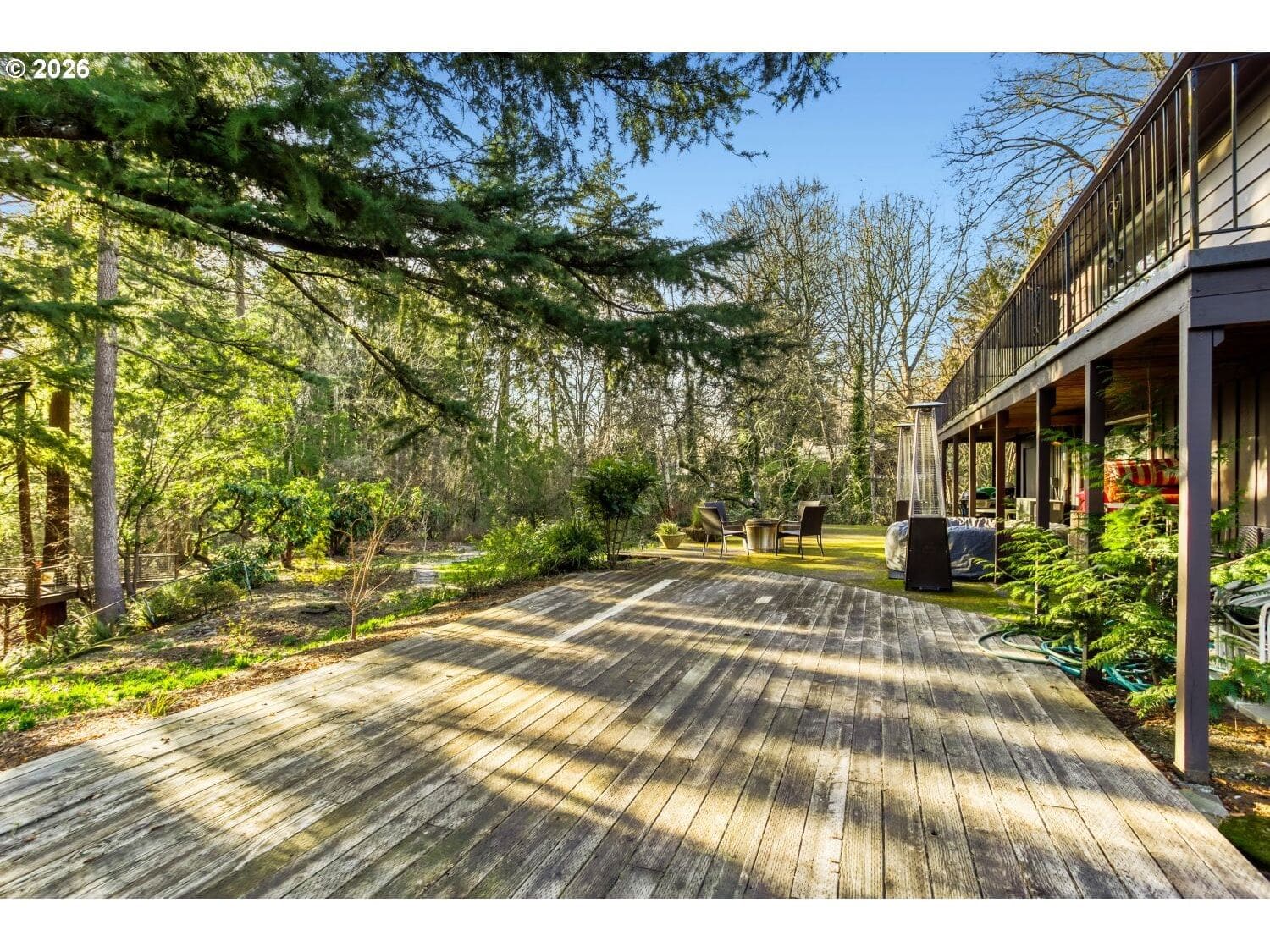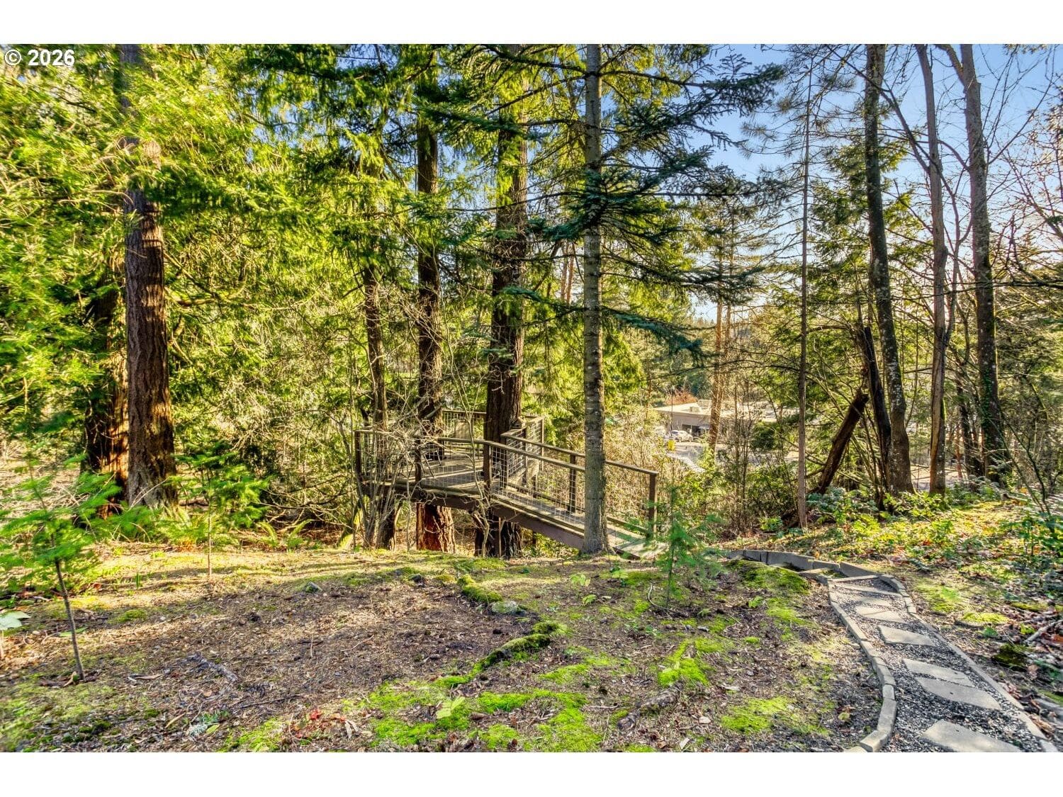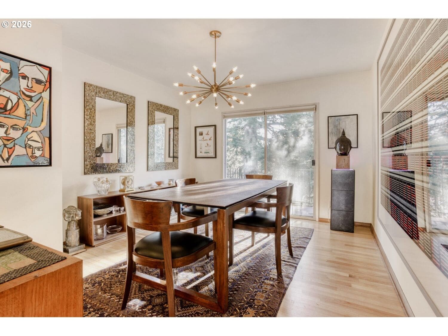 A must-see opportunity in coveted Hillsdale. This 3-bedroom, 2-bath mid-century daylight ranch offers a rare sense of privacy and calm — your own sanctuary in the city. As only the second owner in 70 years, this home has been thoughtfully preserved and tastefully updated, blending original character with modern comfort. Highlights include George Nelson and Louis Poulsen lighting, oak hardwood and travertine floors, Roman brick fireplaces (both with rebuilt fireboxes), an original vintage wet bar, and a well-appointed kitchen featuring quartz countertops, Wolf induction range, and Asko dishwasher. Major system updates were completed in 2019, including the roof, sewer line, and plumbing. Additional intentional improvements include an HVAC system with a Trane heat pump and Thermo-Pride biodiesel furnace for colder days, double-paned aluminum-framed windows that maintain the home’s original aesthetic, and foam-injected insulation throughout. Surrounded by Douglas-Fir and Cedars, the property borders a lush greenbelt teeming with wildlife, and will qualify for Platinum status with the Certified Backyard Habitat program. The outdoor space is truly special, with a spacious patio ideal for entertaining or relaxing, plus a truly unique “secret” deck built around trees. A rare blend of character, comfort, and quiet in desirable SW Portland, this is an extraordinary place to call home. Seller is a licensed real estate broker in Oregon. [Home Energy Score = 3. HES Report at https://rpt.greenbuildingregistry.com/hes/OR10038278]