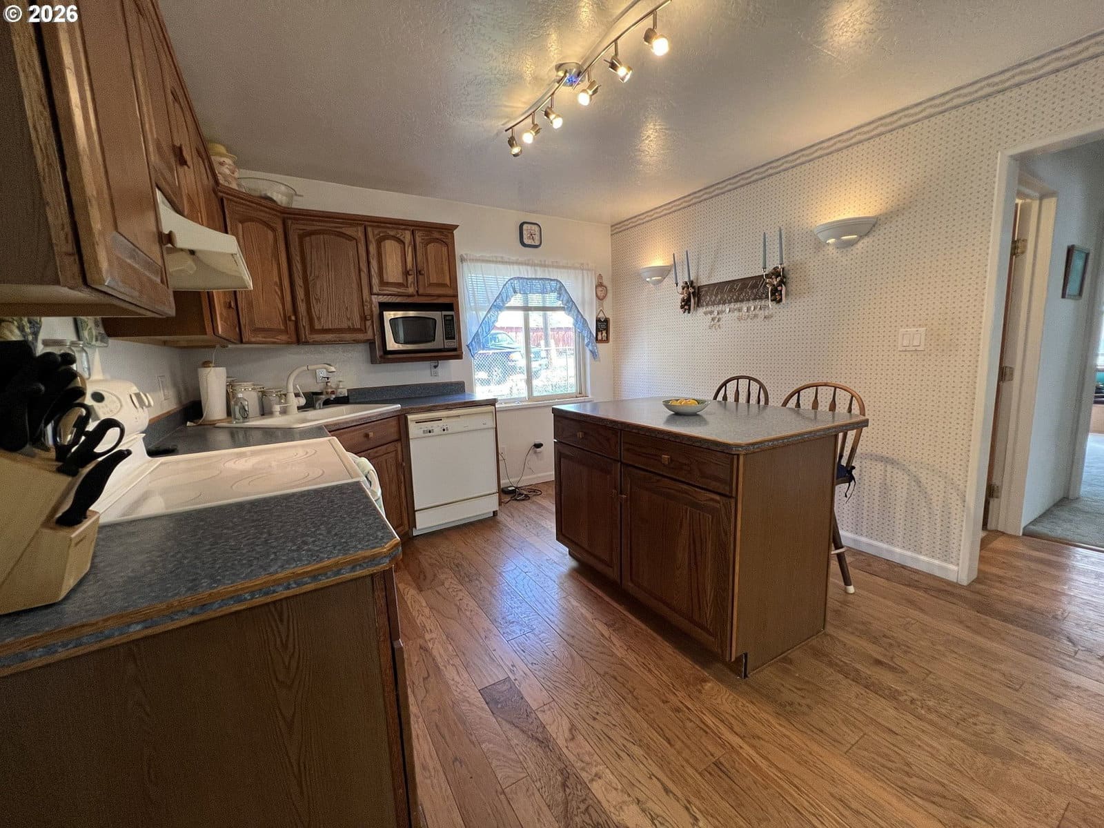 Two homes for the price of one!!! This recently remodeled home combines small-town living with modern updates in an unbeatable location. Enjoy living in a quiet community where the school, park, and local amenities are just steps away. Situated on two tax lots totaling .40 acres, the fenced property offers ample room for RV parking, pets, or a growing family. Step inside to discover a bright, refreshed interior with one bedroom and one bath on the main level, and a spacious primary suite upstairs with a large closet and a private bathroom featuring both a jetted bathtub and a walk-in shower. The fully remodeled kitchen, custom cabinets, breakfast island, and dining area are perfect for entertaining or just a quiet dinner at home. Recent upgrades have made this home truly move-in ready: new siding and metal roof, vinyl windows, and new flooring throughout—electric base heaters and an oil-burning stove that adds warmth to the chilly winters. In addition to the newly remodeled residence, the property includes a vintage 1925 two-story, 4-bedroom, 1-bath home built by the Hines Lumber Company, offering 1,406 sq ft of living space. Features include a Lopi fireplace insert, original hardwood floors, and oil heat. Ideal for use as a rental or extended family living quarters. Two additional outbuildings can be utilized as standard one-car garages with ample storage. One has a built-in workshop with its own standalone stove for heat. The small community of Seneca, located within the Blue Mountains about 23 miles south of Canyon City, is on the edge of the Malheur National Forest, offering residents unlimited year-round recreational opportunities.
