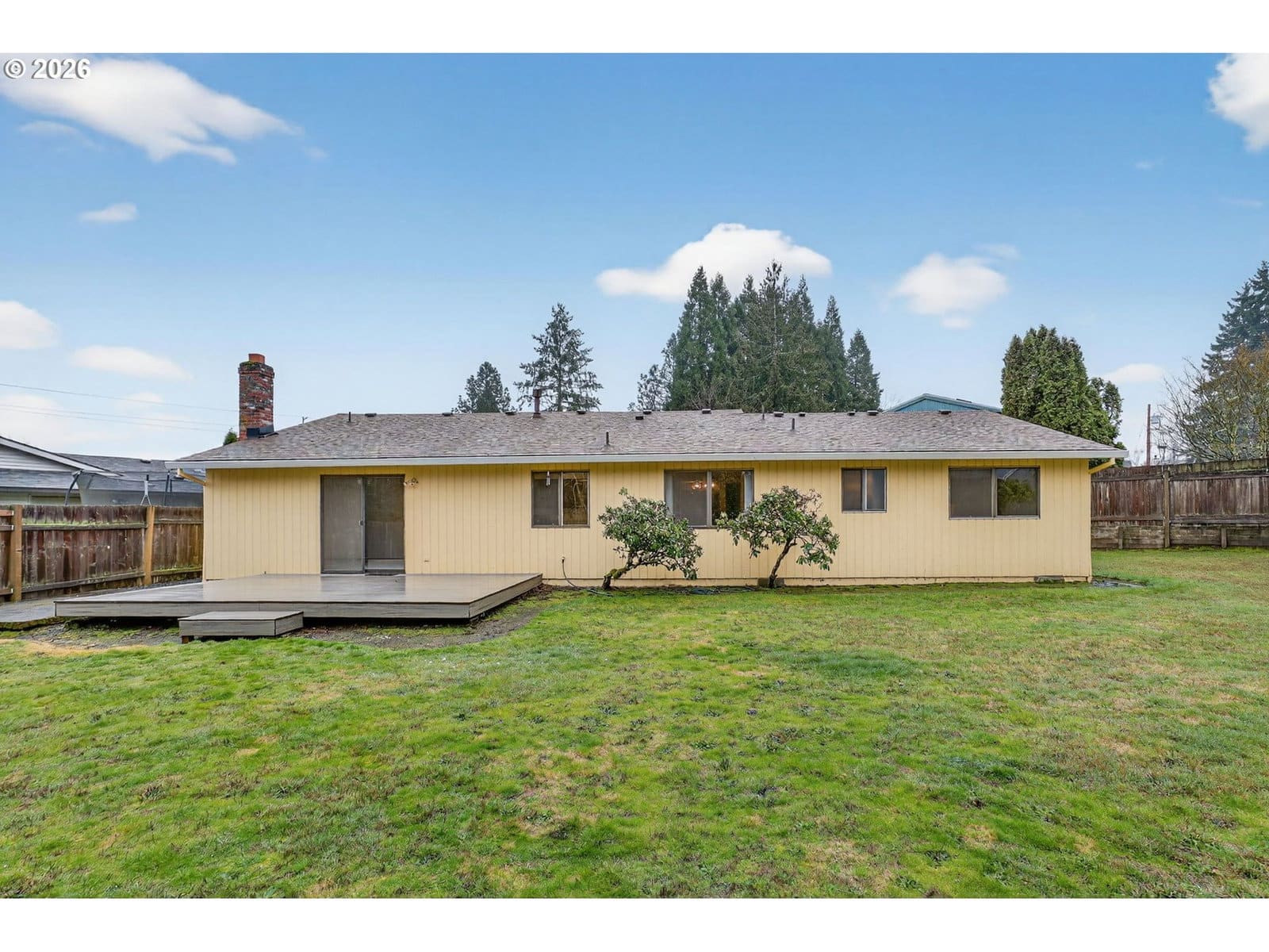 Tucked away at the back of a cul-de-sac, this inviting one-level ranch home sits on a generous quarter-acre lot with room to live, grow and gather. The large fenced backyard is truly special — featuring a brand new Trex deck, thriving pear tree, and endless potential. Whether you’re dreaming of summer BBQs with friends, a thriving vegetable garden, play space for pets, or even exploring the possibility of an ADU, this outdoor setting delivers flexibility and privacy. Inside, you’ll find a solid home ready to shine with your personal updates and style. The front living room flows seamlessly into the formal dining area and connects to the kitchen, creating an easy, functional layout. The kitchen features brand new LVP flooring, and all appliances are included. Just off the kitchen, a generous family room offers brand new carpet and a cozy gas fireplace — perfect for relaxing evenings in as well as a slider door out to that amazing deck & backyard! This home offers 3 bedrooms and 2 full bathrooms, including an updated primary bath with granite counters and a striking hammered copper sink. The updated hall bath also has a granite counter along with a tub & shower. Major improvements include a new roof, new water heater (2025), updated bathrooms, central gas heat and heat pump cooling for year-round comfort. The attached two-car garage with opener houses the included full-size washer and dryer. Located minutes from Nike, Intel, downtown Beaverton’s shops and restaurants, and with quick access to parks like Barsotti Park and Mountain View Champions Park, this home blends convenience with community. Bike Score~70 and quick easy access to elementary, middle, and high schools. Opportunity, location, and potential are all highlights of this sweet home looking for its new owner.