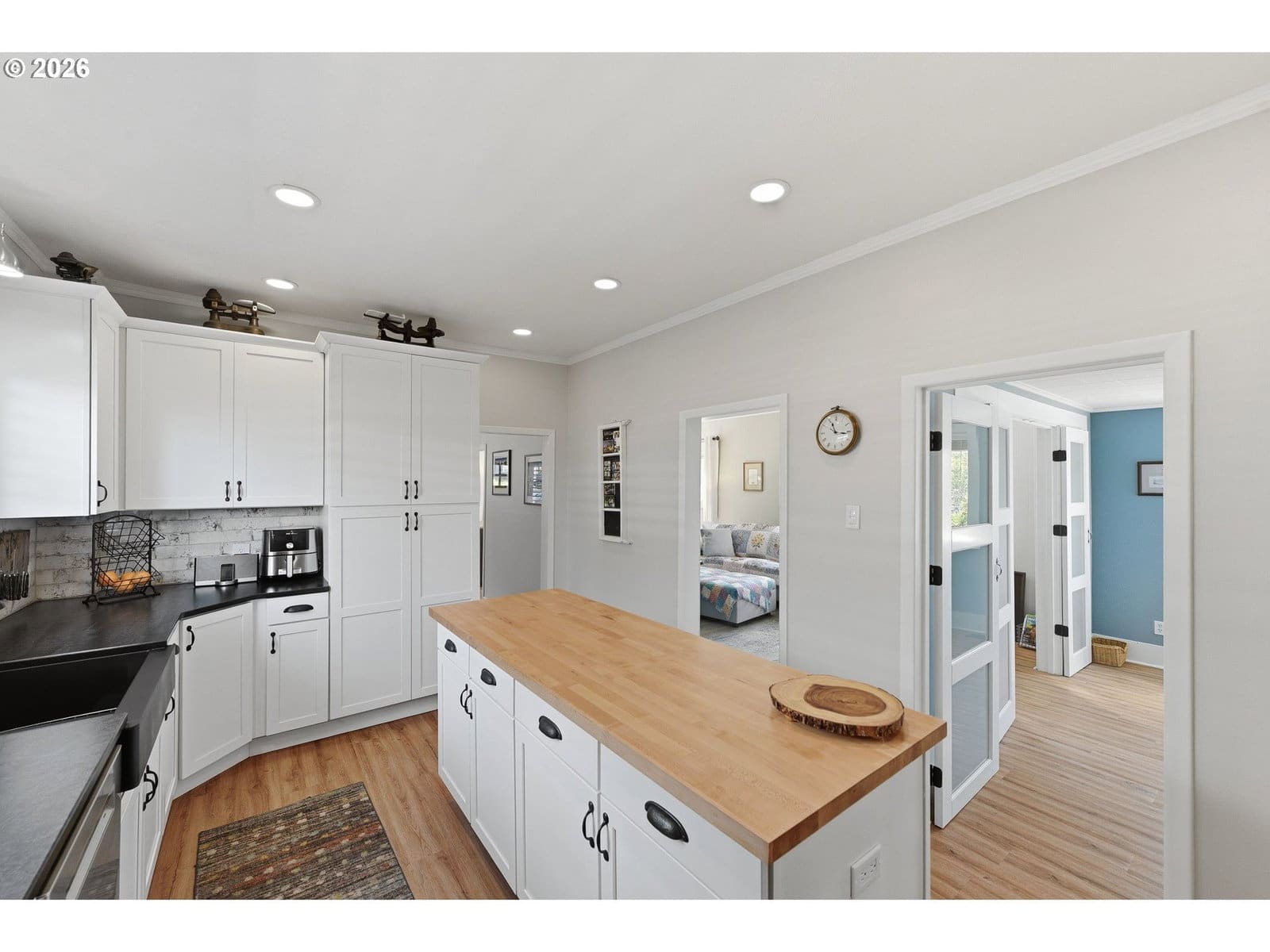 Stunning Bay View Craftsman in one of North Bend’s desirable neighborhoods. This beautifully updated 3,312 square foot home blends timeless character with modern comfort, offering 4 bedrooms, 2 fully remodeled bathrooms, plus an additional office space or potential 5th bedroom. Inside, this spacious home is filled with natural light and showcases grand living spaces, high ceilings and a layout designed for both everyday living and entertaining. The main level features updated LVP flooring, while upstairs is primarily carpeted. Underneath, the original hardwood floors have been fully refinished, preserving the home’s historic charm. The remodeled kitchen is a true showpiece with quartz countertops, stainless steel appliances, gas range, a large butcher block island and a dream walk-in pantry complete with appliance storage, coffee bar and an abundance of space for organization. Both bathrooms have been beautifully renovated, and the laundry room has been thoughtfully moved to the main living area for added ease and convenience. The primary suite is massive and offers the kind of space that is hard to come by, with tons of closet space and gorgeous views from a large picture window that frames the bay beautifully. Forced air heating, gas fireplace downstairs and extensive storage throughout complete the interior. Step outside and enjoy the new covered front porch, new fencing, a new gazebo patio area in the backyard, raised garden beds and a newly built greenhouse, a gardeners dream. With a detached garage, RV parking with electric hookup and a quiet location within half a block to Simpson Park, this home offers the perfect blend of character, charm, updates and lifestyle. A must see to appreciate! Call today to schedule a private tour!