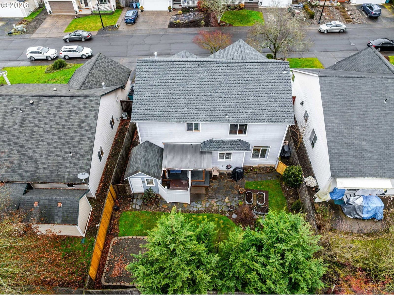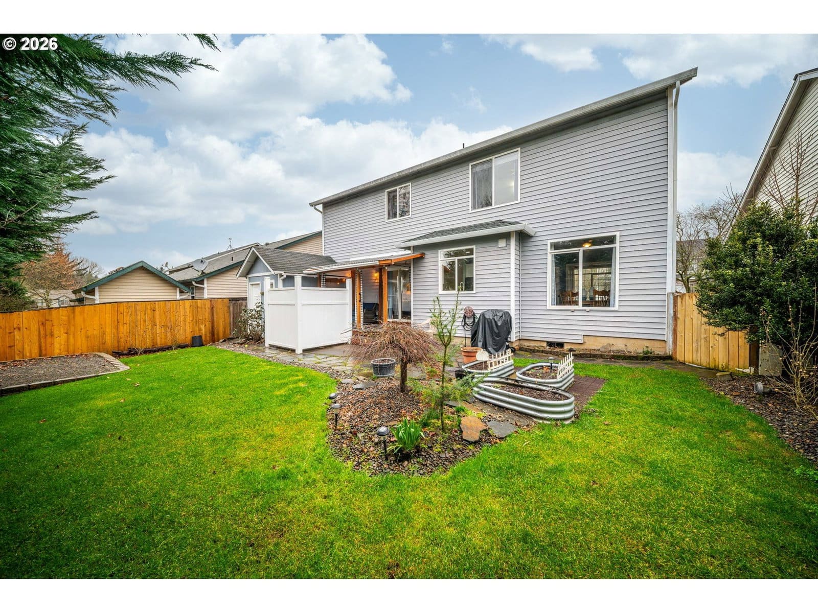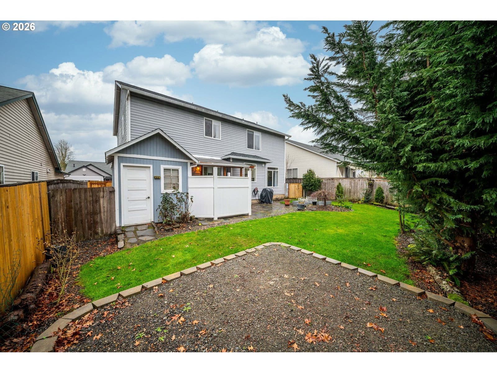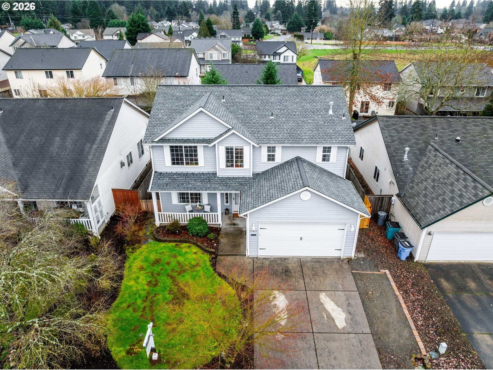 Pride of ownership shines throughout this beautifully maintained 2,208 sq ft home. Offering 4 bedrooms and 3 full bathrooms—including one on the main level. This home features a versatile layout ideal for multigenerational living thanks to the spacious bonus room that doubles perfectly as a 4th bedroom. The main level features laminate flooring, abundant natural light, and living and dining spaces that feel both cozy and functional. The updated kitchen impresses with quartz countertops, new flooring, slate appliances, and ample room for entertaining. Just off the kitchen, the large family room is a true centerpiece with a stunning shiplap fireplace, creating a warm and welcoming gathering space. Upstairs, the vaulted and spacious primary suite offers a peaceful retreat complete with a walk-in closet and an updated bathroom. There are two additional nicely sized bedrooms each with a walk-in closet, and a generously sized laundry room for everyday convenience. Buyers will appreciate the major updates already completed, including a newer roof, water heater and most of the flooring has all been updated providing peace of mind. Step outside to your beautiful backyard oasis featuring Trex decking, fully fenced and easy-to-maintain yard. The enclosed private hot tub area perfect for year-round relaxation, and a handy storage shed. Centrally located near shopping, dining, and freeways, this home seamlessly combines comfort, updates, privacy, and convenience in a setting that truly feels like home.