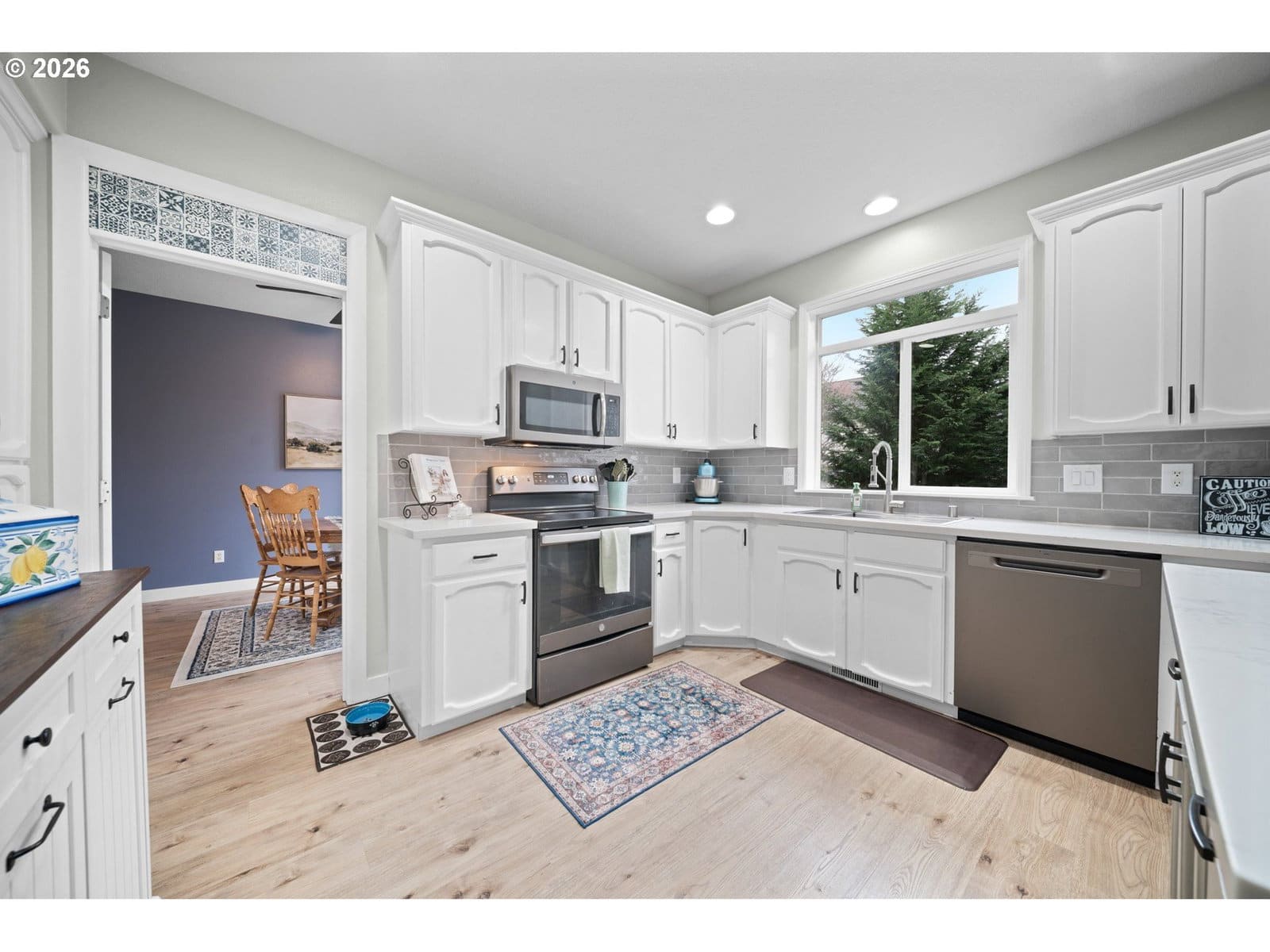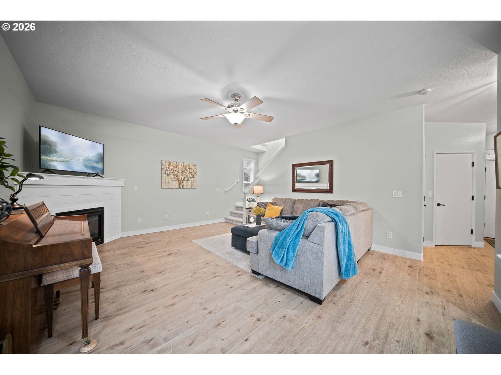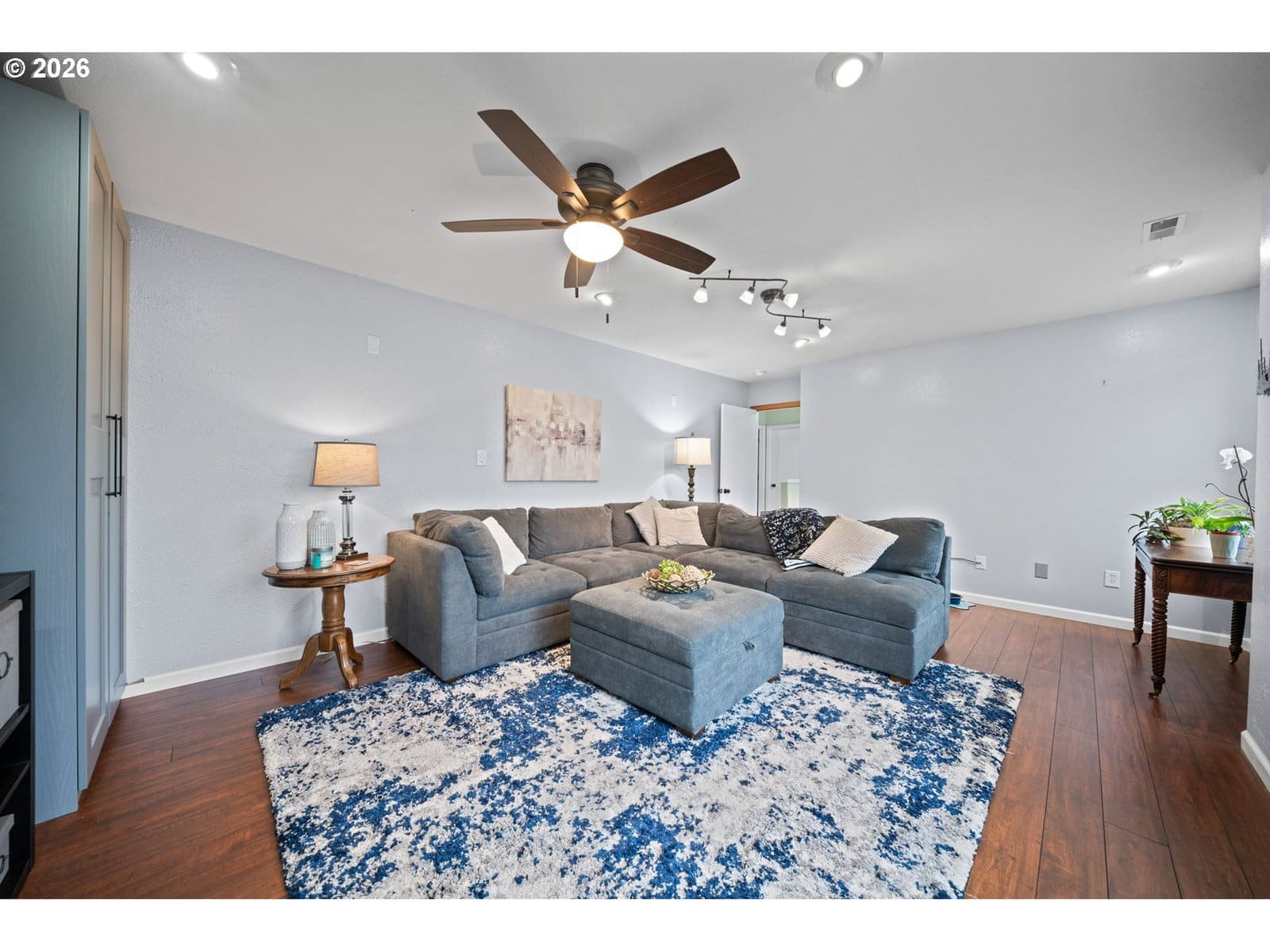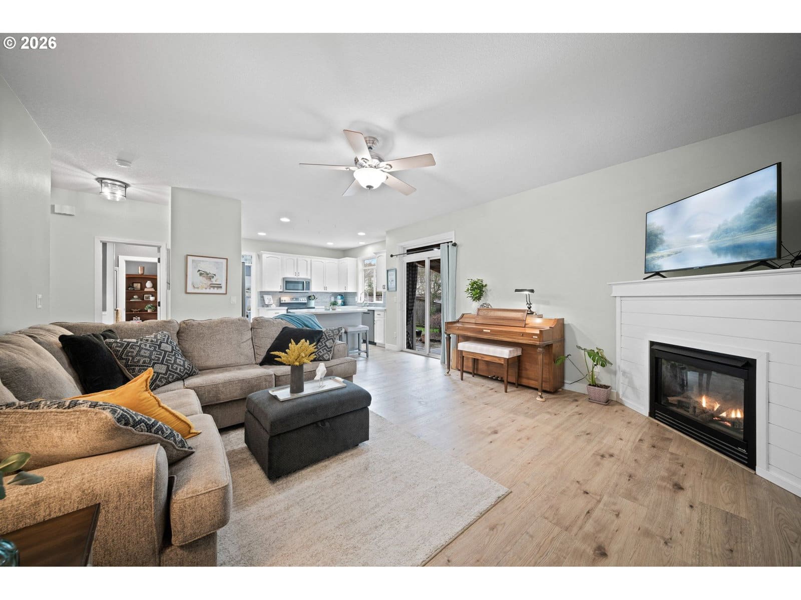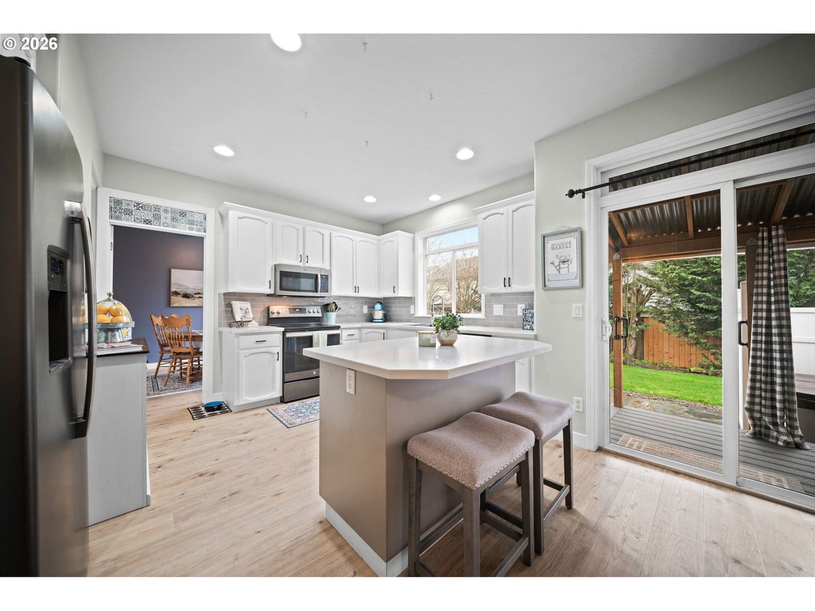 Pride of ownership shines throughout this beautifully maintained 2,208 sq ft home. Offering 4 bedrooms and 3 full bathrooms—including one on the main level. This home features a versatile layout ideal for multigenerational living thanks to the spacious bonus room that doubles perfectly as a 4th bedroom. The main level features laminate flooring, abundant natural light, and living and dining spaces that feel both cozy and functional. The updated kitchen impresses with quartz countertops, new flooring, slate appliances, and ample room for entertaining. Just off the kitchen, the large family room is a true centerpiece with a stunning shiplap fireplace, creating a warm and welcoming gathering space. Upstairs, the vaulted and spacious primary suite offers a peaceful retreat complete with a walk-in closet and an updated bathroom. There are two additional nicely sized bedrooms each with a walk-in closet, and a generously sized laundry room for everyday convenience. Buyers will appreciate the major updates already completed, including a newer roof, water heater and most of the flooring has all been updated providing peace of mind. Step outside to your beautiful backyard oasis featuring Trex decking, fully fenced and easy-to-maintain yard. The enclosed private hot tub area perfect for year-round relaxation, and a handy storage shed. Centrally located near shopping, dining, and freeways, this home seamlessly combines comfort, updates, privacy, and convenience in a setting that truly feels like home.