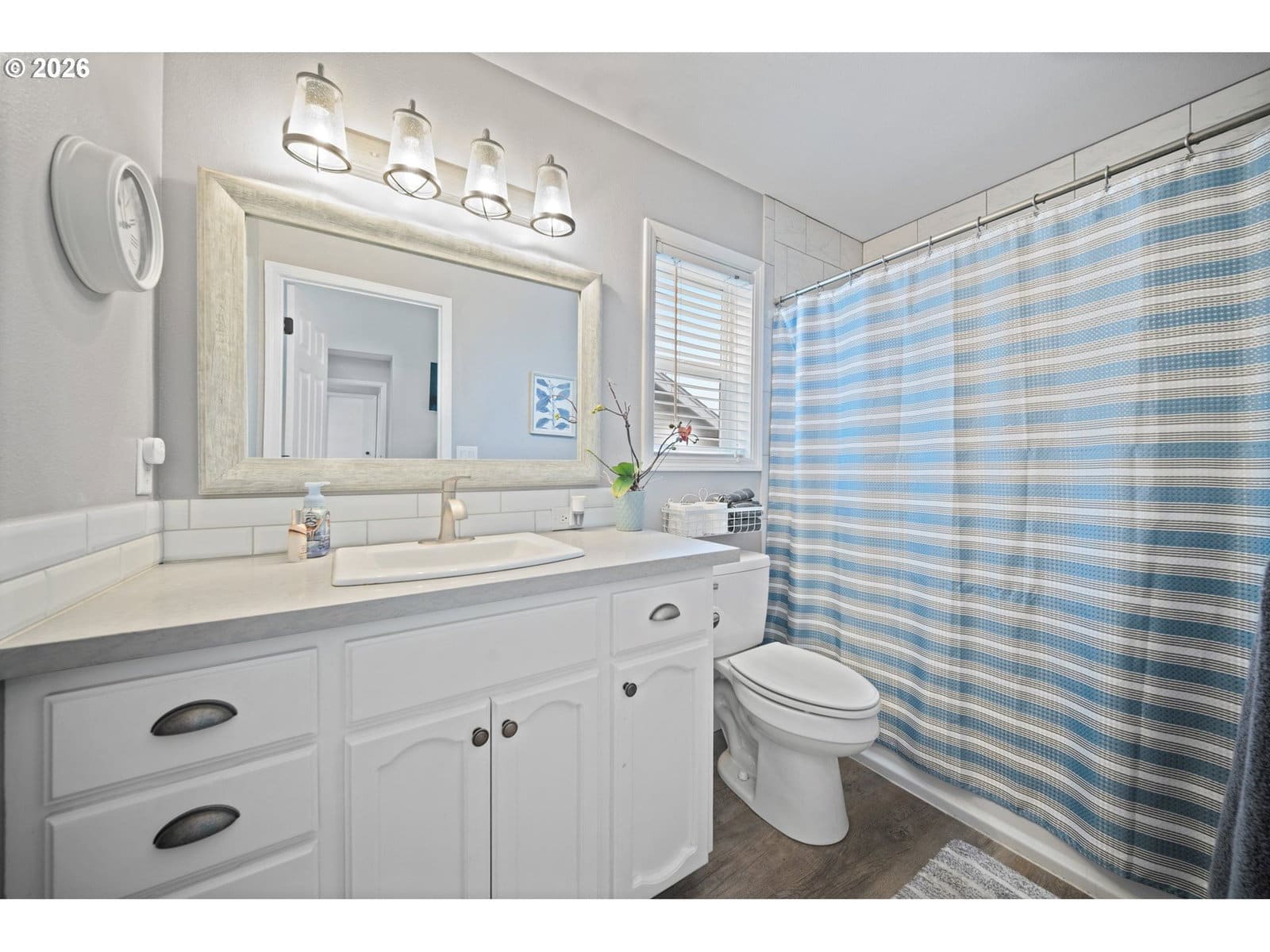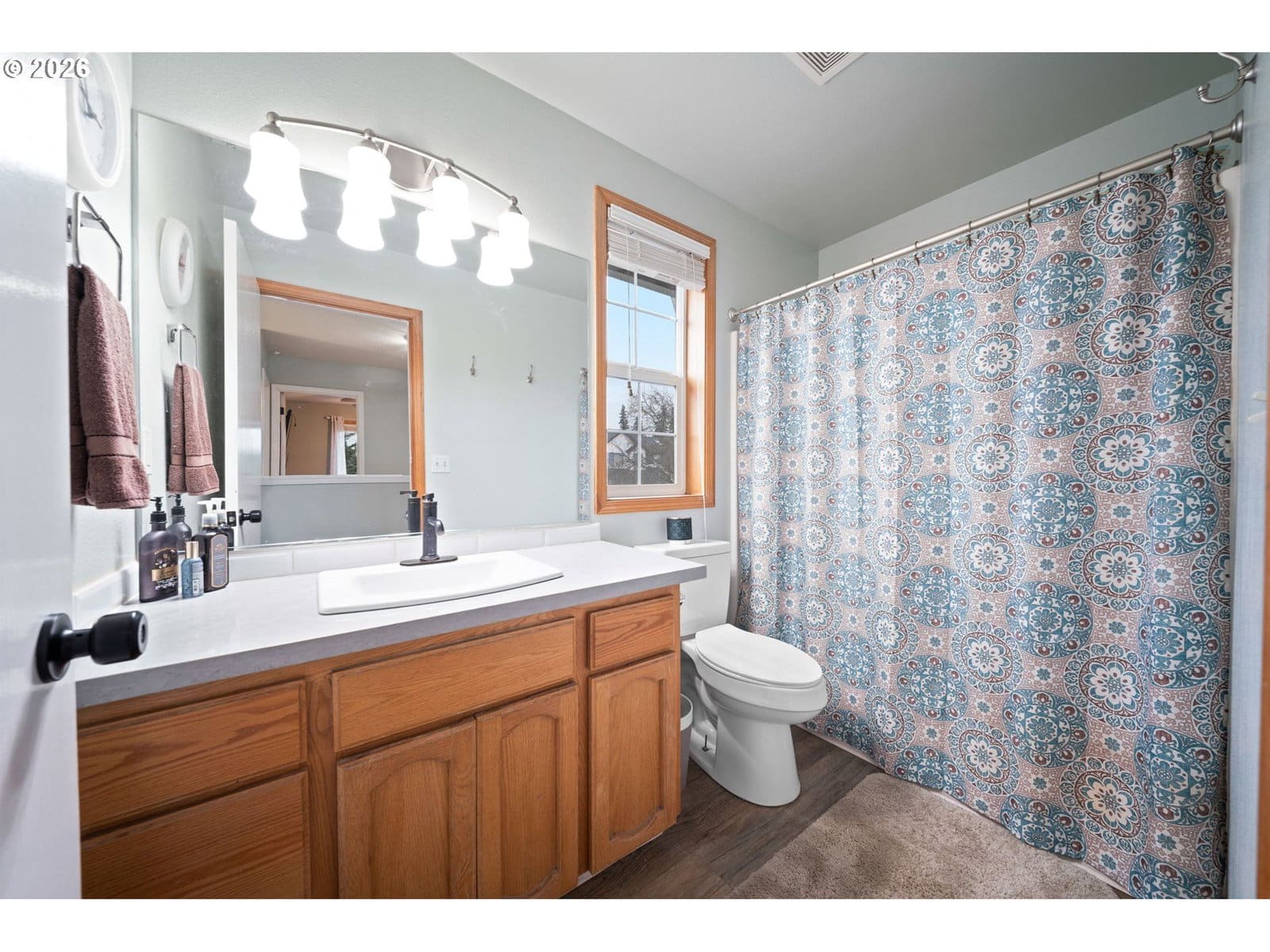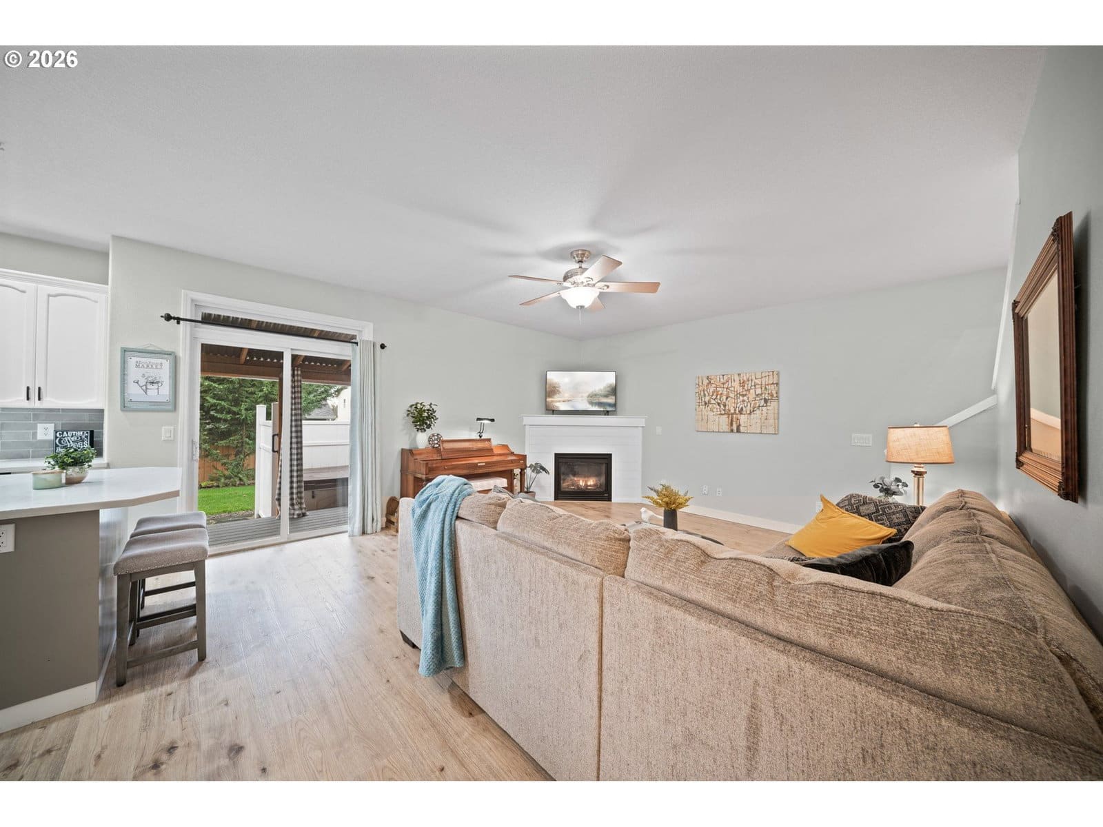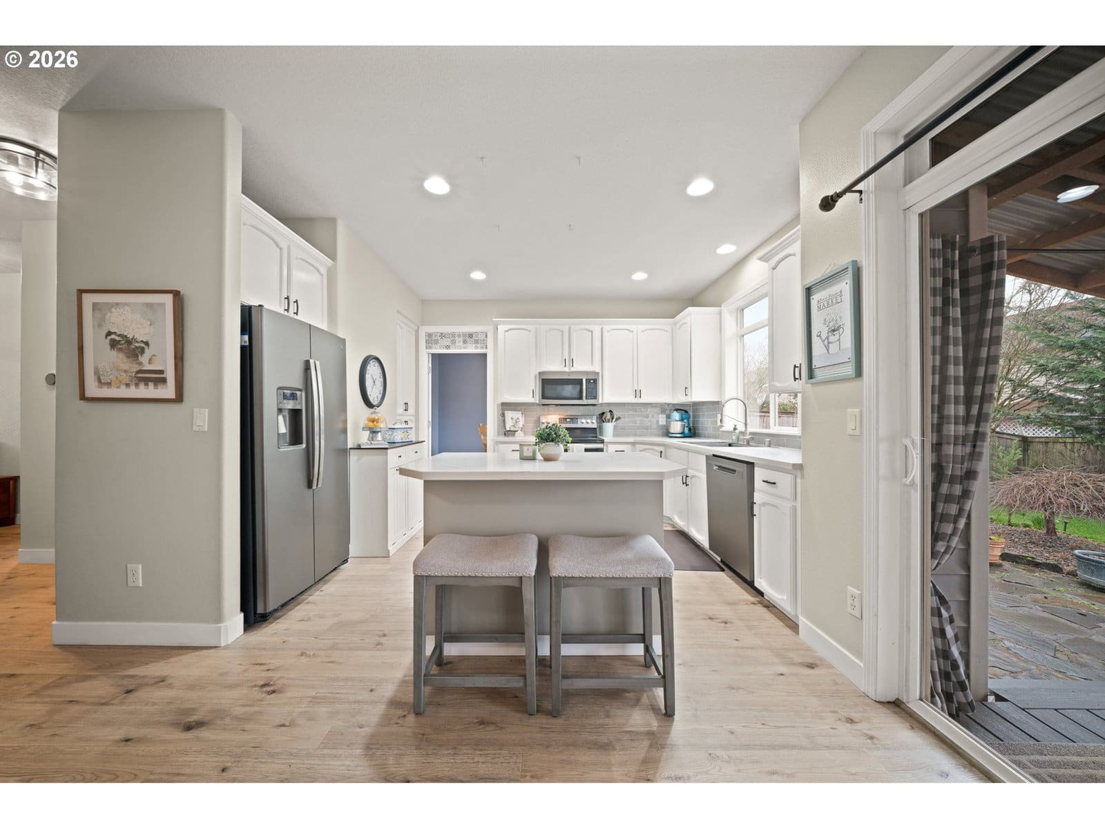 Pride of ownership shines throughout this beautifully maintained 2,208 sq ft home. Offering 4 bedrooms and 3 full bathrooms—including one on the main level. This home features a versatile layout ideal for multigenerational living thanks to the spacious bonus room that doubles perfectly as a 4th bedroom. The main level features laminate flooring, abundant natural light, and living and dining spaces that feel both cozy and functional. The updated kitchen impresses with quartz countertops, new flooring, slate appliances, and ample room for entertaining. Just off the kitchen, the large family room is a true centerpiece with a stunning shiplap fireplace, creating a warm and welcoming gathering space. Upstairs, the vaulted and spacious primary suite offers a peaceful retreat complete with a walk-in closet and an updated bathroom. There are two additional nicely sized bedrooms each with a walk-in closet, and a generously sized laundry room for everyday convenience. Buyers will appreciate the major updates already completed, including a newer roof, water heater and most of the flooring has all been updated providing peace of mind. Step outside to your beautiful backyard oasis featuring Trex decking, fully fenced and easy-to-maintain yard. The enclosed private hot tub area perfect for year-round relaxation, and a handy storage shed. Centrally located near shopping, dining, and freeways, this home seamlessly combines comfort, updates, privacy, and convenience in a setting that truly feels like home.