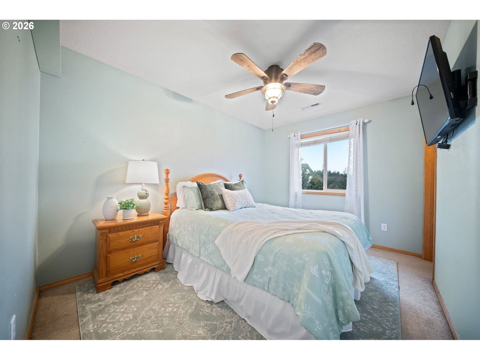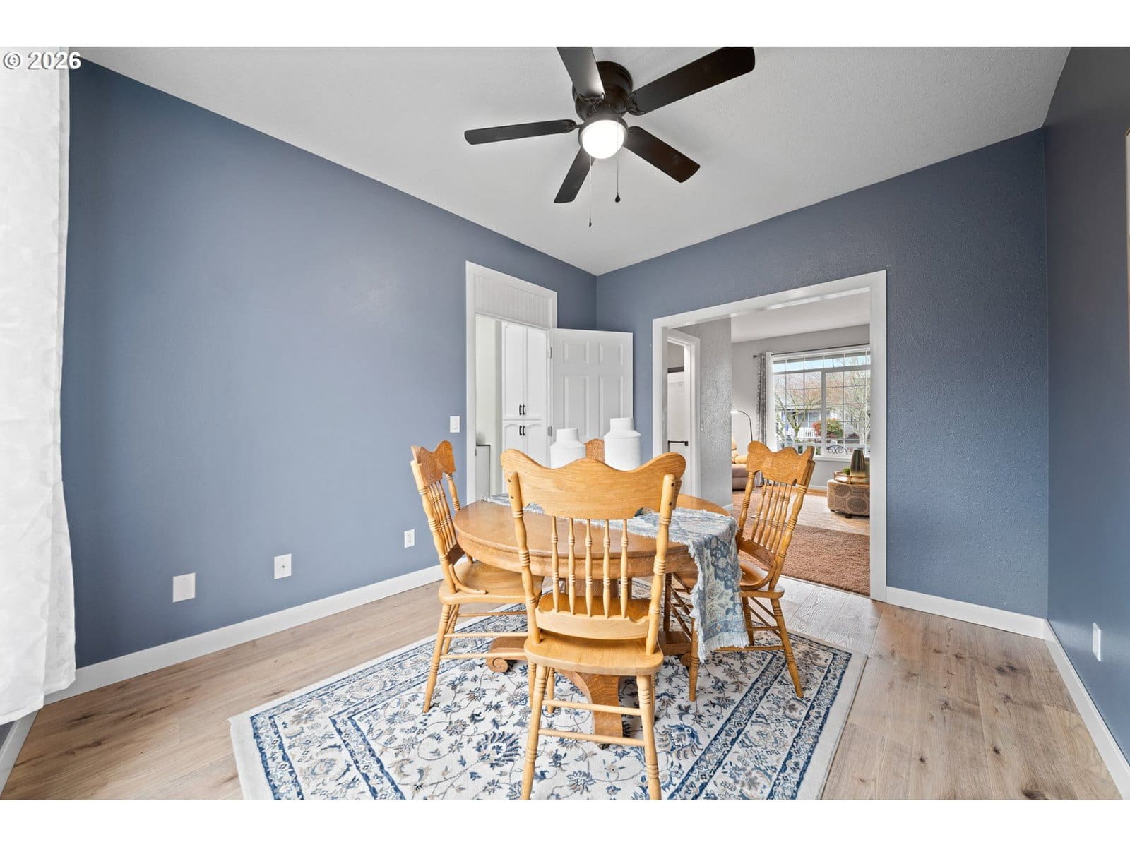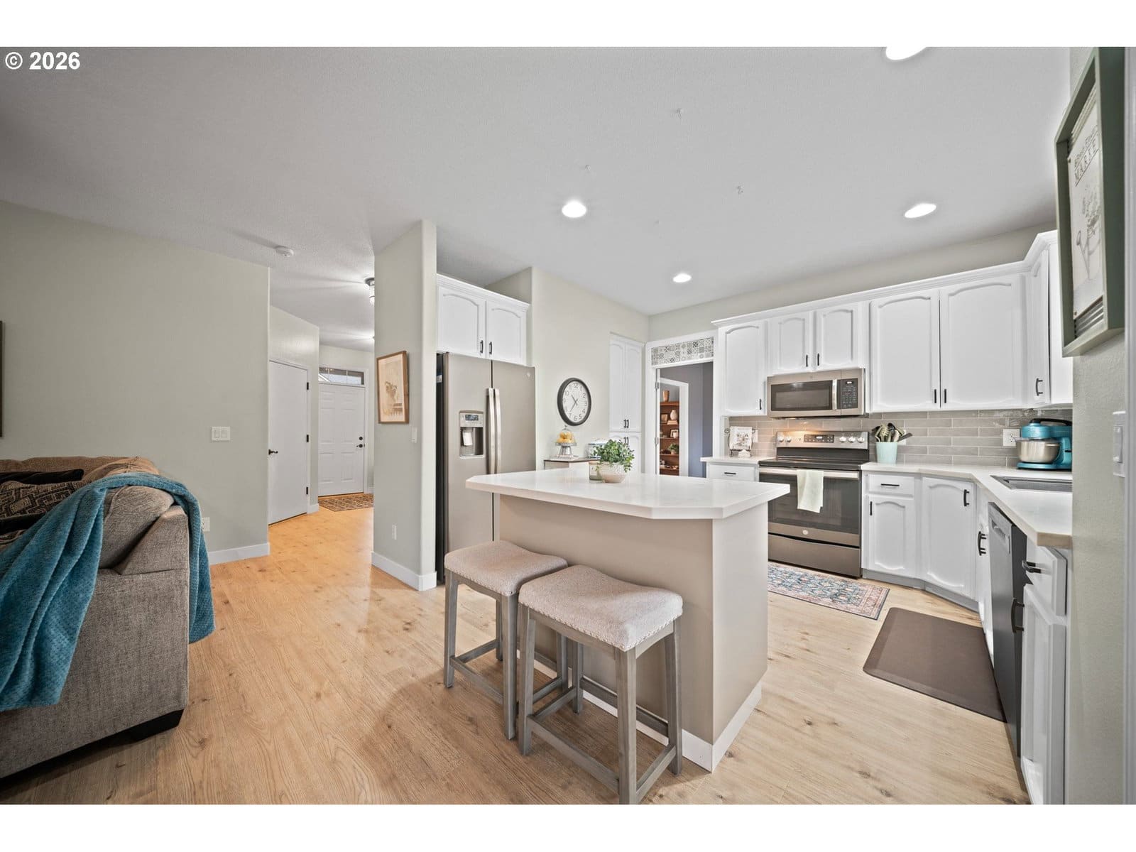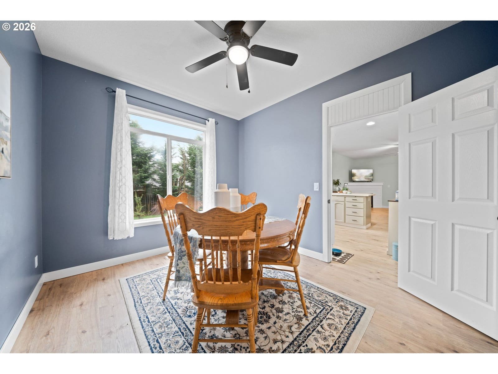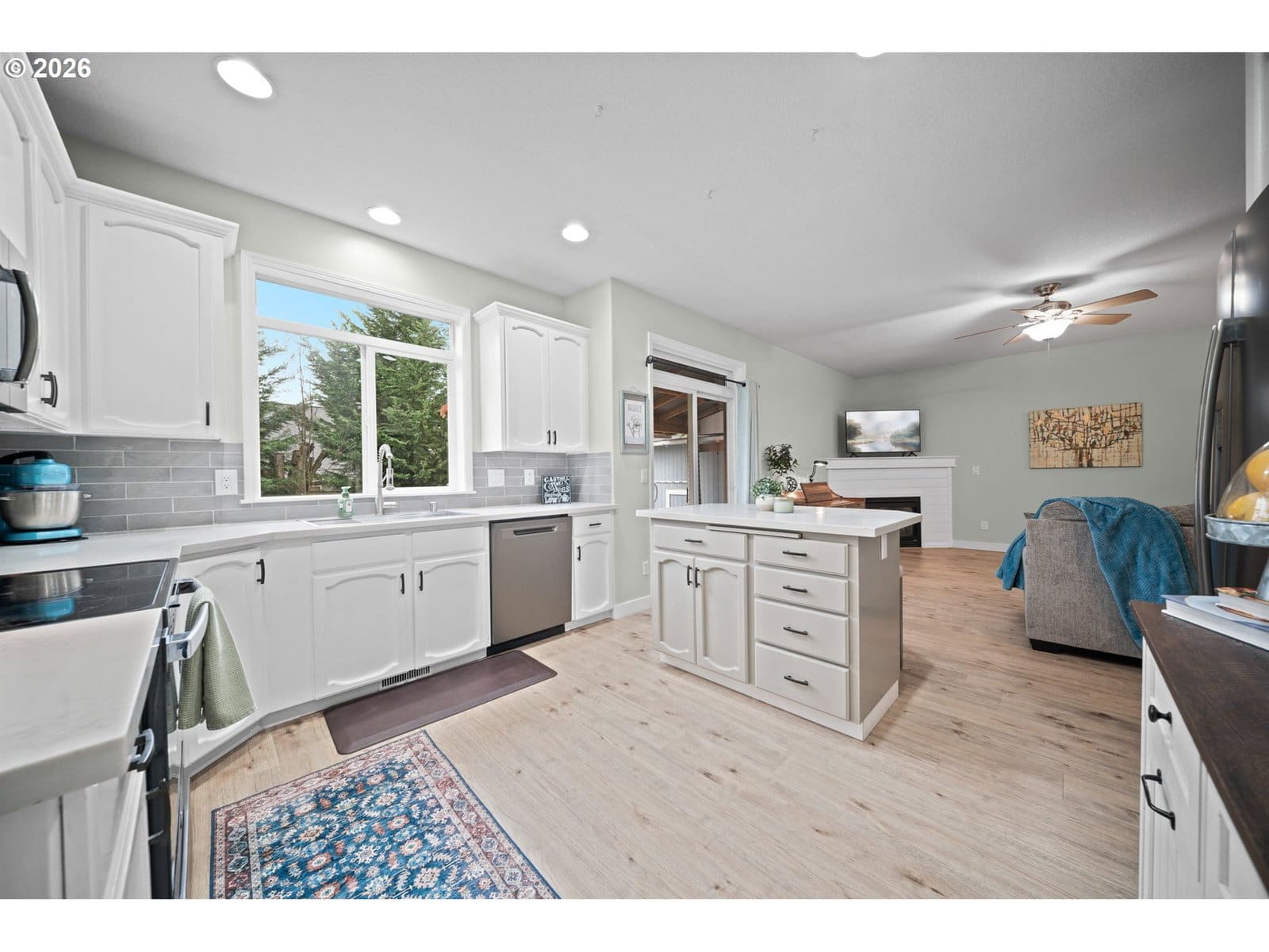 Pride of ownership shines throughout this beautifully maintained 2,208 sq ft home. Offering 4 bedrooms and 3 full bathrooms—including one on the main level. This home features a versatile layout ideal for multigenerational living thanks to the spacious bonus room that doubles perfectly as a 4th bedroom. The main level features laminate flooring, abundant natural light, and living and dining spaces that feel both cozy and functional. The updated kitchen impresses with quartz countertops, new flooring, slate appliances, and ample room for entertaining. Just off the kitchen, the large family room is a true centerpiece with a stunning shiplap fireplace, creating a warm and welcoming gathering space. Upstairs, the vaulted and spacious primary suite offers a peaceful retreat complete with a walk-in closet and an updated bathroom. There are two additional nicely sized bedrooms each with a walk-in closet, and a generously sized laundry room for everyday convenience. Buyers will appreciate the major updates already completed, including a newer roof, water heater and most of the flooring has all been updated providing peace of mind. Step outside to your beautiful backyard oasis featuring Trex decking, fully fenced and easy-to-maintain yard. The enclosed private hot tub area perfect for year-round relaxation, and a handy storage shed. Centrally located near shopping, dining, and freeways, this home seamlessly combines comfort, updates, privacy, and convenience in a setting that truly feels like home.