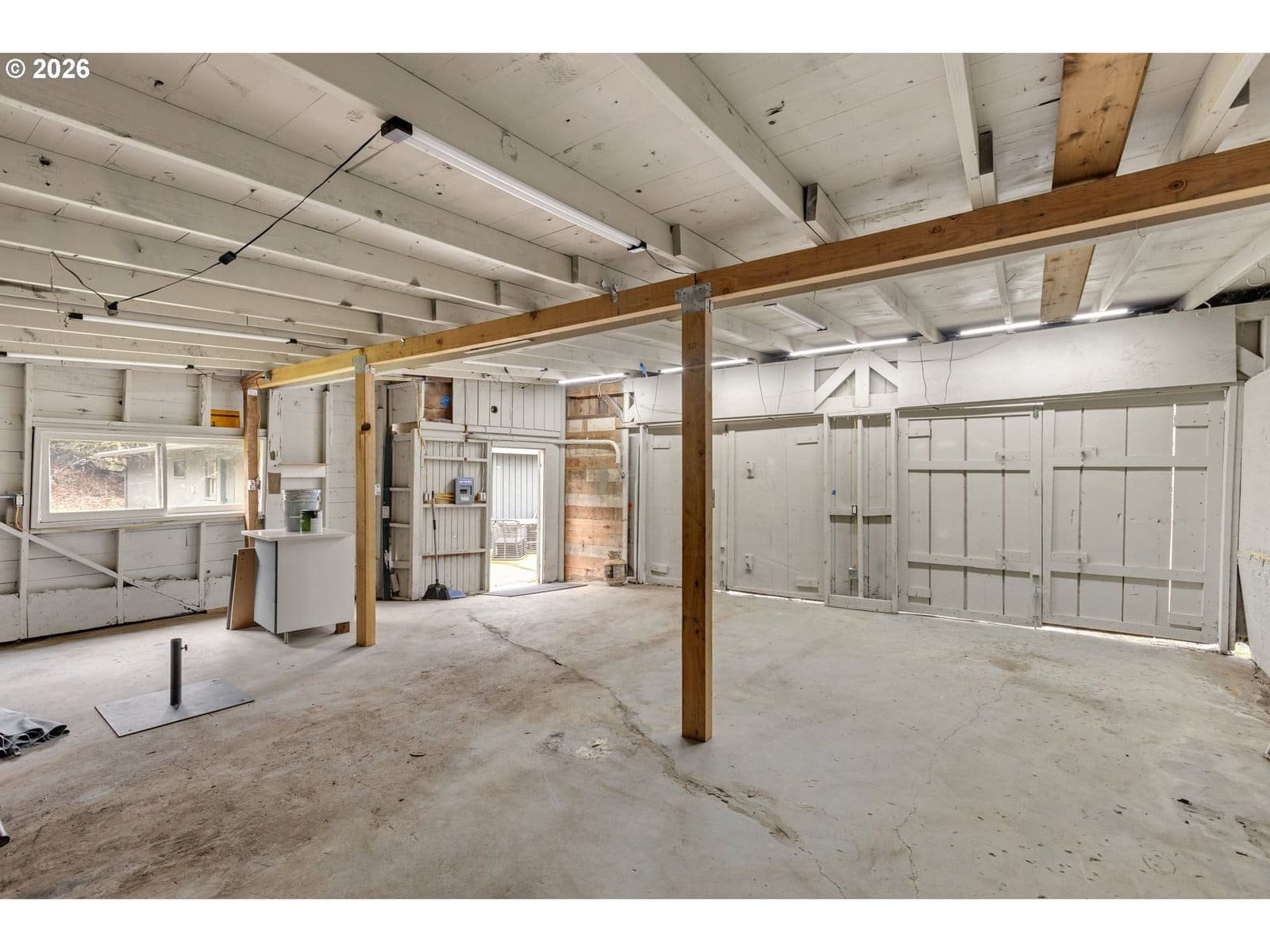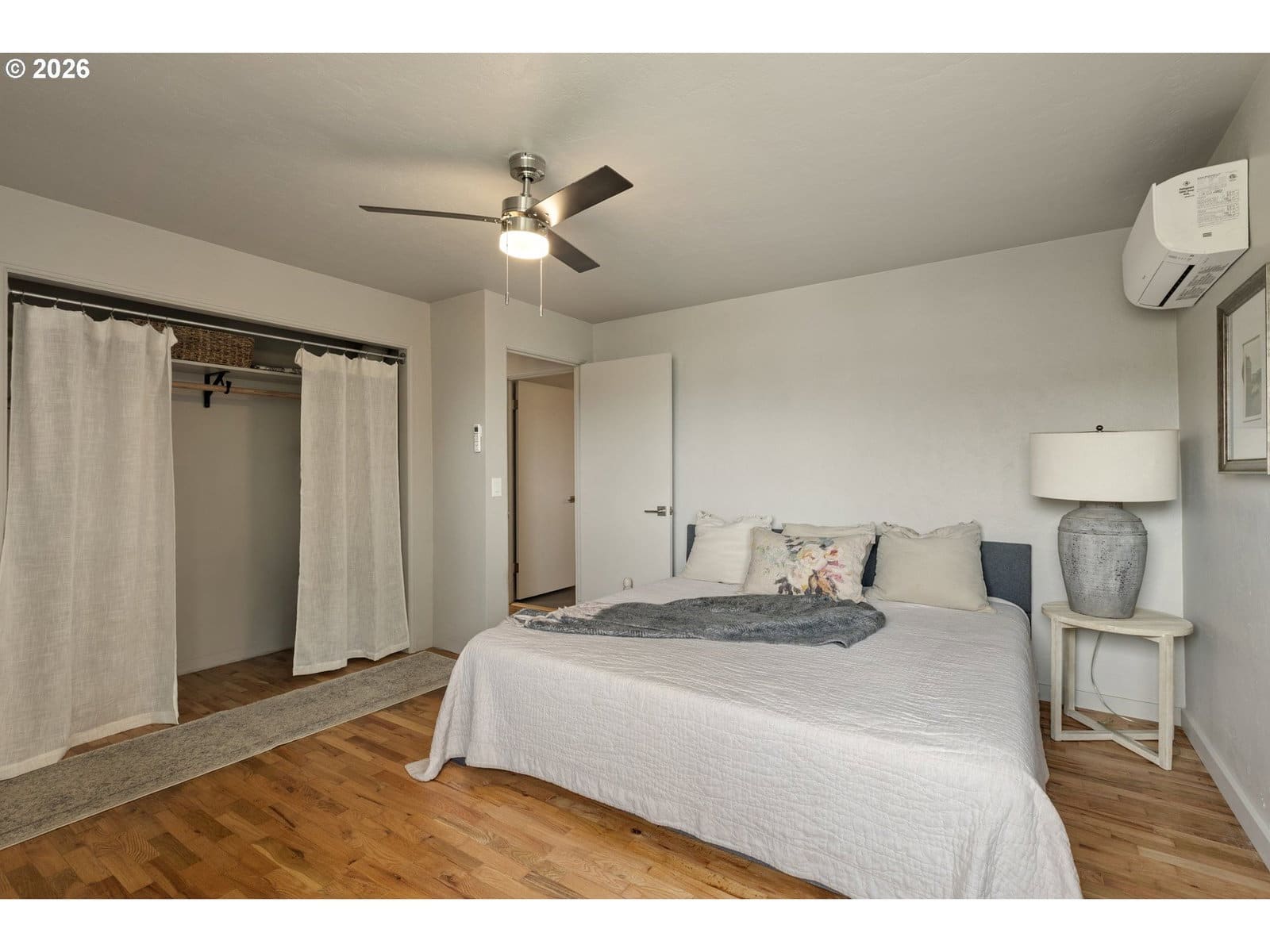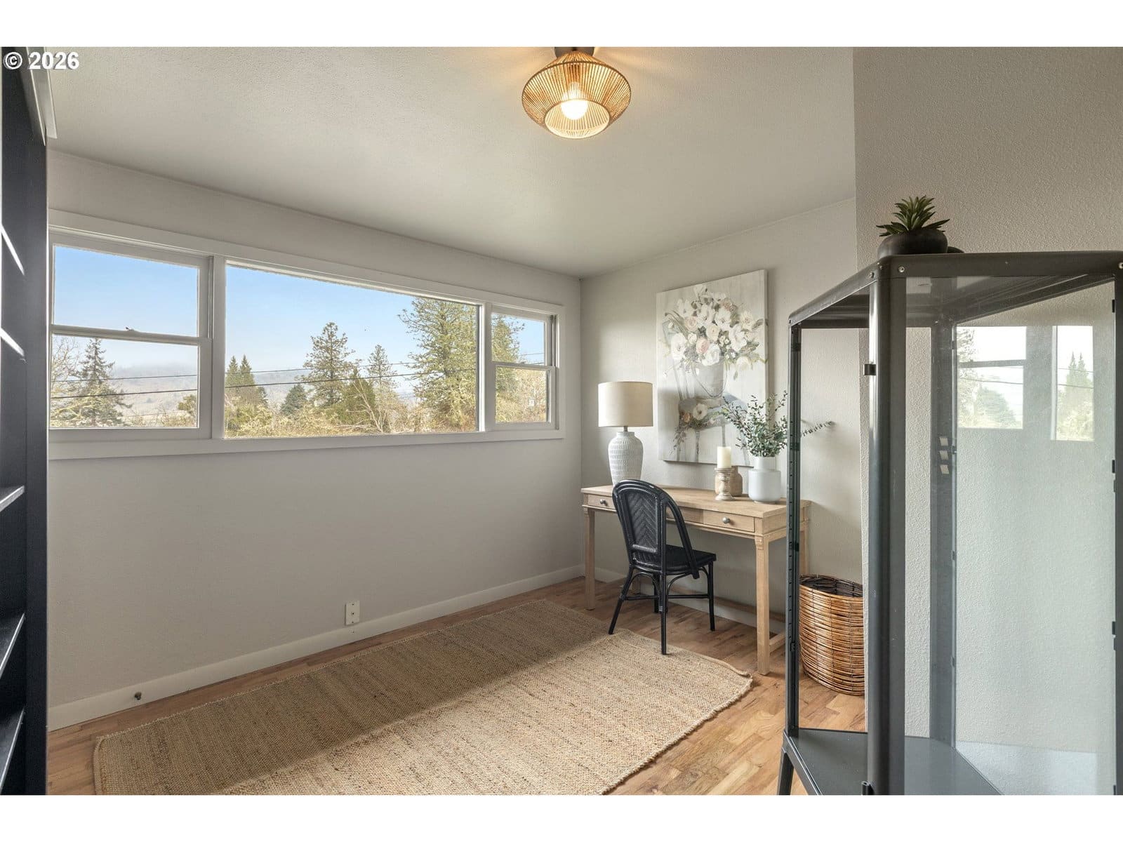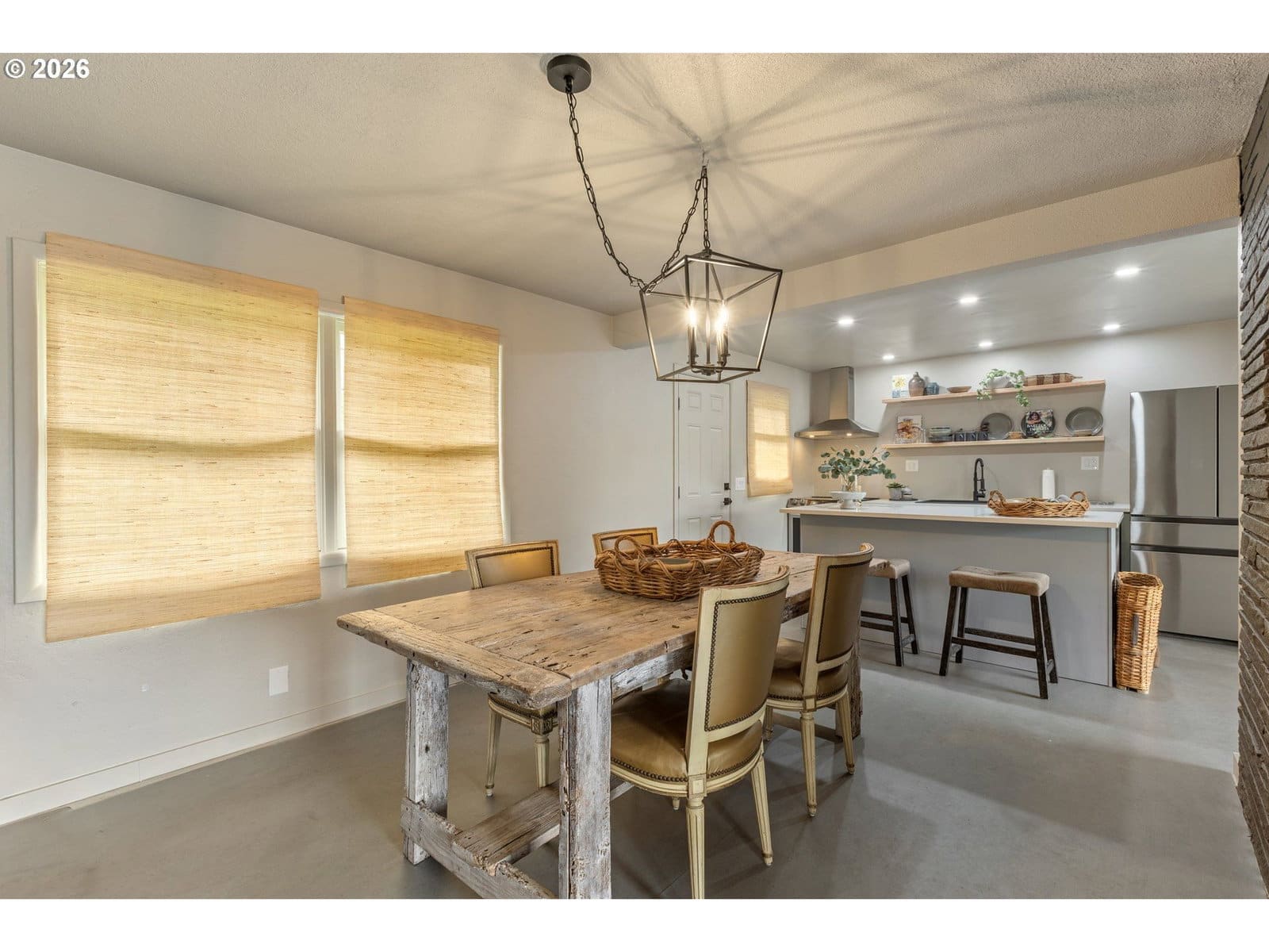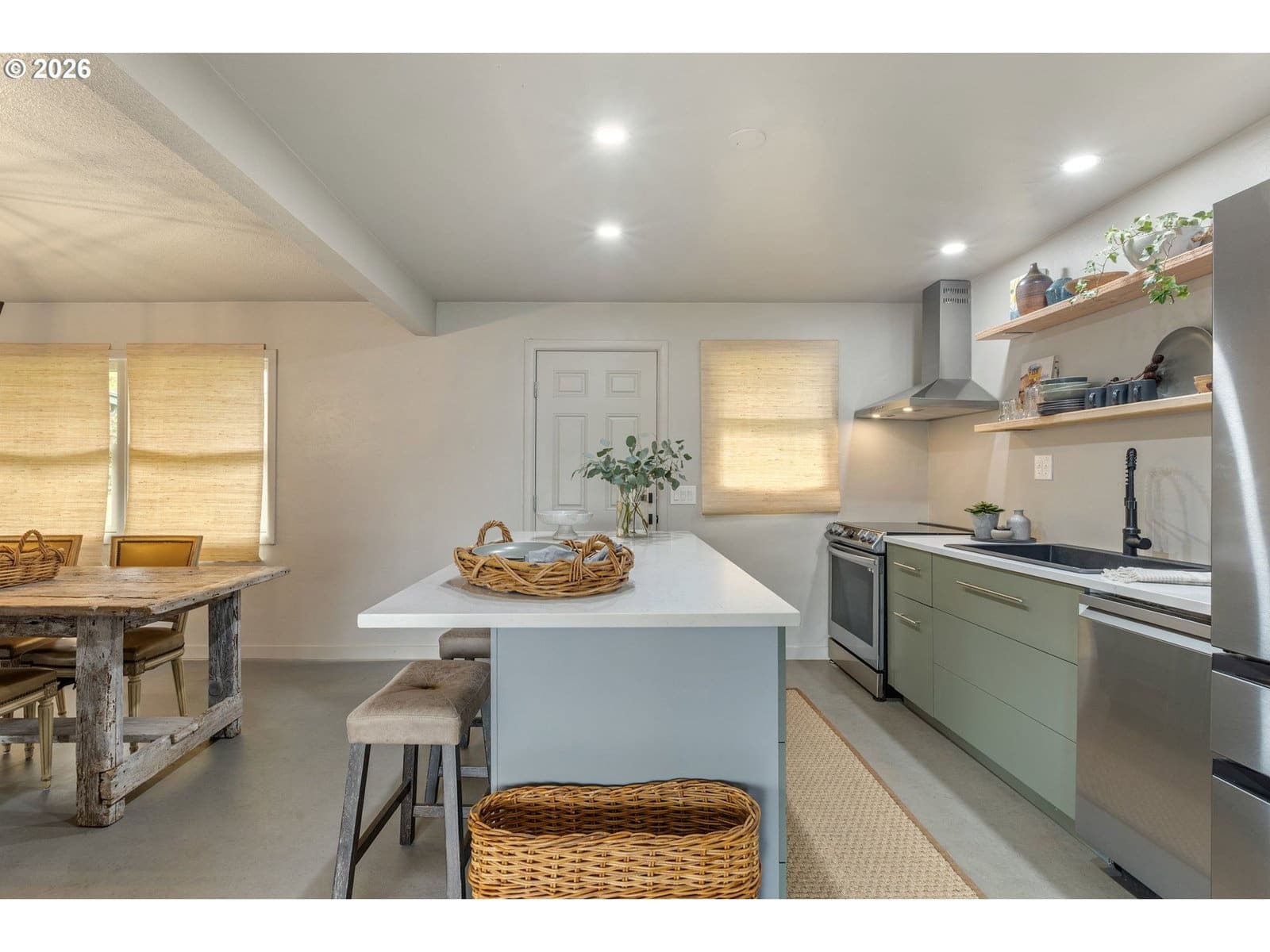 Experience the perfect blend of vintage charm and contemporary luxury in this freshly remodeled Mid-Century Modern ranch home. Situated on a spacious .30-acre lot, this single-level residence is perfectly positioned to capture stunning views of the Roseburg city lights and surrounding mountain peaks directly from your living room windows. The heart of the home features an open layout anchored by massive picture windows that flood the space with natural light. Take in the scenery while relaxing by the floor-to-ceiling stacked stone fireplace and hearth. The main living areas and hallways boast beautiful hardwood flooring, leading to a reimagined kitchen with elegant quartz countertops, a functional island, and new cabinetry featuring pull-out drawers. Modern amenities include new stainless steel appliances, a sleek range hood, and durable Marmoleum flooring that flows into the sizable dining area. The primary suite offers a private retreat with hardwood floors and those signature front-facing views. The second bedroom is bright and versatile with Marmoleum flooring and a brand-new wardrobe, while the third bedroom features hardwood floors and large windows that frame the beautiful exterior scenery. The freshly remodeled bathroom is a showstopper, featuring a double-sink vanity, a classic clawfoot soaking tub, and a brand-new walk-in tile shower, while also doubling as a convenient laundry suite with a stackable washer and dryer. Modern efficiency is ensured with a brand-new ductless heating and cooling system and fresh interior and exterior paint. Outside, you will find a large garage/workshop perfect for hobbies, a large parking area, and a lush yard with endless potential for gardening. Located just a minute from the vibrant downtown area, this home perfectly balances secluded views with urban convenience. Don’t miss your chance to own this modernized classic—schedule your private tour today! Seller is offering a 1 year home warranty to a buyer through closing.
