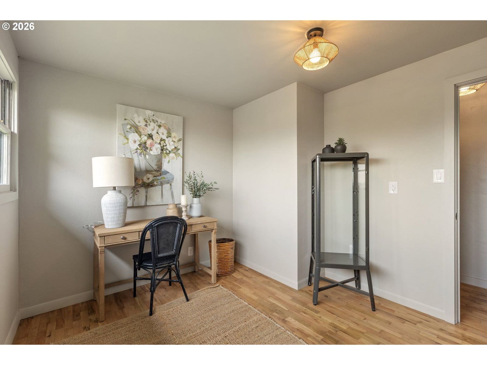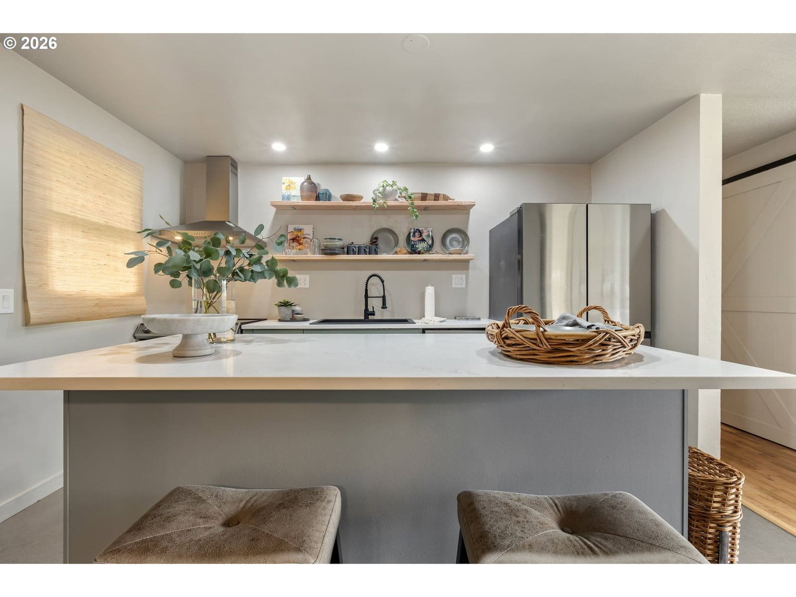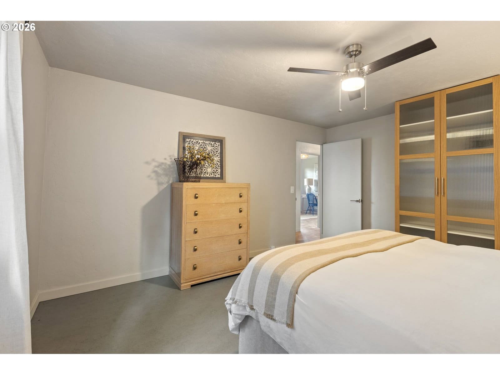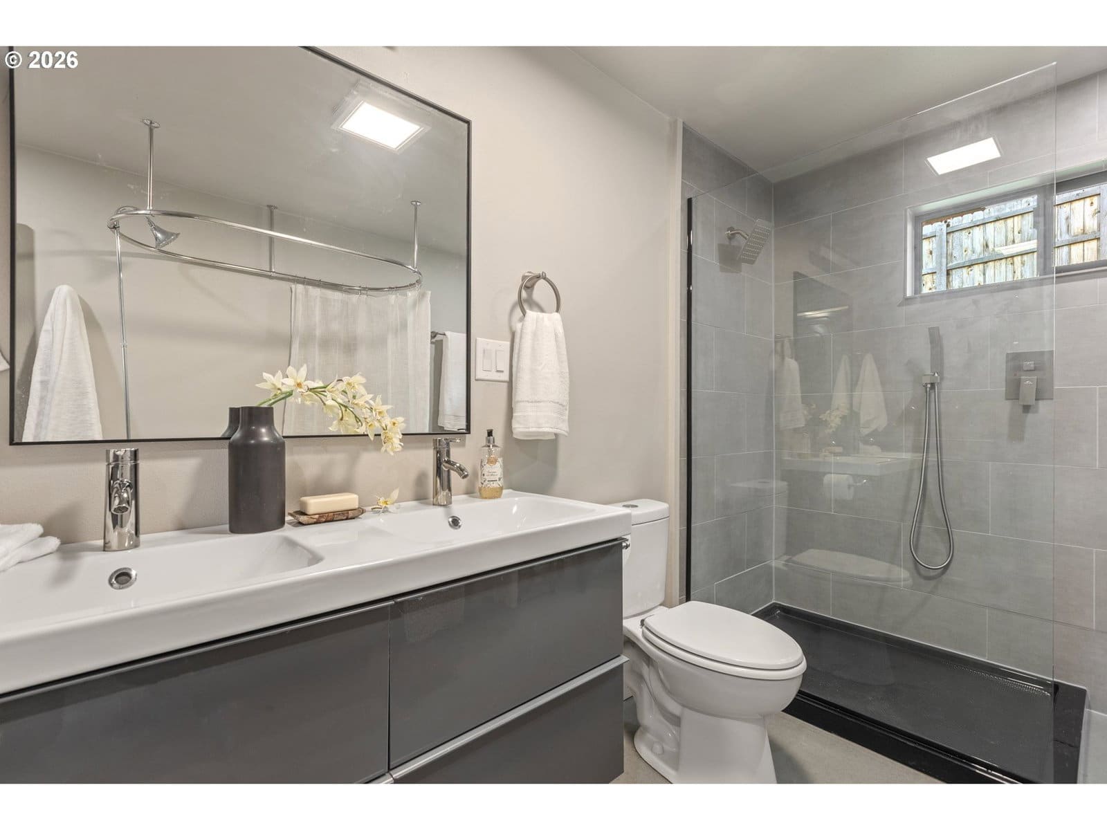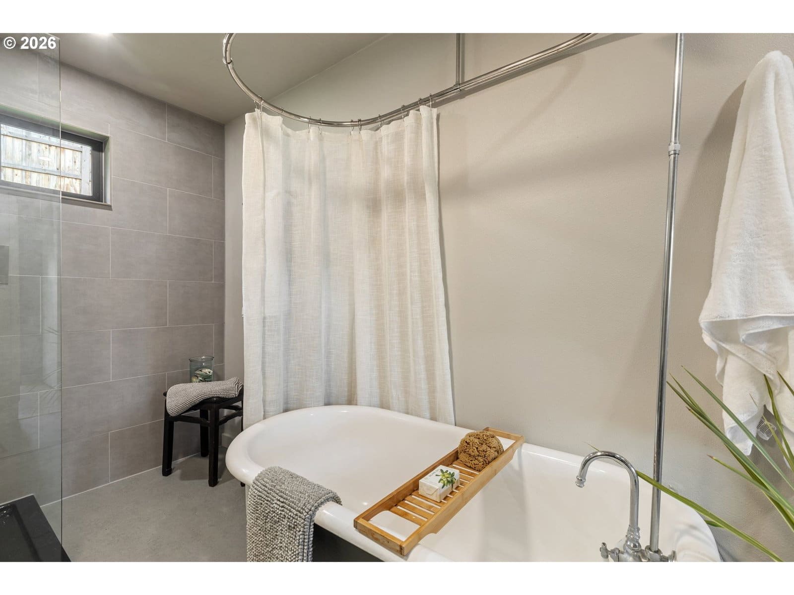 Experience the perfect blend of vintage charm and contemporary luxury in this freshly remodeled Mid-Century Modern ranch home. Situated on a spacious .30-acre lot, this single-level residence is perfectly positioned to capture stunning views of the Roseburg city lights and surrounding mountain peaks directly from your living room windows. The heart of the home features an open layout anchored by massive picture windows that flood the space with natural light. Take in the scenery while relaxing by the floor-to-ceiling stacked stone fireplace and hearth. The main living areas and hallways boast beautiful hardwood flooring, leading to a reimagined kitchen with elegant quartz countertops, a functional island, and new cabinetry featuring pull-out drawers. Modern amenities include new stainless steel appliances, a sleek range hood, and durable Marmoleum flooring that flows into the sizable dining area. The primary suite offers a private retreat with hardwood floors and those signature front-facing views. The second bedroom is bright and versatile with Marmoleum flooring and a brand-new wardrobe, while the third bedroom features hardwood floors and large windows that frame the beautiful exterior scenery. The freshly remodeled bathroom is a showstopper, featuring a double-sink vanity, a classic clawfoot soaking tub, and a brand-new walk-in tile shower, while also doubling as a convenient laundry suite with a stackable washer and dryer. Modern efficiency is ensured with a brand-new ductless heating and cooling system and fresh interior and exterior paint. Outside, you will find a large garage/workshop perfect for hobbies, a large parking area, and a lush yard with endless potential for gardening. Located just a minute from the vibrant downtown area, this home perfectly balances secluded views with urban convenience. Don’t miss your chance to own this modernized classic—schedule your private tour today! Seller is offering a 1 year home warranty to a buyer through closing.
