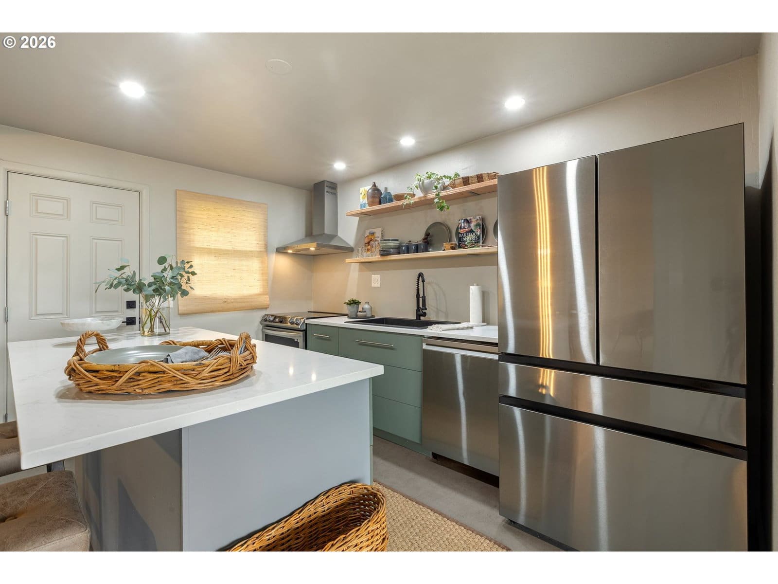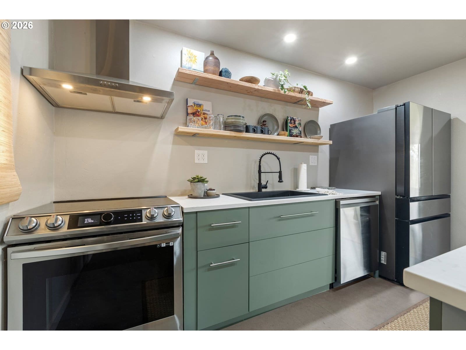 Washer, Dryer, Dishwasher, Free-Standing Range, Free-Standing Refrigerator, Plumbed For Ice Maker, Range Hood