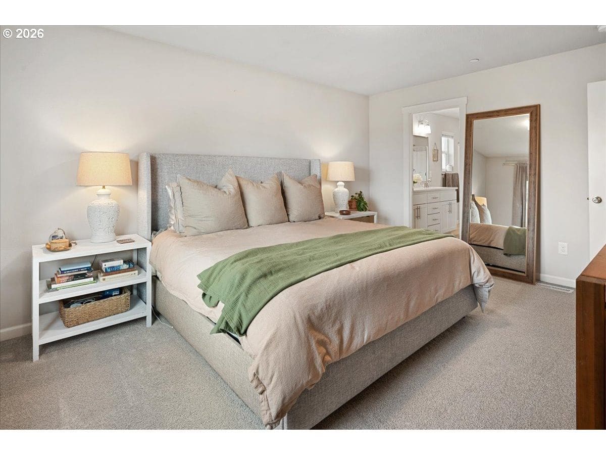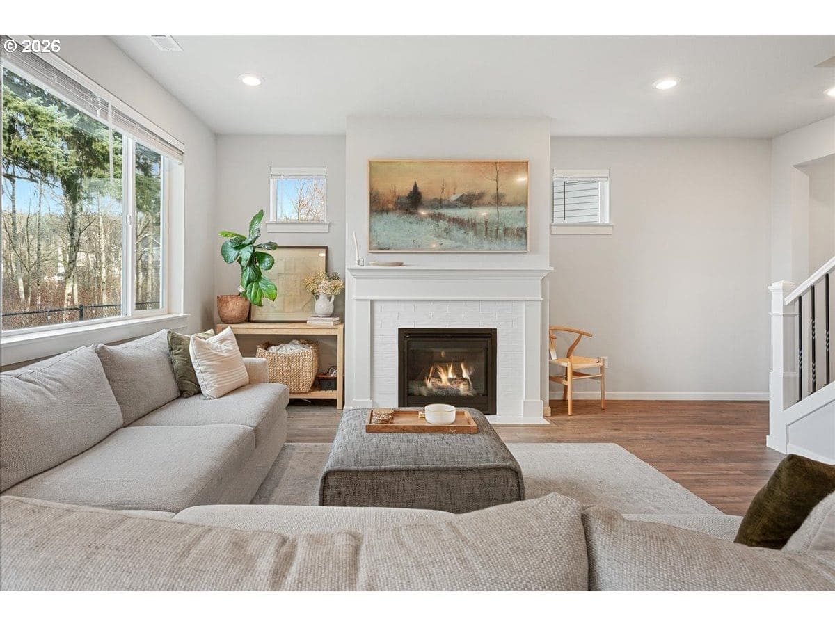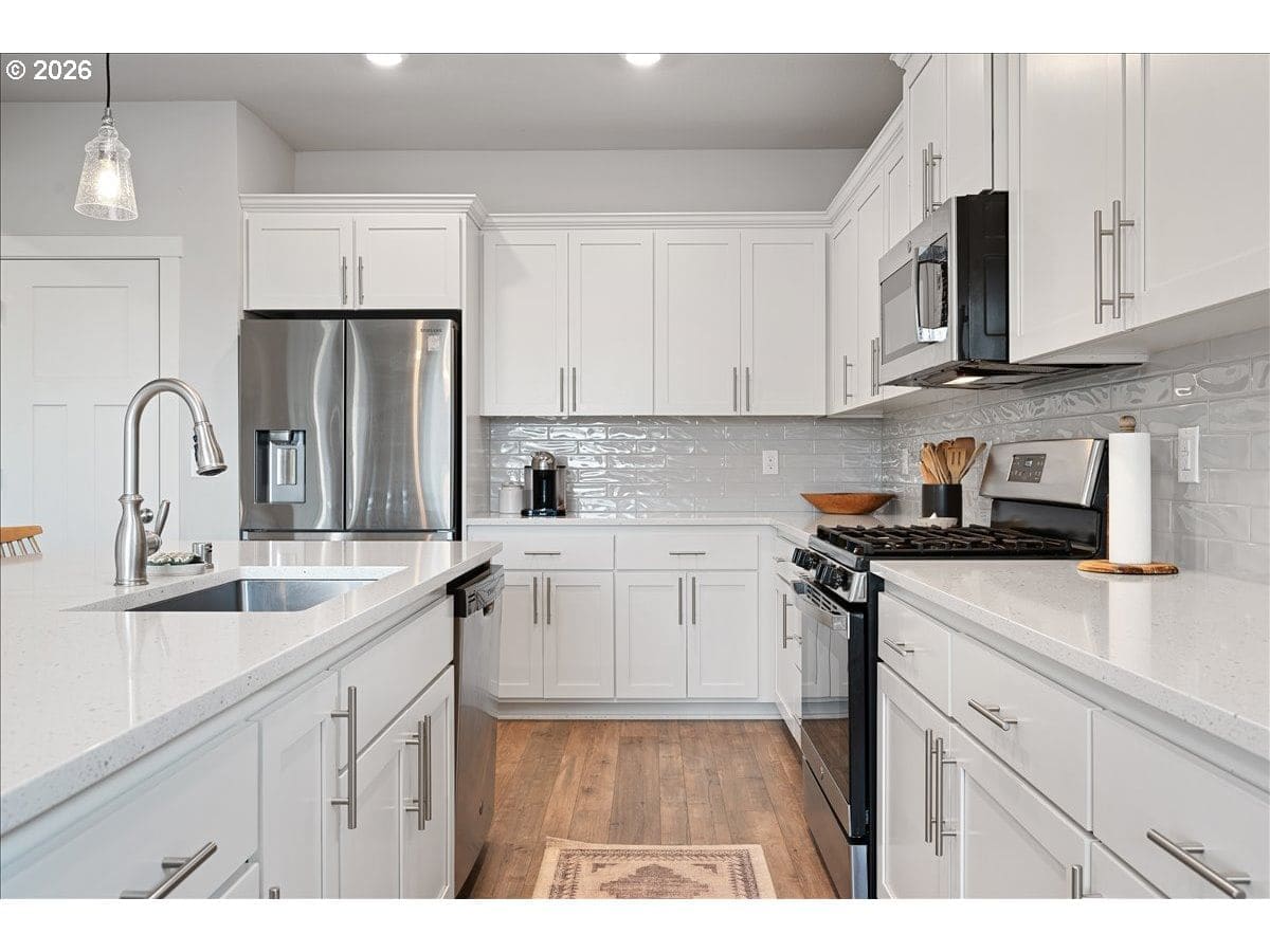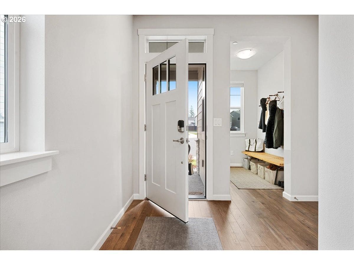 Here it is, that perfect combination you’ve been searching for! Eye catching street appeal with craftsman designs including exterior shutters, decorative pillars, grid style windows, shaker doors, gable brackets and distinct siding details. And it’s located on a premium lot in a cul-de-sac that backs up to a wetland buffer/ green space so there is a nice peaceful view to enjoy all the time! Amazing open and light great room with large dining area, ideal for comfort and gatherings. Like to cook? This kitchen is a dream, ample countertop space with a huge island perfect for food prep, serving and a perfect breakfast eating bar. There’s also a wonderful pantry and gas range too! All bedrooms are generous in size and there’s a great nook in the entry designed as a small work space/ office or can be used as a coat and shoe landing area. Primary suite also views the green space and has a large bathroom and walk in closet. Other upgrades include: stylish and practical laminate flooring through out main floor, beautiful quartz countertops in kitchen and primary bathroom, dual sinks in both upstairs baths, subway tile backsplash in kitchen, attractive tile floors in baths and laundry room, hi-efficiency gas furnace and central AC, tankless hot water heater and a gas fireplace with tile & mantle. Enjoy the privacy and easy maintenance in the fenced backyard with the patio, in-ground sprinklers, a variety of perennials and a couple of raised garden beds. HOA includes walking trails, recreational park, basketball court, outdoor pool/ hot tub and BBQ area. This home is just inside the Evergreen School District but many residents get a Camas School boundary exception, it’s located near the bus stop for both districts. Refrigerator and Ring doorbell are included!