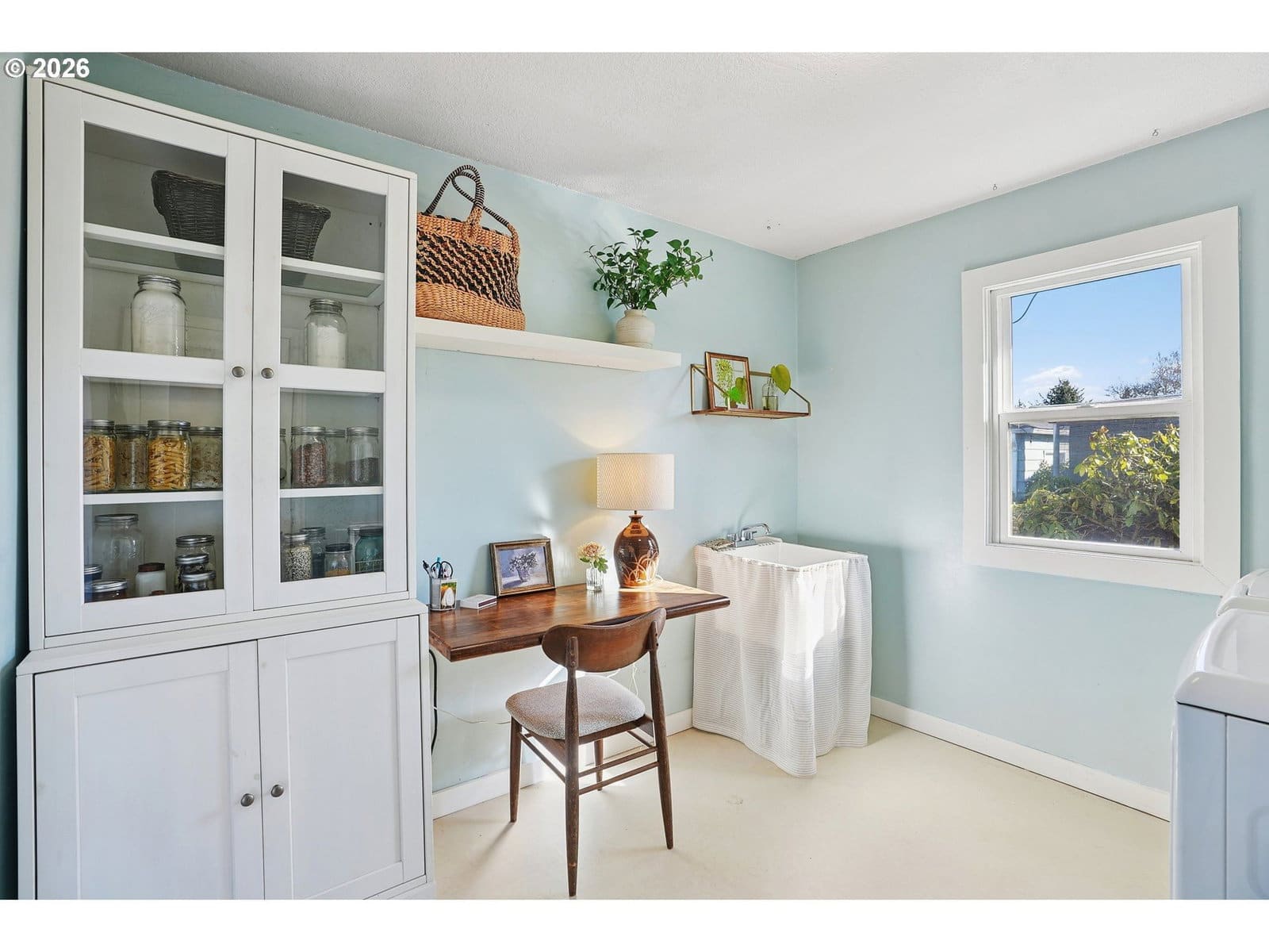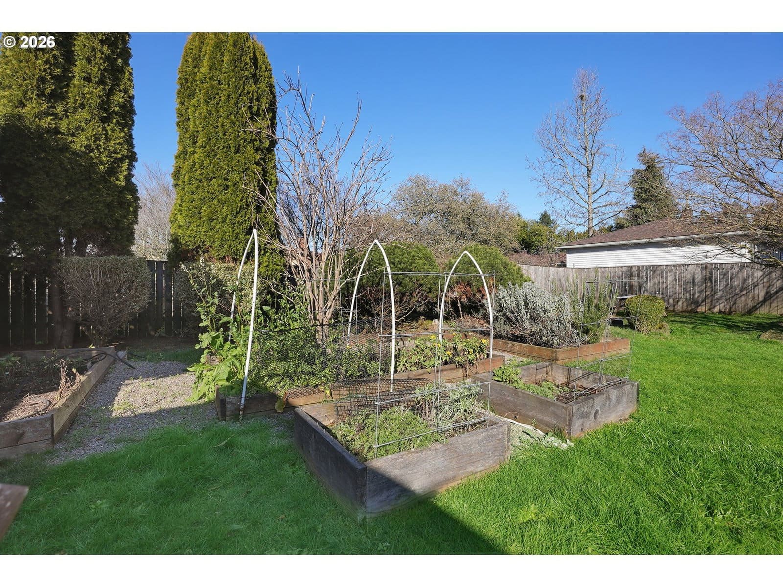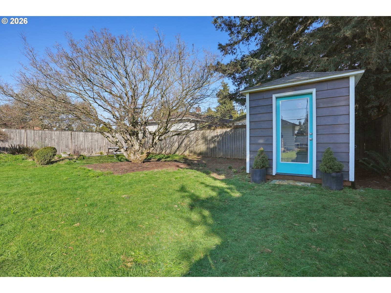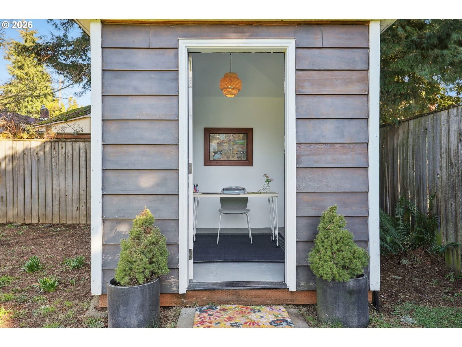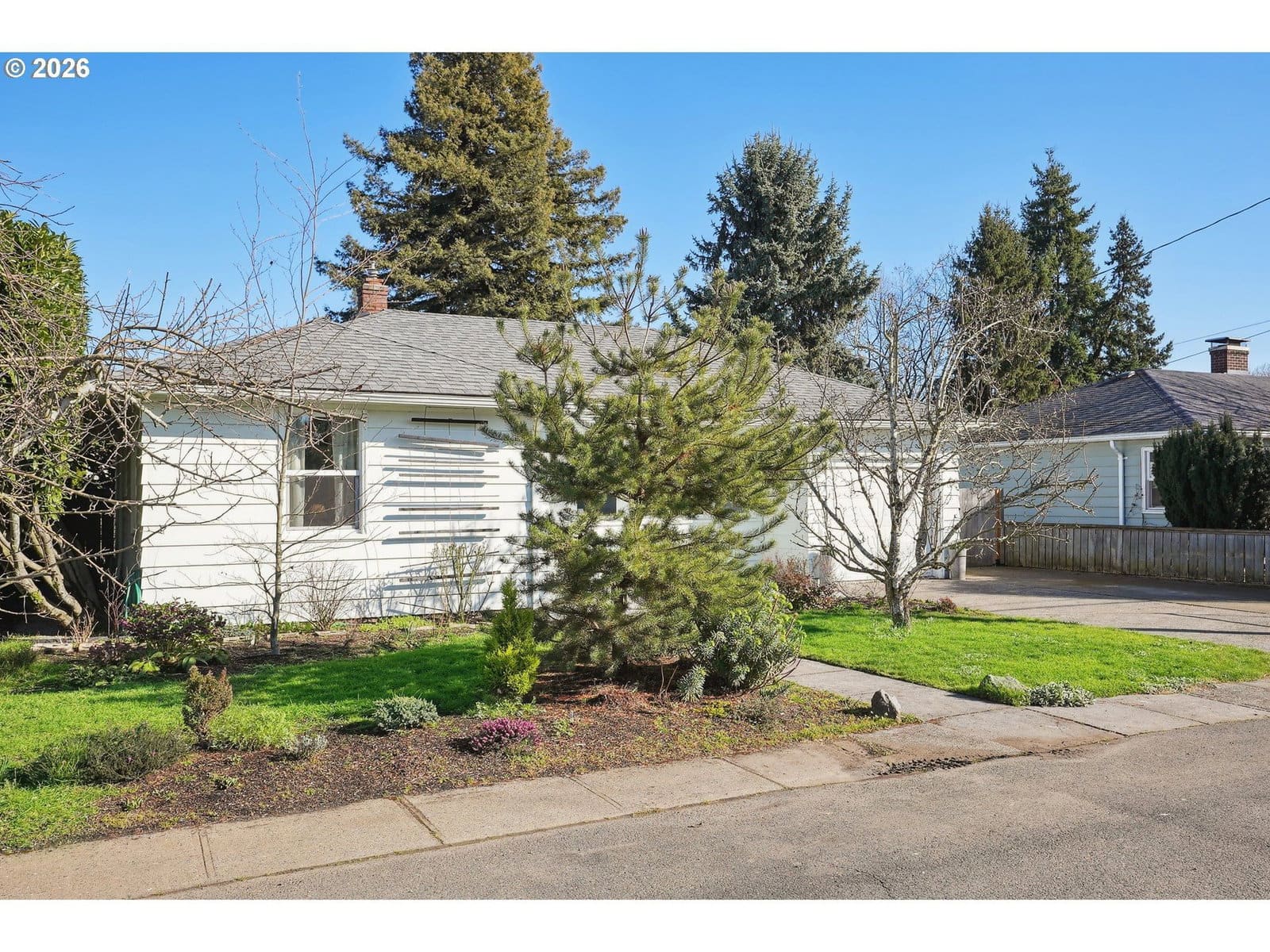 This light and bright well-maintained home is a gem, offering mid-century vibes, as well as modern updates throughout. This house is a perfect place for those who are looking for a peaceful retreat and who also love to entertain. The layout flows nicely, with the two bedrooms & updated bathroom to one side of the living room and the formal dining room, eat-in kitchen, and multi-use laundry/office that leads in to the garage on the other. Double French doors lead from the kitchen to a spacious deck and the meticulously landscaped fully fenced oversized lot. The yard is filled with carefully planted edibles in raised beds and is brimming with flowers and native plants, as well as pear and apple trees in the front yard. The backyard also offers a detached workshop that can be used as an office, workout room, music or art studio or for anything else your heart desires. Storage abounds with spacious closets & built-ins, as well as a generously-sized loft in the attached garage. RV parking, central AC, a welcoming front patio, fresh interior paint throughout, a new electrical panel and water heater, & a freshly updated crawlspace, coupled with vintage features like coved ceilings, picture rail, & large picture windows make this house a truly rare find! With proximity to major buslines, MAX, the transit center, as well as 205 & 84, commuting is an absolute dream, no matter what your preferred mode of transportation is. Open House Tues 3/10 11-1 PM! [Home Energy Score = 4. HES Report at https://rpt.greenbuildingregistry.com/hes/OR10020374]
