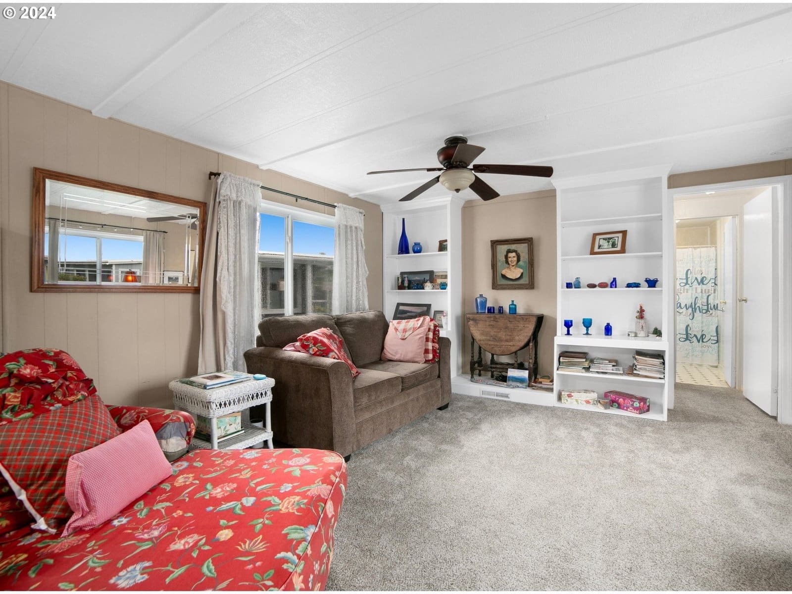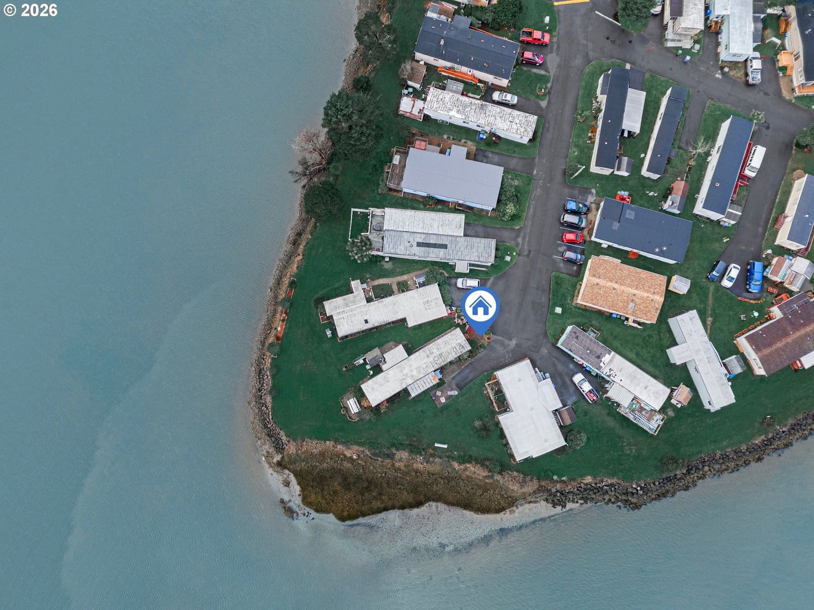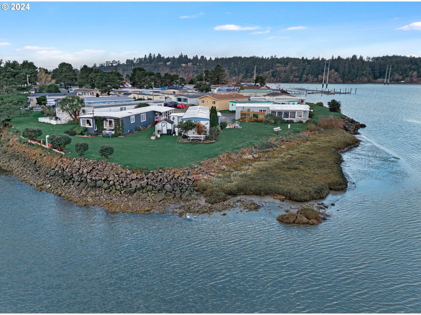 Enjoy the picnic table overlooking the Bay/River. Majestic sunrises from your home over the mountains to the east! EXCEPTIONAL opportunity to own an immaculate home so close to the marina, restaurants, grocery store, beach accesses. Home has 2 bedrooms, one at each end of the home with its own bathroom providing lots of privacy. Very light and bright inside with lovely sunroom to enjoy the expansive views. Very open kitchen. Washer/dryer included. Wonderful neighbors and community is pet friendly, allowing 2 dogs under 25 ls and cats too. Come by and grab this one before someone else does! Park space rent is $845/month.